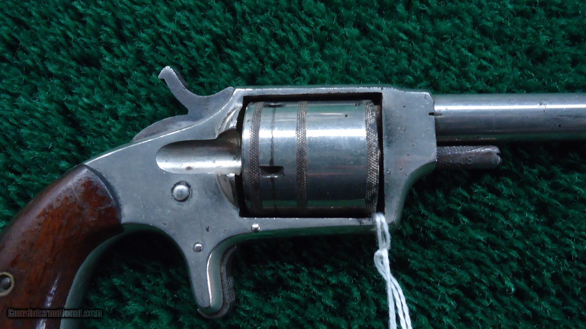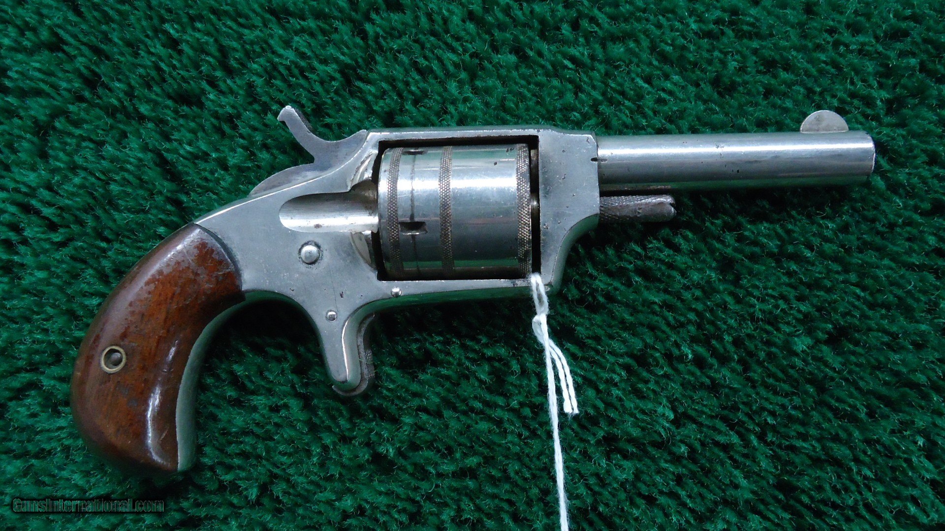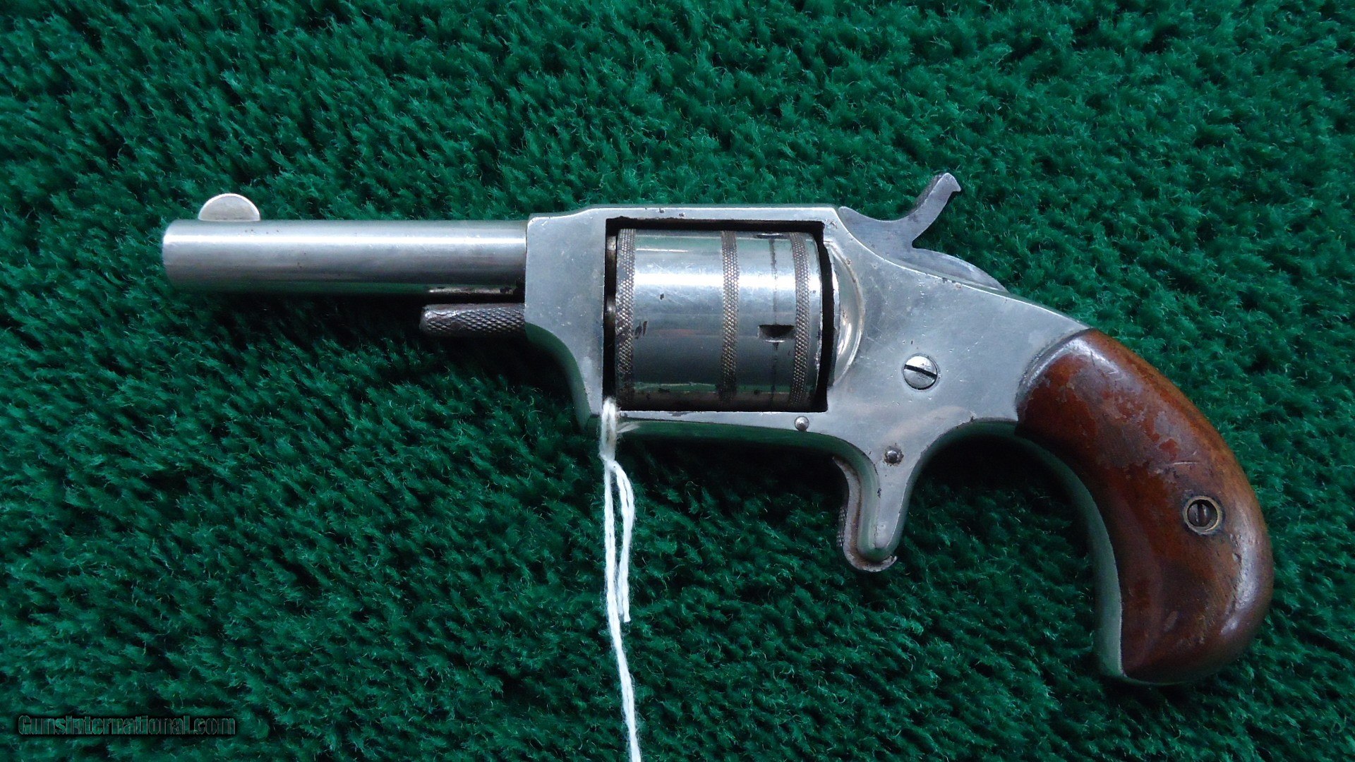 Description: 2-7/8 inch barrel. Nickel finish. Known as the ‘Dictator’ Model. This revolver is one of a total quantity of 1000 produced in Norwich from the late 1860s through the early 1870s. In very good overall condition. Cylinder has some wear in one area that is most likely due to poor storage. Walnut grips are in good condition with some small gouges out on the bottom right side. Crisp tight action. Leroy Merz Antique Firearms specializes in antique and vintage Winchesters and other fine American firearms. Since 1965 Mr. Merz has taken part in the world of firearms and has been a contributor to many well known reference books. We have hundreds of additional guns in every price range at our home online. Search for Merz Antiques in google. SOLD Antique: Yes Handgun Caliber: .32 Rimfire |
