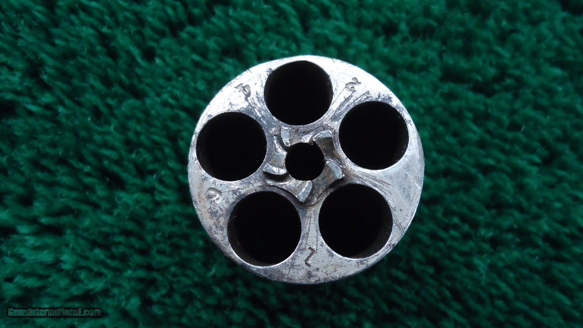 Description: 3-3/8 inch barrel, 5 Shot fluted cylinder and solid frame retain about 70% nickel finish showing some freckling and other blemishes. Fairly bright bore shows scattered light pitting and decent rifling. Features a folding hammer spur, checkered ejector housing and checkered black grips. Leroy Merz Antique Firearms specializes in antique and vintage Winchesters and other fine American firearms. Since 1965 Mr. Merz has taken part in the world of firearms and has been a contributor to many well known reference books. We have hundreds of additional guns in every price range at our home online. Search for Merz Antiques in google. SOLD Curio/Relic: Yes |