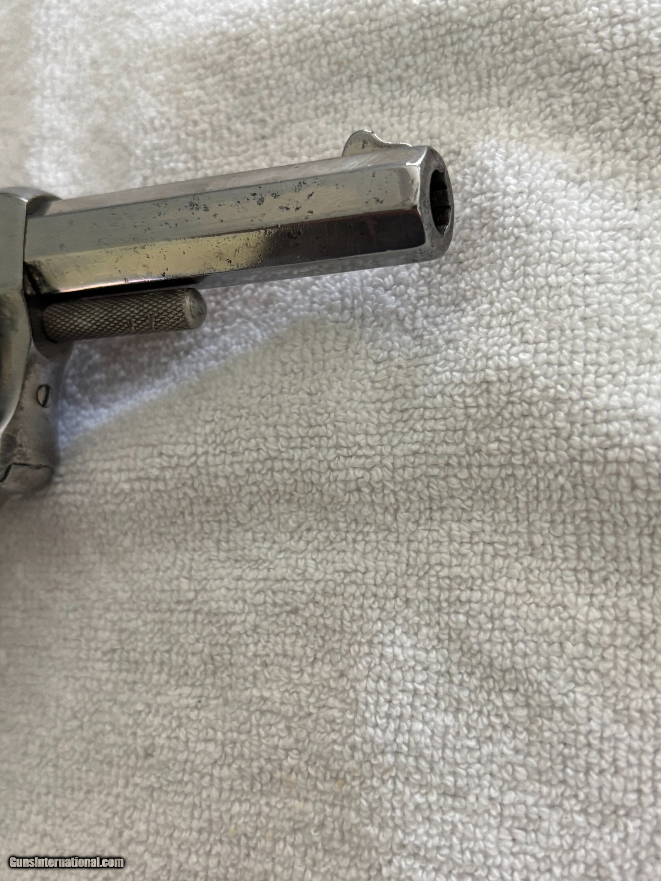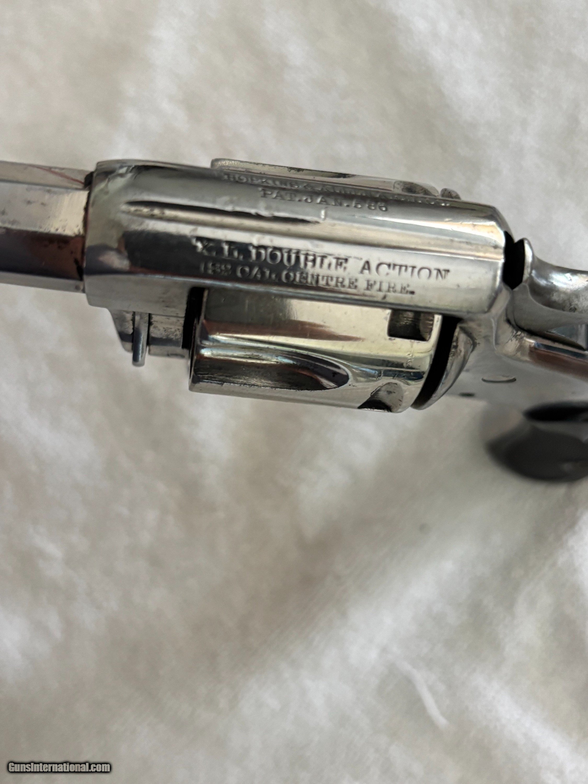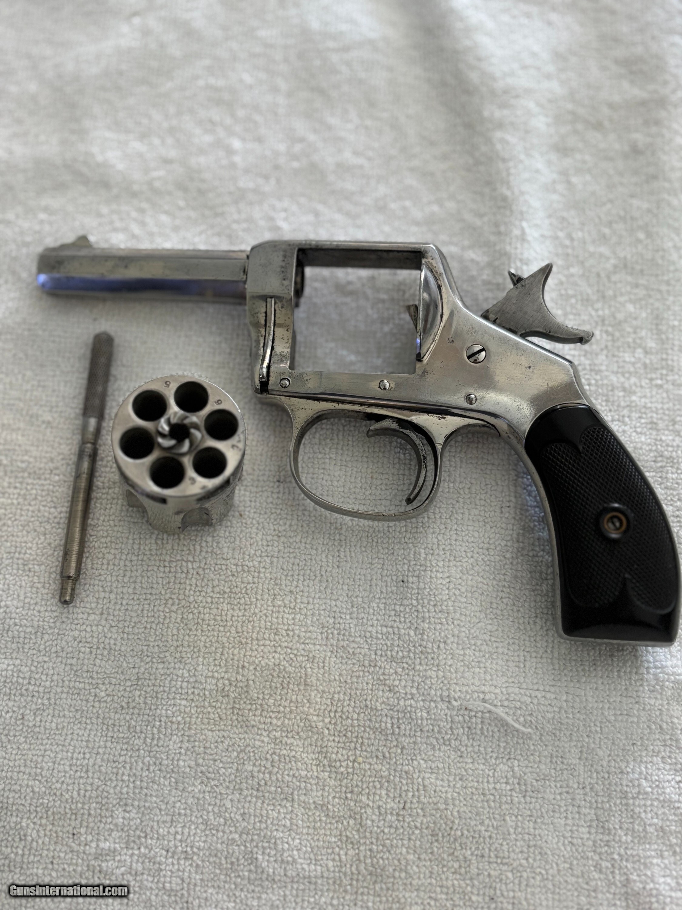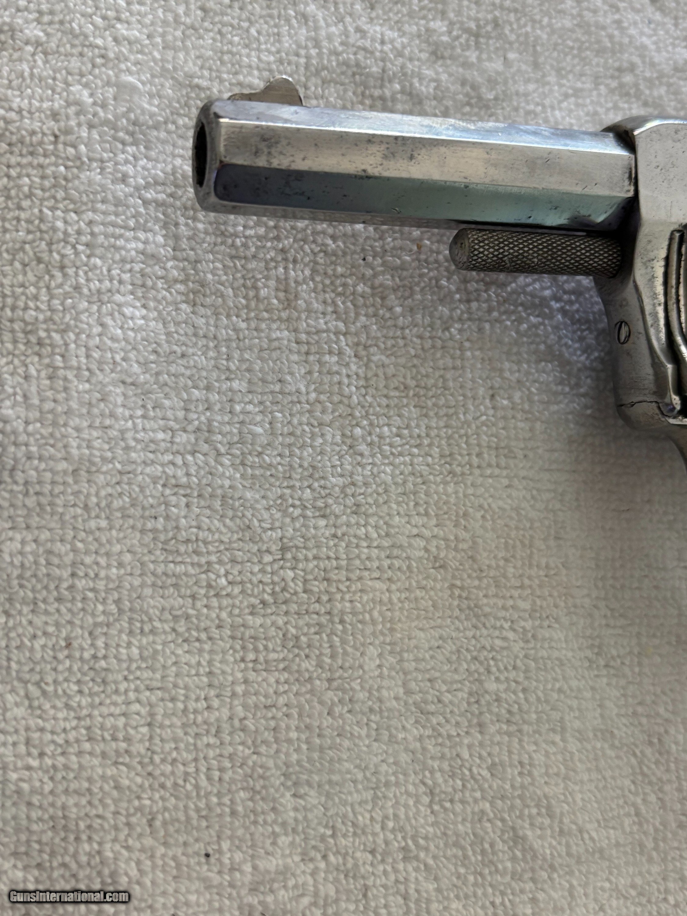 Description: Antique Hopkins & Allen XL double action revolver . Nickel finish, Hard rubber grips, Side mounted cylinder pin release. SN 3765 .32 S&W Top of barrel marked HOPKINS & ALLEN ARMS.CO PAT.JAN.5.86 XL DOUBLE ACTION 32 CAL CENTRE FIRE This particular model was produced in the late 1870’s, as indicated by its serial number. Condition: 3" .32 S&W Octagon barrel with a partially bright good bore showing areas of light oxidation , minor spot pitting and good rifling. The metal of the revolver retains most of its original nickel finish with some spot pin-prick pitting ,freckling, minor scratches and handling marks. Original hard rubber black checkered grip are in very good condition. . Mechanically works good in single and double action with good timing and lock-up. The top-strap markings remain crisp and legible. This is an antique and no FFL required. Just proof of age. Will ship FREE priority mail. This gun is sold "as-is" as a collectible with no refund and no return. Payment can be made with bank check, postal money order, or personal check. If you prefer instant payment and shipping please email me for account info. I can take Venmo, Zelle or Cash App. Antique: Yes Handgun Caliber: .32 S&W Long (.32 Colt New Police) Manufacturer: Hopkins & Allen Model: XL Serial Number: 3765 Barrel Length: 3 Price: $299.00 Buy Now Pay with ![]() Contact Seller |