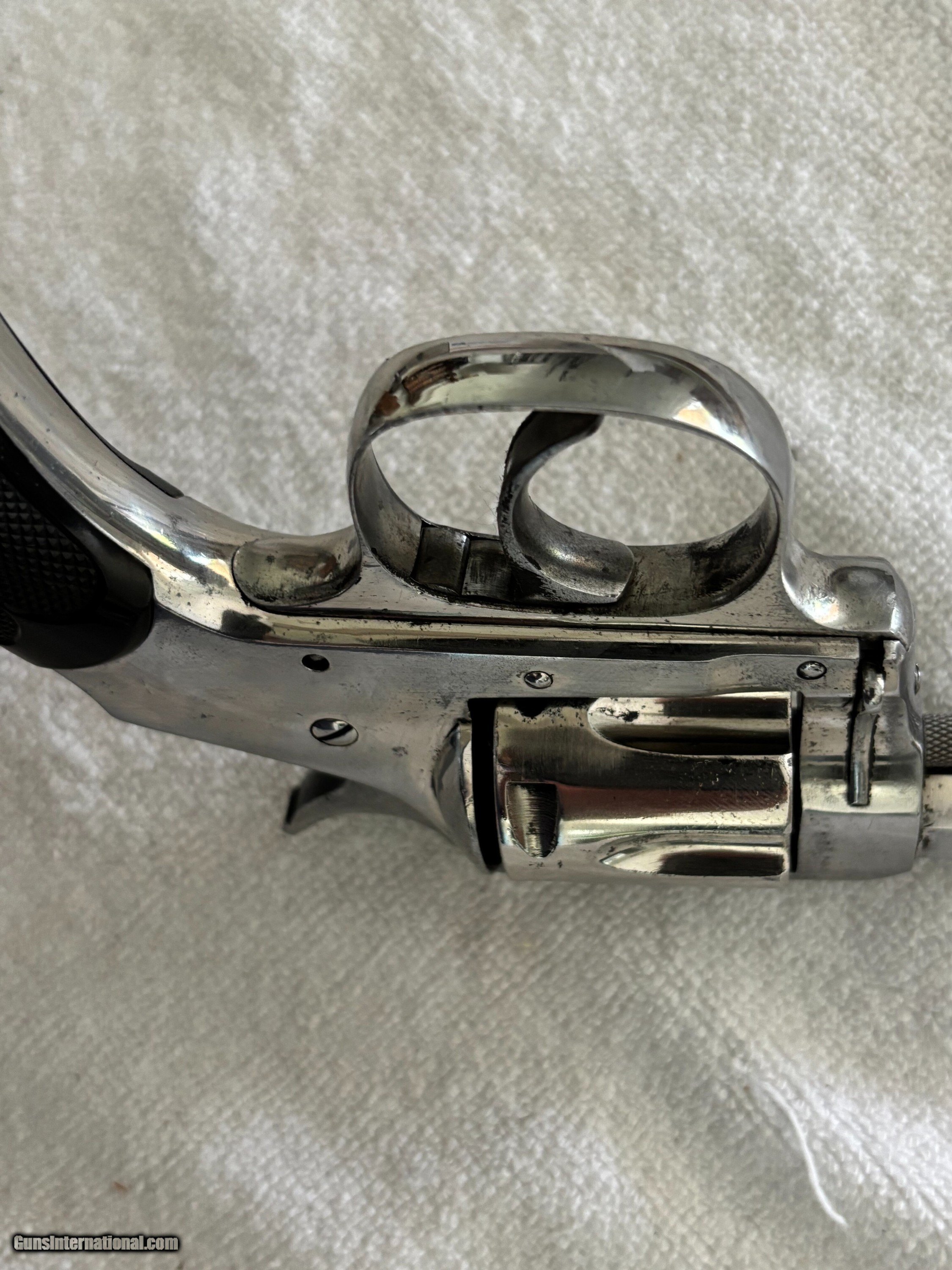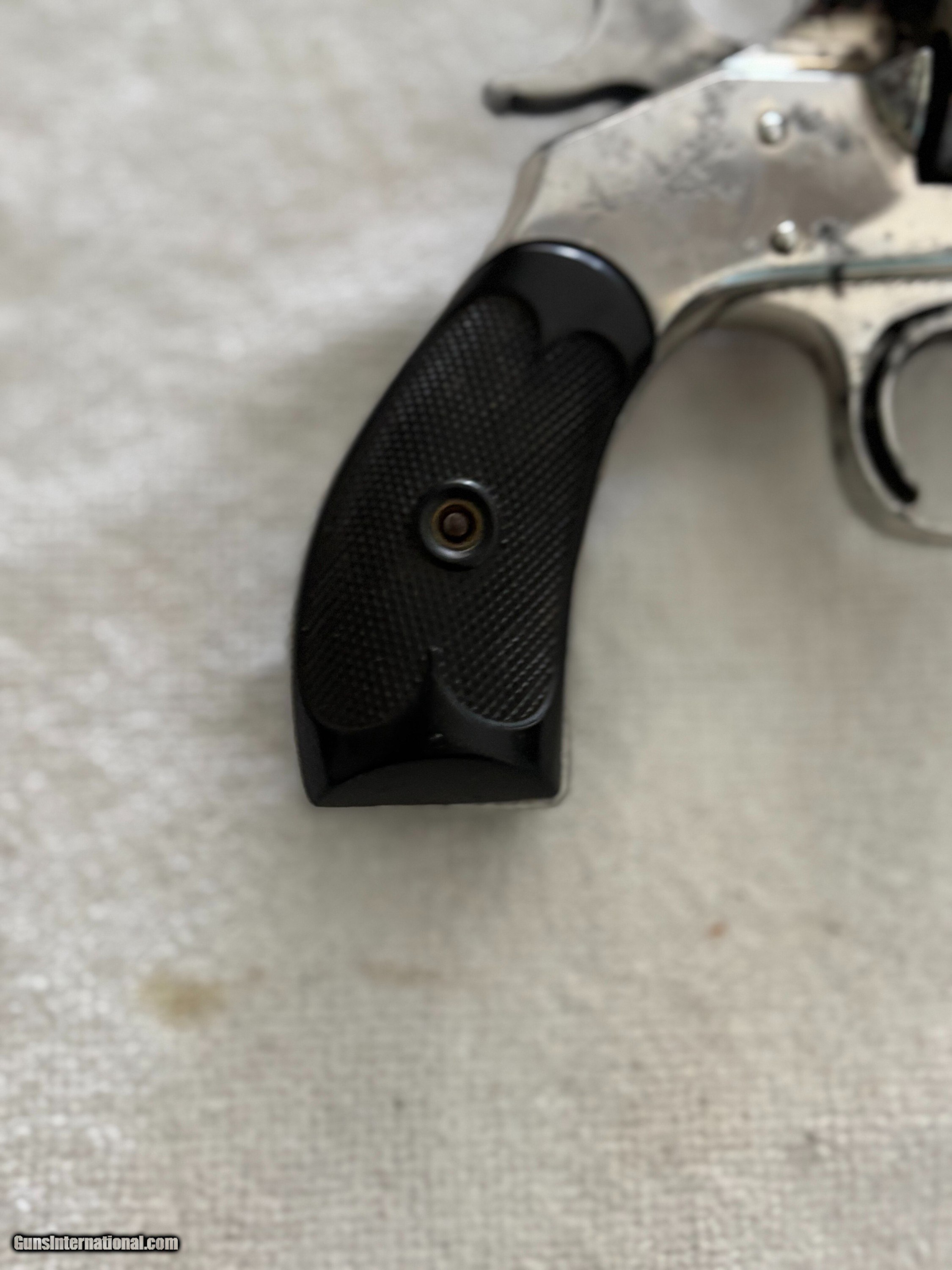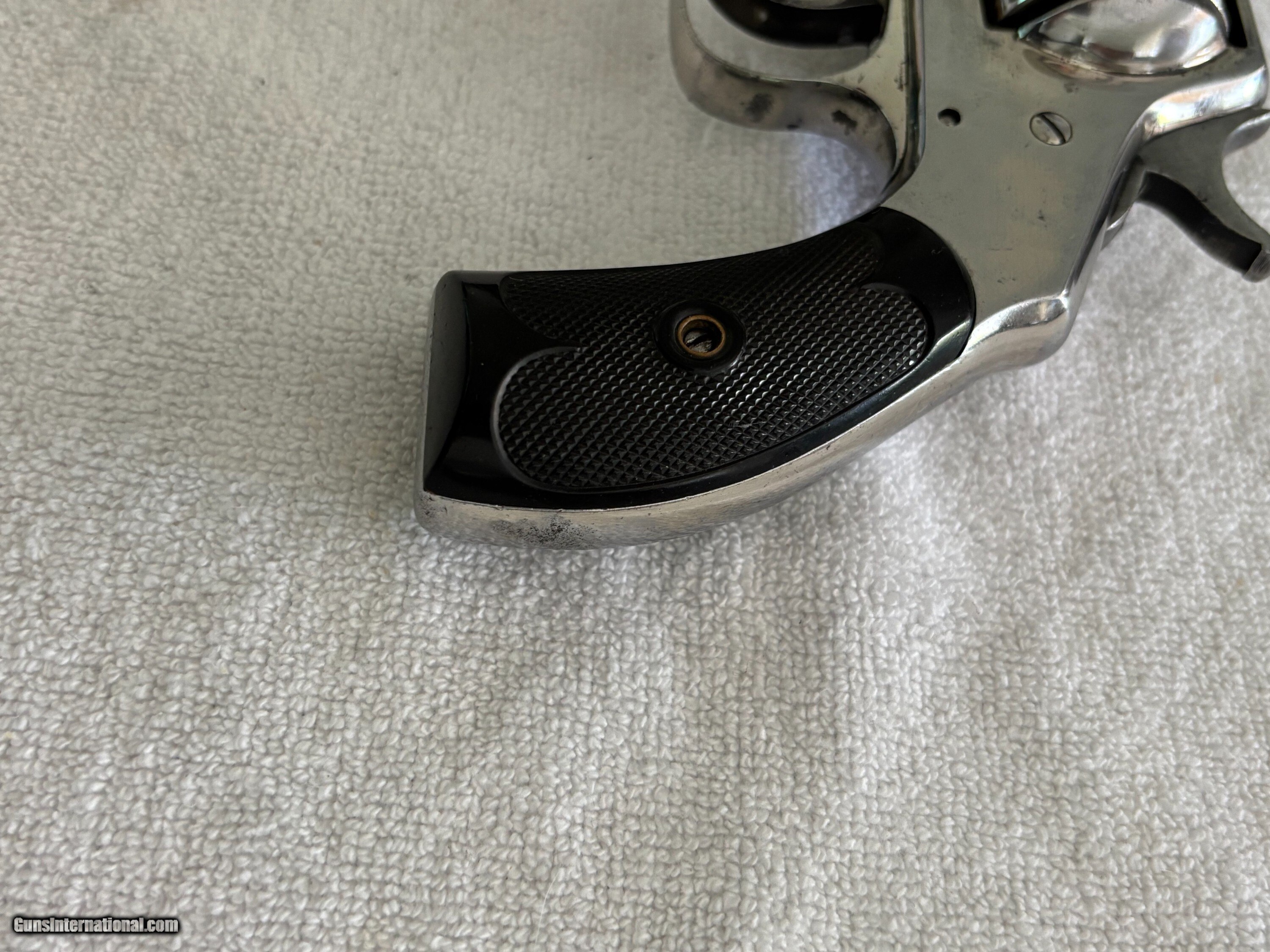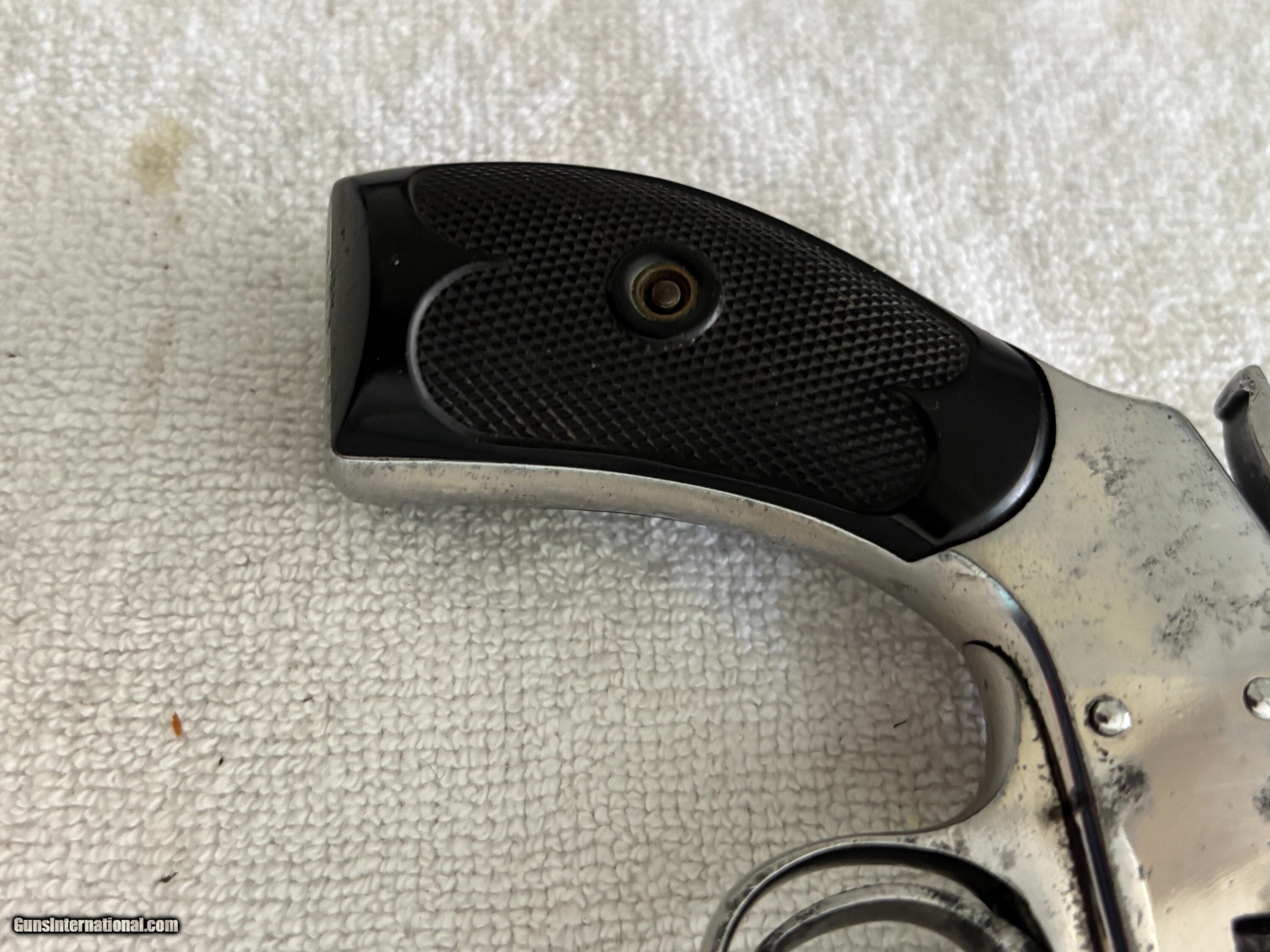 Description: Antique Hopkins & Allen XL double action revolver . Nickel finish, Hard rubber grips, Side mounted cylinder pin release. SN 3765 .32 S&W Top of barrel marked HOPKINS & ALLEN ARMS.CO PAT.JAN.5.86 XL DOUBLE ACTION 32 CAL CENTRE FIRE This particular model was produced in the late 1870’s, as indicated by its serial number. Condition: 3" .32 S&W Octagon barrel with a partially bright good bore showing areas of light oxidation , minor spot pitting and good rifling. The metal of the revolver retains most of its original nickel finish with some spot pin-prick pitting ,freckling, minor scratches and handling marks. Original hard rubber black checkered grip are in very good condition. . Mechanically works good in single and double action with good timing and lock-up. The top-strap markings remain crisp and legible. This is an antique and no FFL required. Just proof of age. Will ship FREE priority mail. This gun is sold "as-is" as a collectible with no refund and no return. Payment can be made with bank check, postal money order, or personal check. If you prefer instant payment and shipping please email me for account info. I can take Venmo, Zelle or Cash App. Antique: Yes Handgun Caliber: .32 S&W Long (.32 Colt New Police) Manufacturer: Hopkins & Allen Model: XL Serial Number: 3765 Barrel Length: 3 Price: $299.00 Buy Now Pay with ![]() Contact Seller |