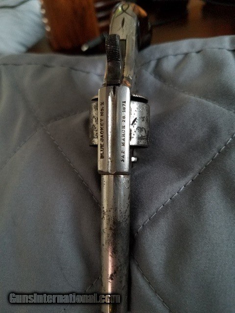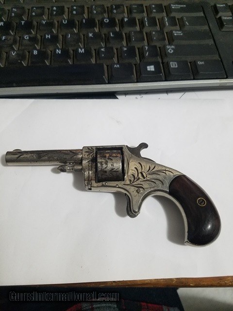Description: 7 shot spur trigger revolver with 2 1/2 inch round barrel chambered in 22 RF cal.. Most of the original Nickel finish remains. Rifling is in great shape. grooves are well defined. Walnut grips are in great condition. Action works as it should. Halfcock holds and fires when the trigger is pulled and the cylinder indexes properly. Engraving looks sharp. Priced to sell quickly at $300 plus actual shipping and insurance cost. Based on others listed here and on other sites, this is the best price I've found on this little gun. Money Order or Cashiers Check only. SOLD Antique: Yes Manufacturer: Hopkins & Allen Model: BLUE JACKET NO.2 Caliber Info: .22 Bore: 2.5" round |