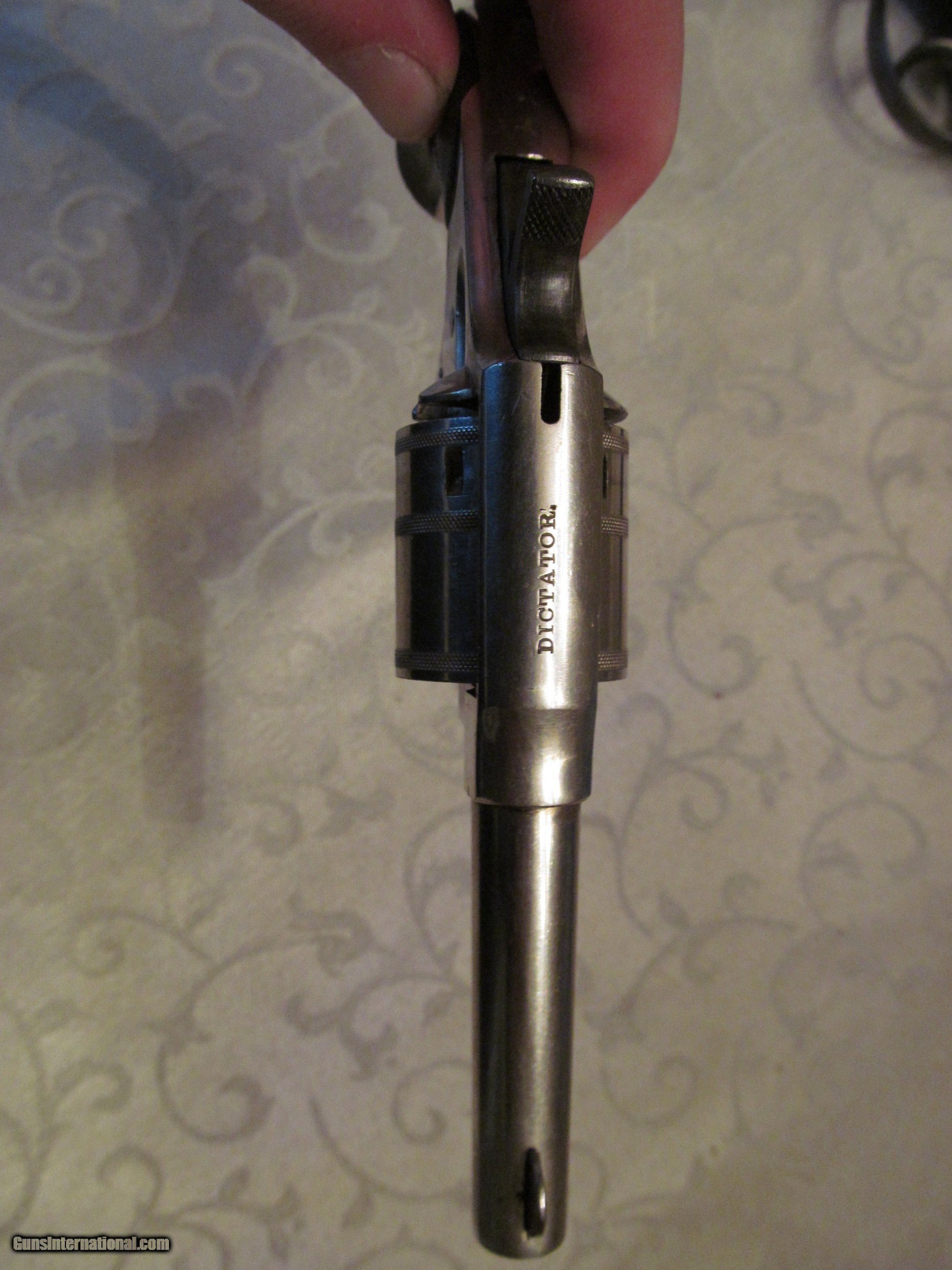 Description: Hopkins & Allen Dictator Revolver Nickel in Like New Condition, 32 rimfire caliber. Have never seen a better one. Shipping is $15. SOLD Antique: Yes |