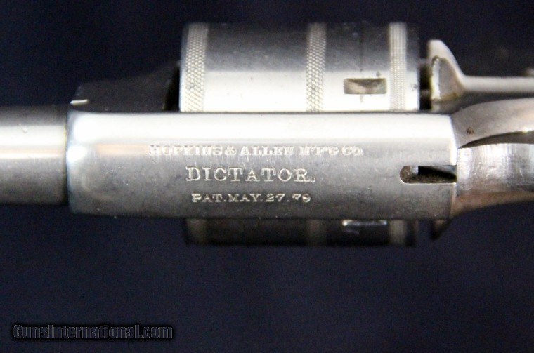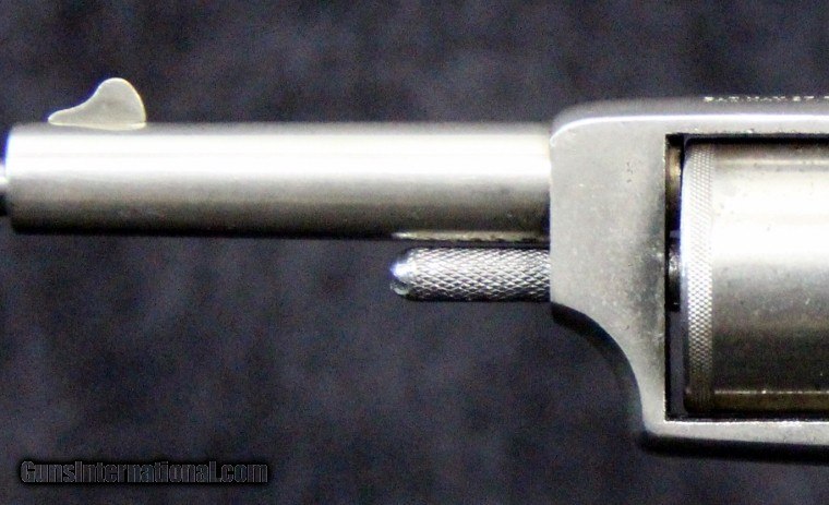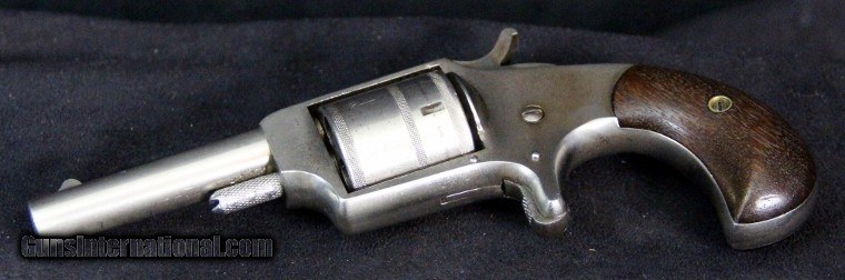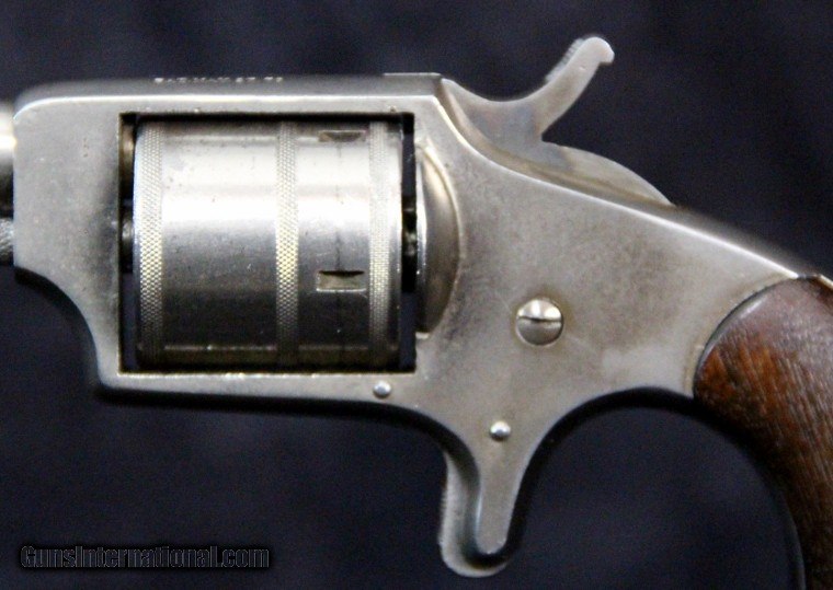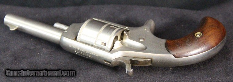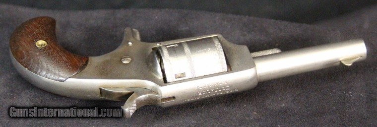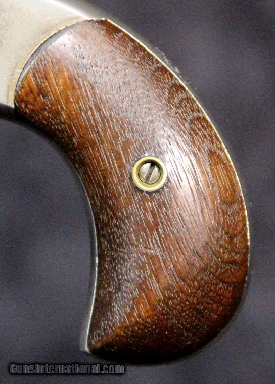 Description: .32rf, #8117, 2 3/4 inch round barrel, nickel finish, 2 piece walnut grips, single action, base pin is reverse treaded, 1870's. Condition: smoot bore with pin prick oxidation, 85% dull nickel overall, excellent grips, excellent mechanically, excellent marks. SOLD Antique: Yes |