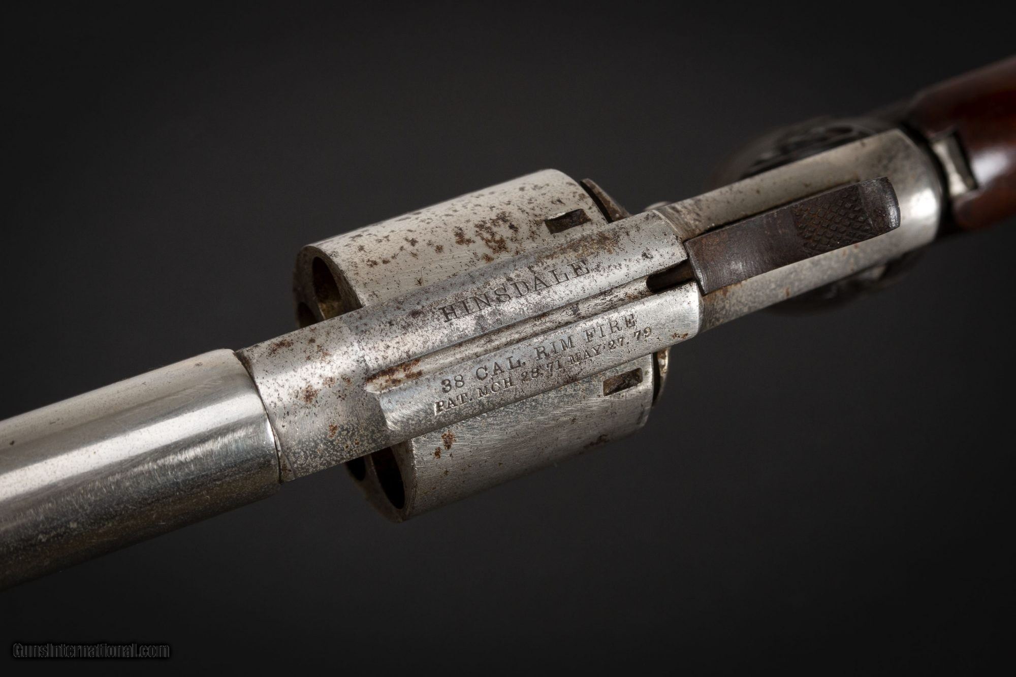 Description: Added to our showroom today is a unique and rare Hopkins & Allen revolver. The Hinsdale was a revolver made by Hopkins & Allen during the 19th century especially for ornithologists and taxidermists. The .38 rimfire and was specifically designed to handle cartridges lightly loaded with shot. Frame is in good condition with some rust and pitting. Barrel condition is very good, as is its bore. Grips are in very good condition. Wood appears to be original and unfinished. Contact us for more information and additional photographs. SOLD Handgun Caliber: .38 Rimfire Manufacturer: Hopkins & Allen Model: Hinsdale Serial Number: 579 Barrel Length: 24 Action: Single Action Revolver Item Location: NY |