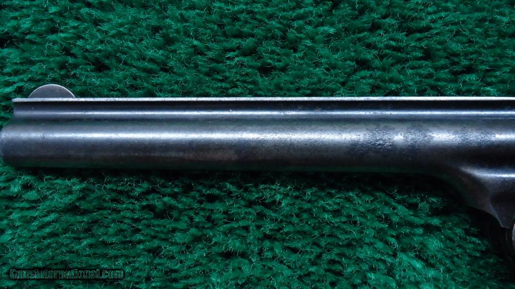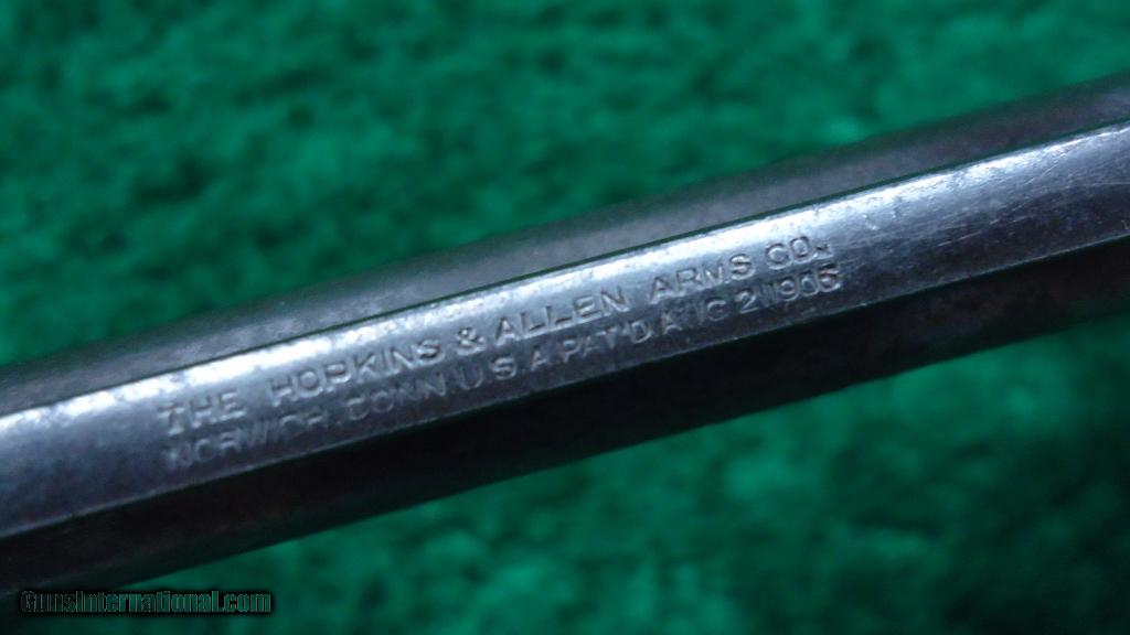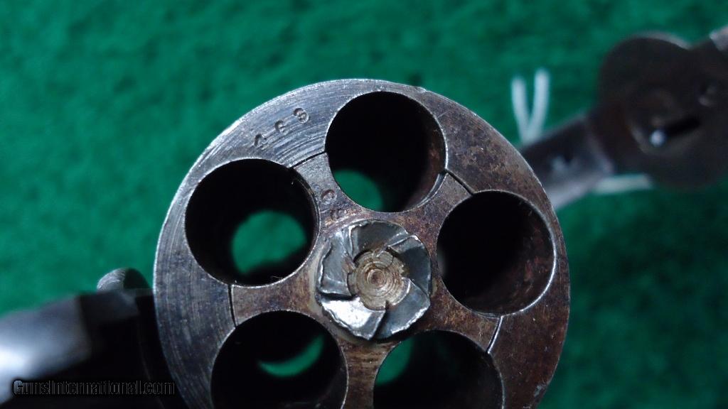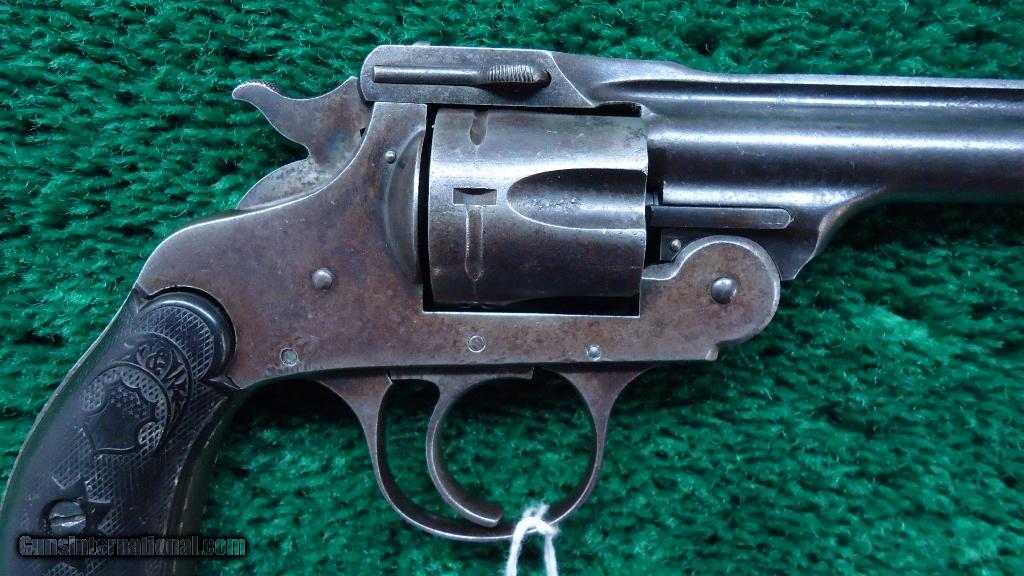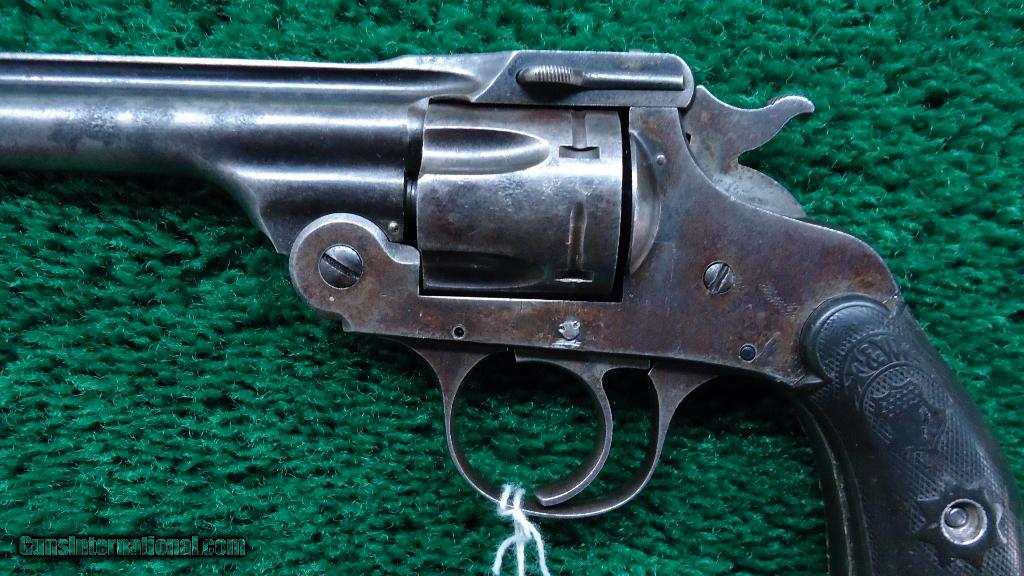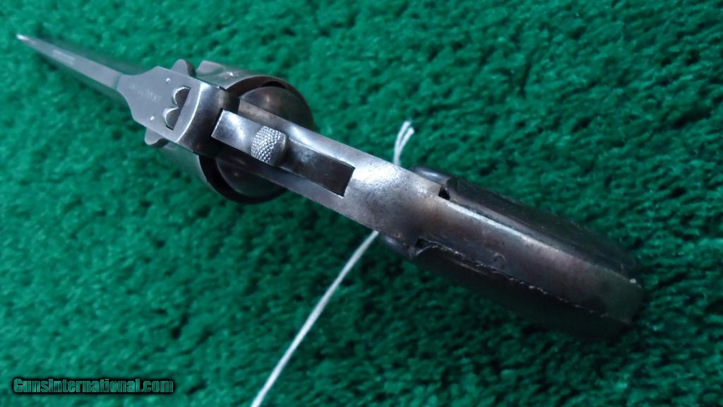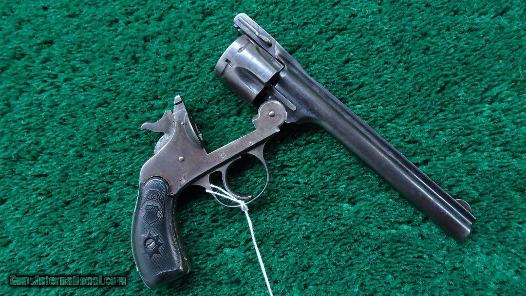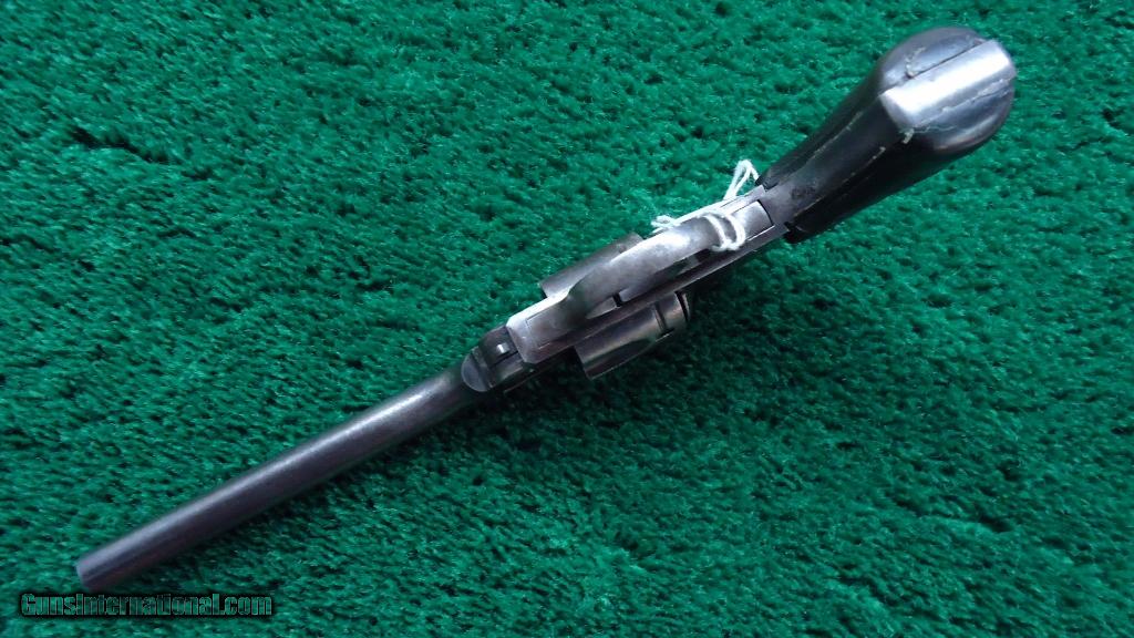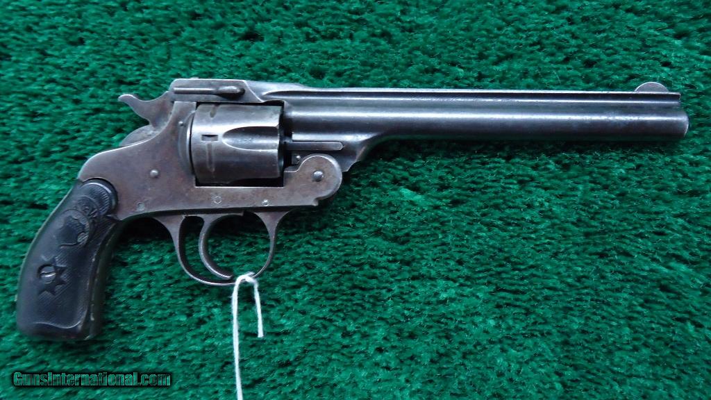 Description: This pistol is marked Hopkins & Allen but actually is a Forehand & Wadsworth design. Forehand & Wadsworth was taken over by Hopkins & Allen at the turn of the century. 5-shot top break revolver in 38 S&W. Thes are a double action revolver- kind of. Can be fired in single action or double action. The difference is the "safety" part of it being that the trigger has to be pushed forward like a set trigger. Did they feel this would be a safer gun for police in the event that someone grabbed their weapon? That is my thoughts on it. Everything is smooth. Gun locks up tight. Pivot is tight. 6" bbl is dirty. The F&W marked grips are quite worn with a repaired chip on the bottom. Slightly ill fitting. Leroy Merz Antique Firearms specializes in antique and vintage Winchesters and other fine American firearms. Since 1965 Mr. Merz has taken part in the world of firearms and has been a contributor to many well known reference books. Just recently we mailed the 125th edition of our privately-published catalog. We have hundreds of additional guns in every price range at our home online. Search for Merz Antiques in google. SOLD Curio/Relic: Yes |