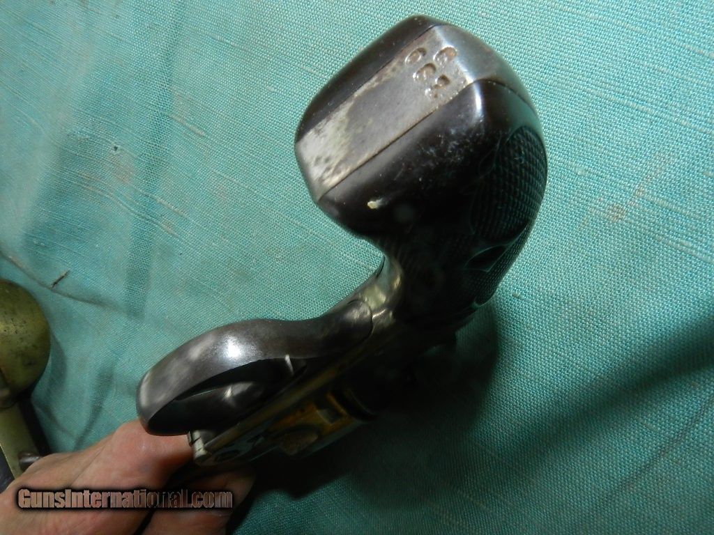 Description: A rare Hopkins and Allen folding hammer revolver of .32 short caliber, with a rand pisdound barrel with a dark and pitted bore. The lock upof barrel to frame is tight. Appears complkete but is a project as when the D.A trigger is pulled the cylinder turns and the hammer doesn;t come back. The original black hard rubber grios are very good condition.Has about 90% original nickle and the left side flat has most of finish loss. SN 6061. Last patent date is '86.When buying a gun always have it examined by a competent gunsmith before shooting. To buy a gun from me you must get a direct email for me, with details, and shipping cost. We don’t have a web site .I prefer money orders or a check. Item ships when funds come in. I try to keep guns affordable, which means I make less money than most dealers. You won’t get altitude sickness, or nose bleed, with my prices! I consistently have the best selection of older guns If you attempt to buy, you must still contact us for details . Best to email to buy. Sometimes a local person can stop buy and purchase before the gun is removed. Sometimes not home to get calls. Some guns are required shipment to a gun dealer near you for a transfer to you when it arrives. Otherwise many older or black powder guns ship to your door. With the widest selection of older guns at great prices, We don’t have a store, and sell on the internet only. I’m easy to get along with. Thank You SOLD Curio/Relic: Yes |