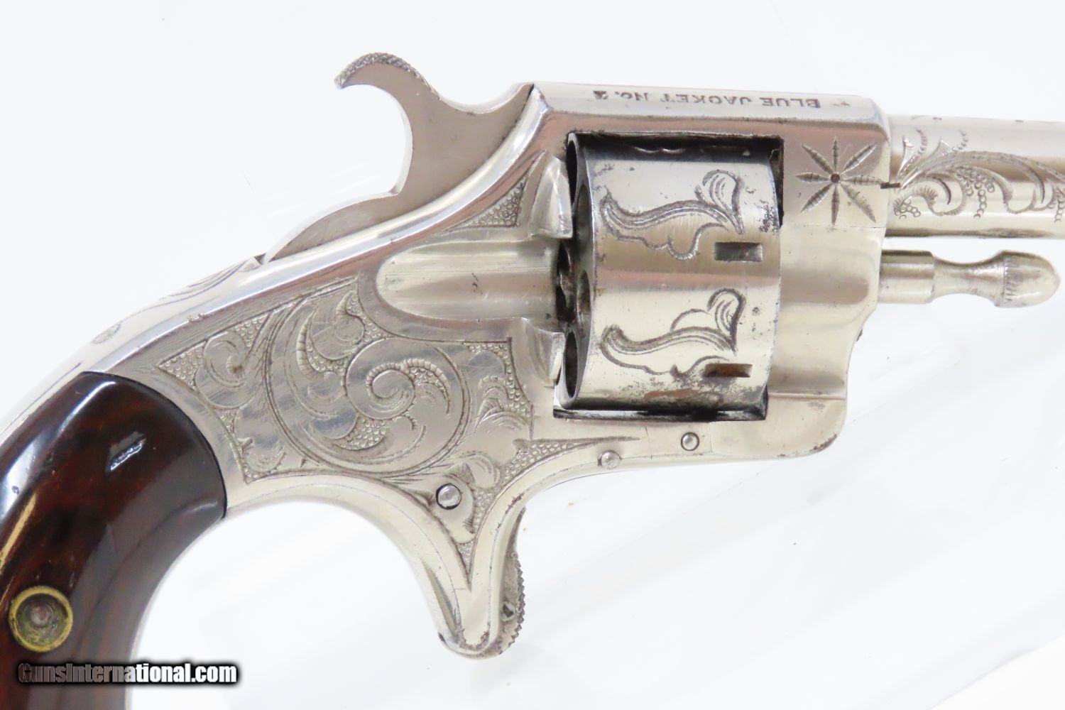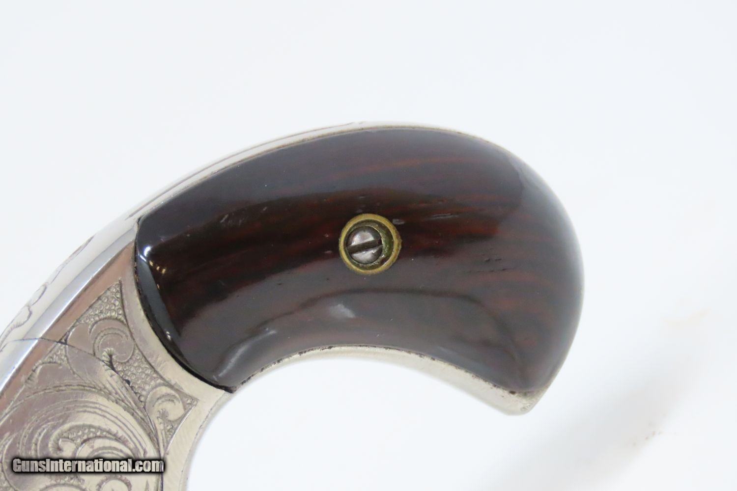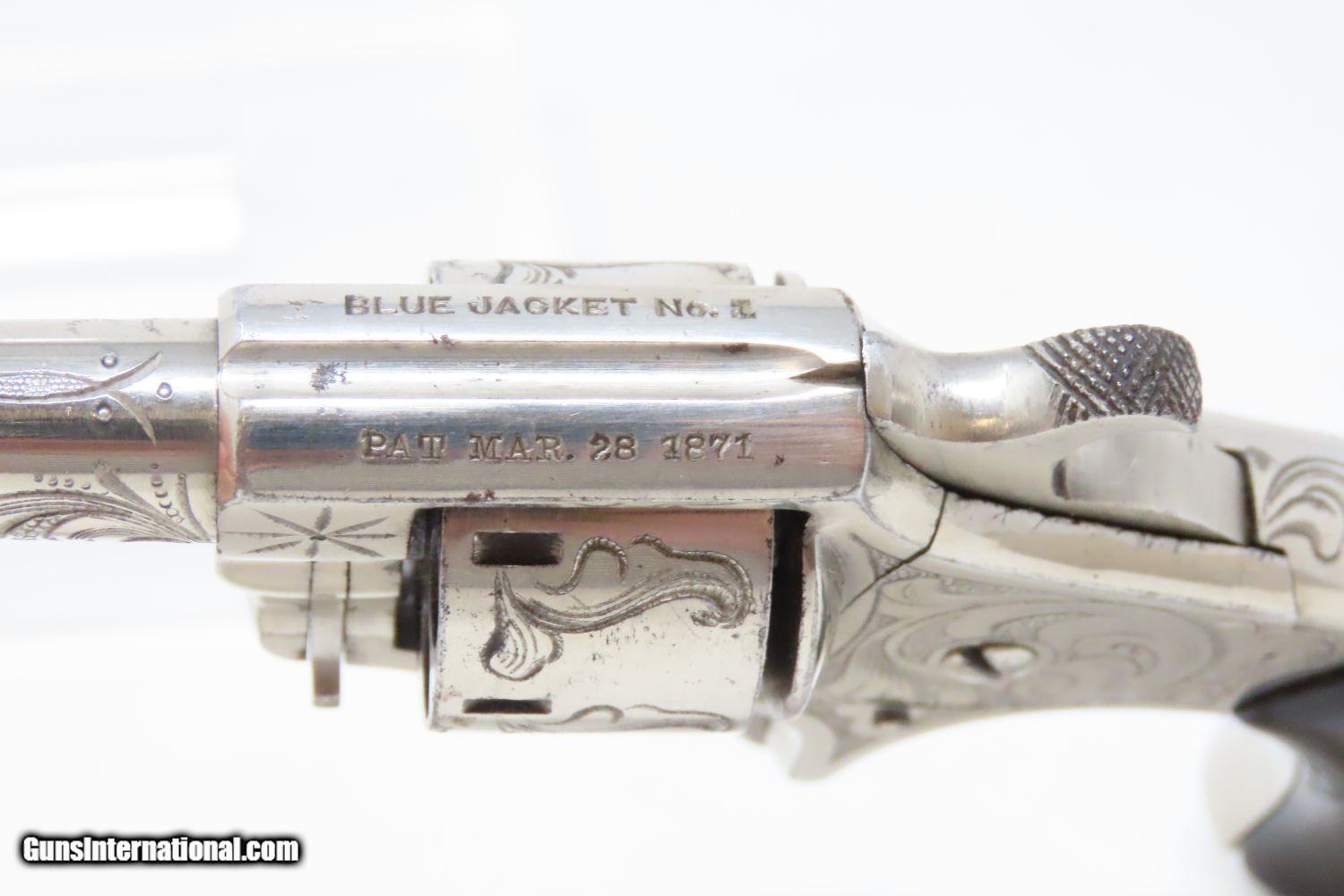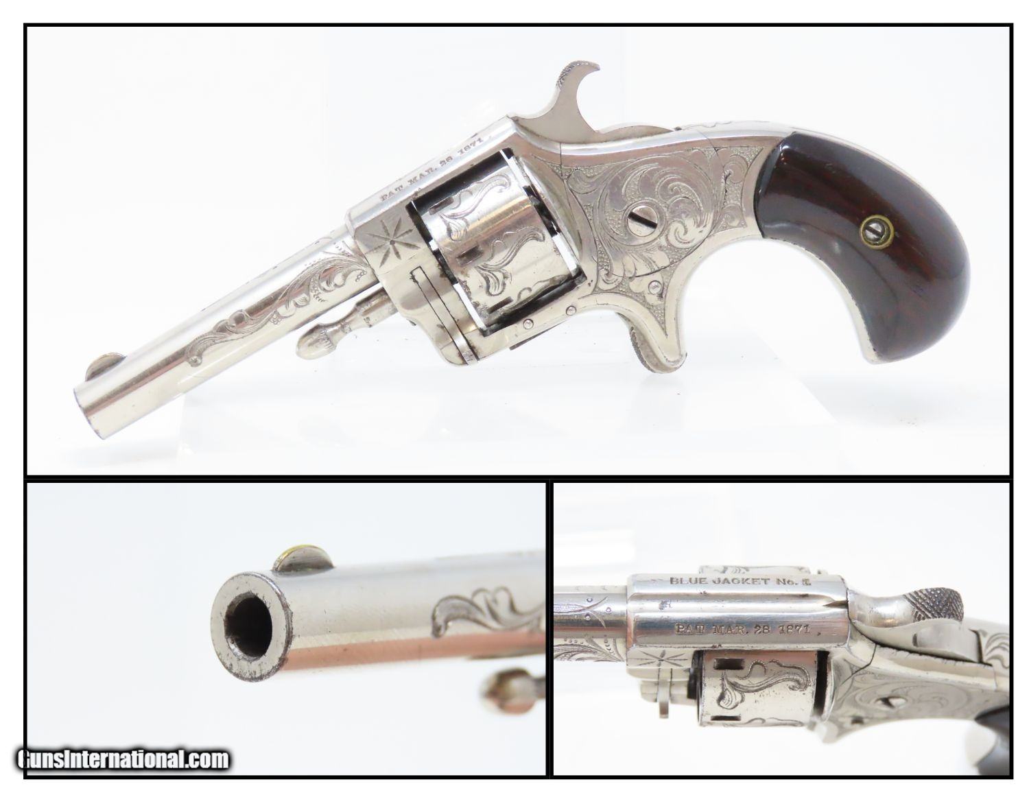 Description: SWEET LITTLE 7-Shot .22 Hopkins & Allen BLUE JACKET Single Action Revolver c1880s ENGRAVED, NICKEL, ROSEWOOD Here we present an antique Hopkins & Allen “BLUE JACKET No. 2” Spur Trigger Revolver in .22 Rimfire (short), made circa the 1870s-80s. These pocket-sized revolvers and many like them were made by various companies such that the price easily undercut better known and established companies like Colt. As a result, many of Colt’s similar lines were shut down for their inability to compete. During a time when many, if not most people carried a firearm, these affordable little revolvers were small enough to conceal and carry, yet provide some level of protection or peace of mind, even when the town did not allow firearms within its limits. Hopkins & Allen used two different patent dates on this model, Mar. 28, 1871 and May 27, 1879. This revolver has the later Patent date, making it manufactured between the early to mid-1880s. The overall condition is excellent. Strong and tight action. Reflective bore. Firm, smooth rosewood grips. Sharp engravings. Numbers match. A little gem of a hideout gun from the late-1800s! Own the original! This is a legitimate antique and not a reproduction. Barrel is 2-1/2 inches. Caliber: .22 Rimfire (short) Overall condition as seen in photos. Very Fast. Very Safe. FREE SHIPPING WORLDWIDE. Delivered directly to your door by express mail! Guaranteed AUTHENTIC & Includes CERTIFICATE OF AUTHENTICITY. ancestryguns $1145 #210873 SOLD Antique: Yes |