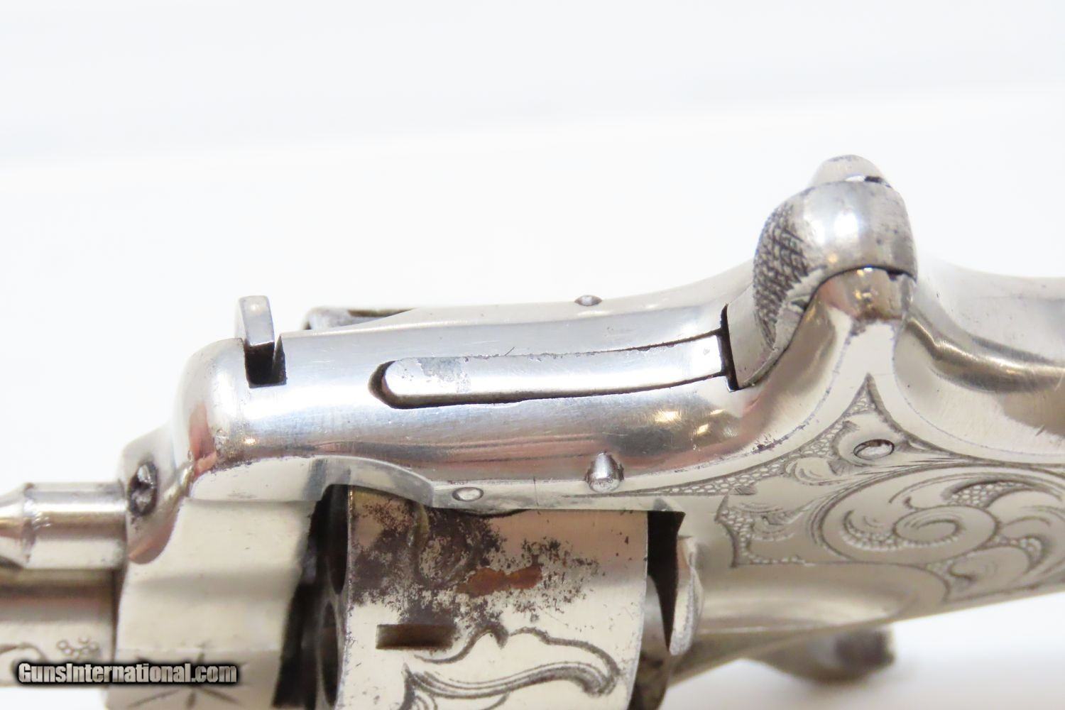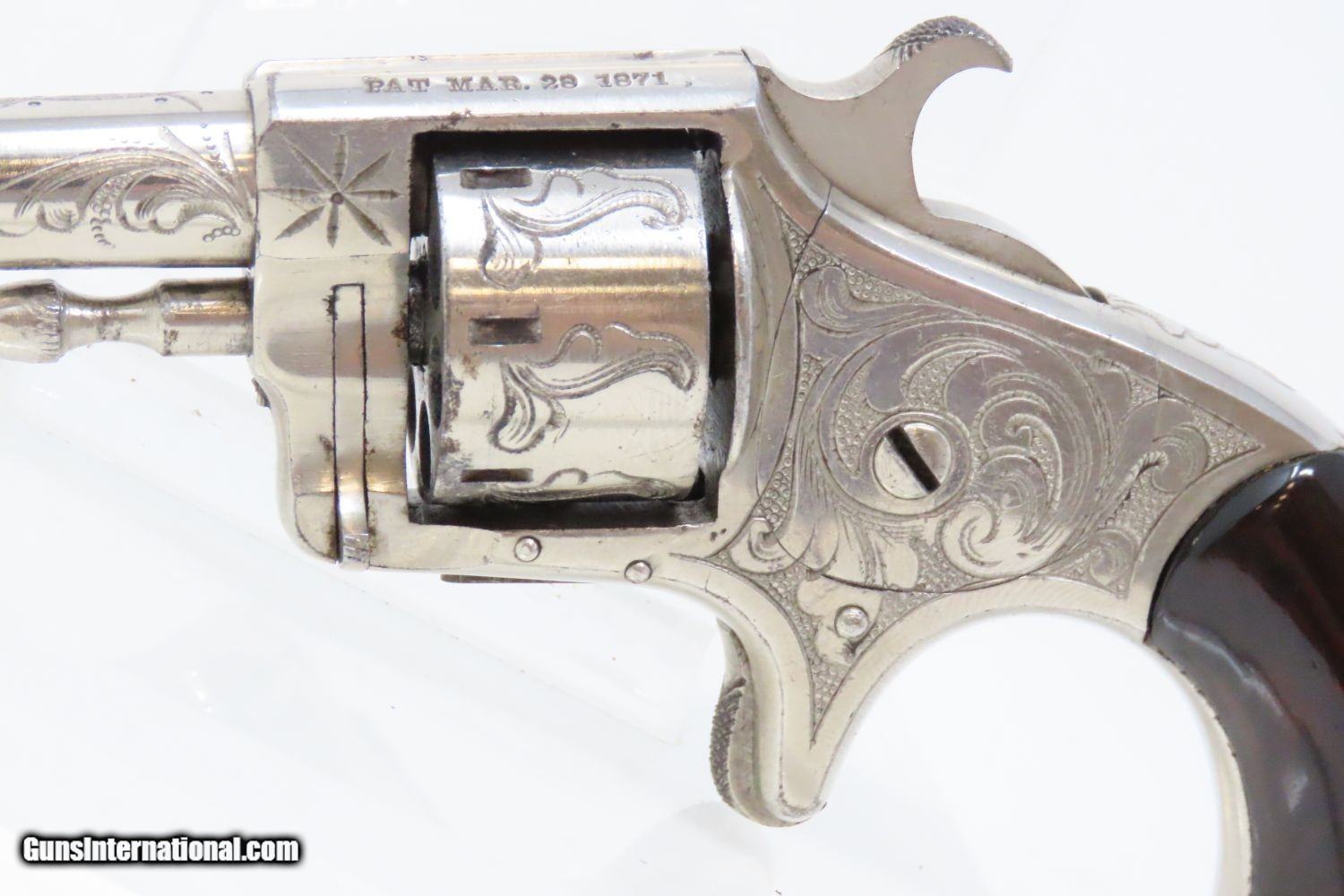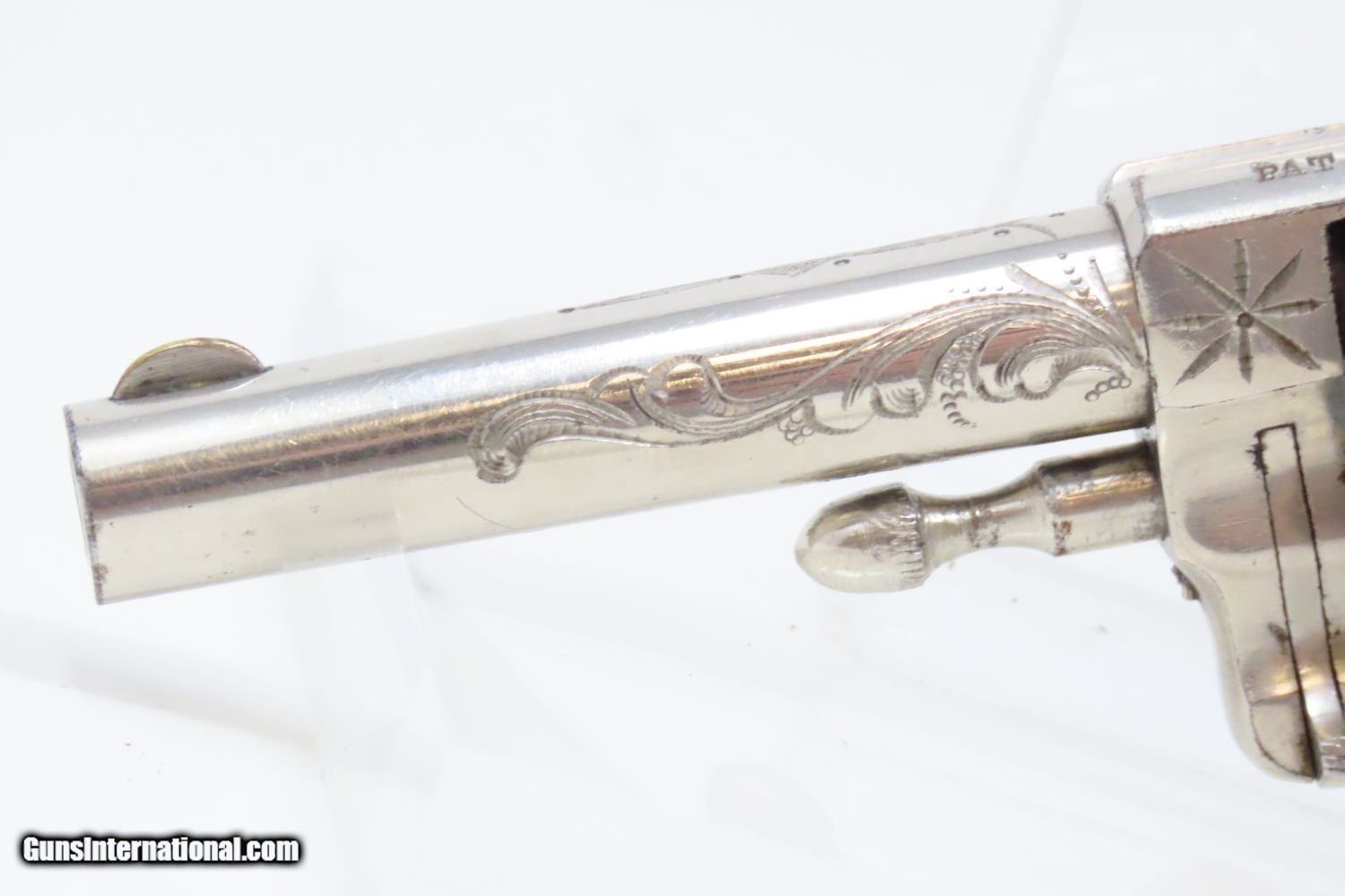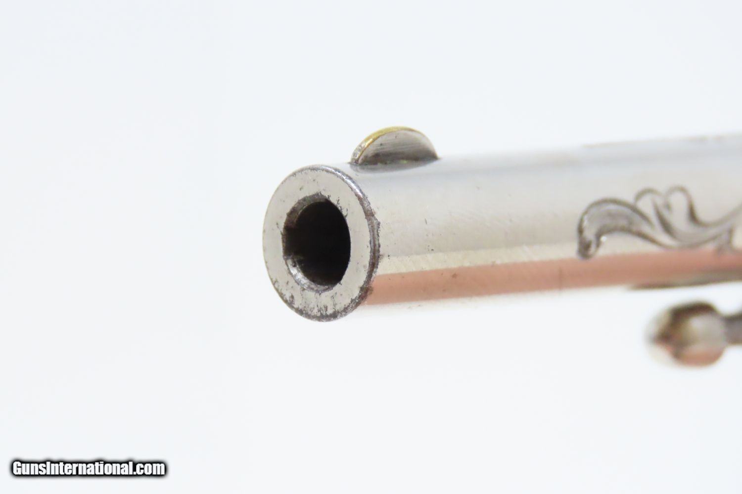 Description: SWEET LITTLE 7-Shot .22 Hopkins & Allen BLUE JACKET Single Action Revolver c1880s ENGRAVED, NICKEL, ROSEWOOD Here we present an antique Hopkins & Allen “BLUE JACKET No. 2” Spur Trigger Revolver in .22 Rimfire (short), made circa the 1870s-80s. These pocket-sized revolvers and many like them were made by various companies such that the price easily undercut better known and established companies like Colt. As a result, many of Colt’s similar lines were shut down for their inability to compete. During a time when many, if not most people carried a firearm, these affordable little revolvers were small enough to conceal and carry, yet provide some level of protection or peace of mind, even when the town did not allow firearms within its limits. Hopkins & Allen used two different patent dates on this model, Mar. 28, 1871 and May 27, 1879. This revolver has the later Patent date, making it manufactured between the early to mid-1880s. The overall condition is excellent. Strong and tight action. Reflective bore. Firm, smooth rosewood grips. Sharp engravings. Numbers match. A little gem of a hideout gun from the late-1800s! Own the original! This is a legitimate antique and not a reproduction. Barrel is 2-1/2 inches. Caliber: .22 Rimfire (short) Overall condition as seen in photos. Very Fast. Very Safe. FREE SHIPPING WORLDWIDE. Delivered directly to your door by express mail! Guaranteed AUTHENTIC & Includes CERTIFICATE OF AUTHENTICITY. ancestryguns $1145 #210873 SOLD Antique: Yes |