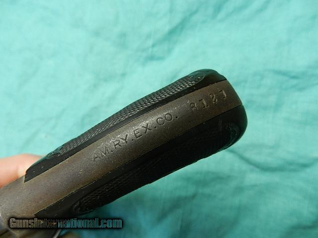 Description: Good working Iver Johnson revolver in .38 S&W caliber with a 3 1/4"" long barrel and a clean bore with good rifling, with a small patch of pitting, but still a very shoot-able gun. Finish is nickle, now worn with areas of brown/grey patina,not rusted or pitted. Has I.J. black hard rubber factory owl's head grips facing down in very good condition.Gun locks up tight, and indexes good.Has the patent dates on the butt of this early model.Back strap has stamped:AM. RY. EX.CO. A good example of a railway Express Detective or Guard. This a C&R gun. We don’t have asite .I prefer money orders or a check. Item ships when funds come in. If you can only pay with a card let me know. I’m sorry I don’t list my phone number, did that for 30 days, never again.. I can’t talk on the phone all day…who will ship the guns? I’m just one person, and it’s very busy here! I do a brisk volume! I hope you like my wide selection of unusual guns, knives and gun parts. Shipping price determined by zip code. I try to keep the prices affordable, which means I make less money than most dealers. You won’t get altitude sickness with my prices! I consistently have the best selection of older guns If you BUY IT NOW you must still contact us for details buy it now doesn't end the sale, it just sends an email telling us you want to buy this gun. A phone call won’t secure a sale! Not home many times, the first buyer by email buys the gun !Thissite does not close down a sale when you do a BUY IT NOW like Ebay! I can get six buy it nows in an hour, first buyer to email gets the guns, others are in second place! Best to send another email . Sometimes not home to get calls. Some guns are required shipment to a gun dealer near you for a transfer to you when it arrives. With the widest selection of older guns at great prices, We don’t have a store, and sell on the internet only. SOLD Curio/Relic: Yes |