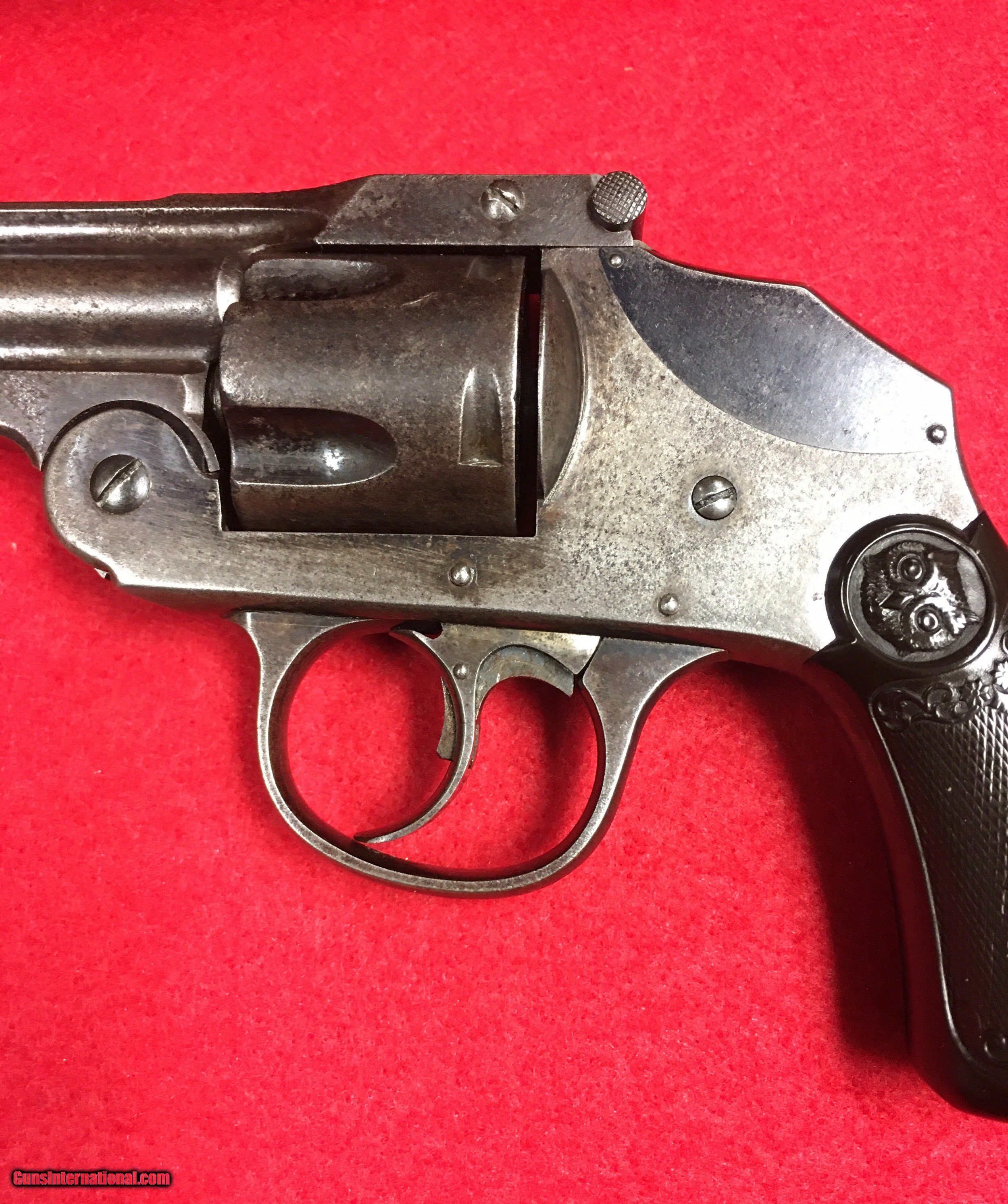 Description: Antique Iver Johnson 2nd Model Safety Hammerless .38 centerfire bp cartridge with 4" barrel. Very good condition overall. Very tight mechanics and locks up well. Last patent date of 1893. Very nice Owls Head grips. Buy now option includes free shipping to your door. SOLD Antique: Yes Manufacturer: Iver Johnson Model: Safety Hammerless Serial Number: 10779 Barrel Length: 4” Chambers: 5 Condition: Very good Metal Condition: Very good Bore Condition: Very good Action: Double Finish: Blued Manufacture Date: 1890’s Item Location: WV |