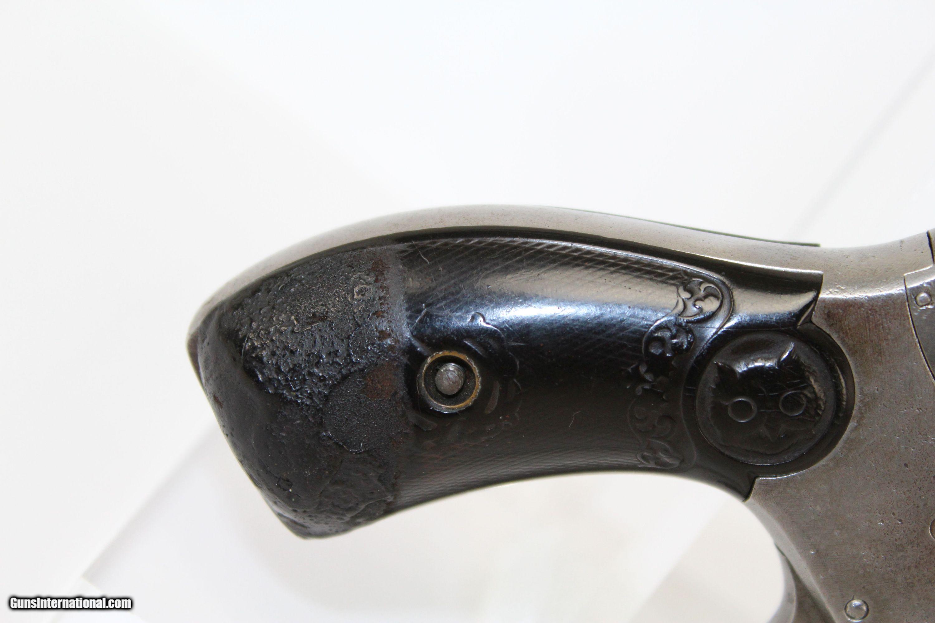Description: C&R Iver Johnson Arms & Cycle HAMMERLESS Revolver Early 20th Century Pocket Revolver+FREE SHIPPING & CC Here we present an Iver Johnson Safety Automatic Hammerless Double Action Revolver in .32 S&W. This 5-shot revolver was made circa 1900 in Fitchburg, Massachusetts. Iver Johnson & Martin Bye both cut their teeth with Ethan Allen, then started their own company in 1871. The company continued to operate until 1993. This revolver was designed to be small and concealable for self-defense in the years leading up to the Roaring Twenties. Condition of this revolver is fair. Traces of the original blue and nickel finishes remain. The markings are legible. The original hard rubber grips are intact and show some wear and repair. There is a small chip out of the bottom of the right grip. The bore is clean and sharp. The action on this revolver is functioning. Cylinder rides up when opened. This firearm is classified as a Curio & Relic. Barrel is 3-1/4 inches. Caliber: .32 S&W Overall condition as seen in photos. Very Fast. Very Safe. FREE SHIPPING. Will need to be sent to your local FFL or C&R licensee. This firearm is classified as a Curio & Relic. Guaranteed AUTHENTIC & Includes CERTIFICATE OF AUTHENTICITY. ancestryguns $350 #6297 SOLD Curio/Relic: Yes |
