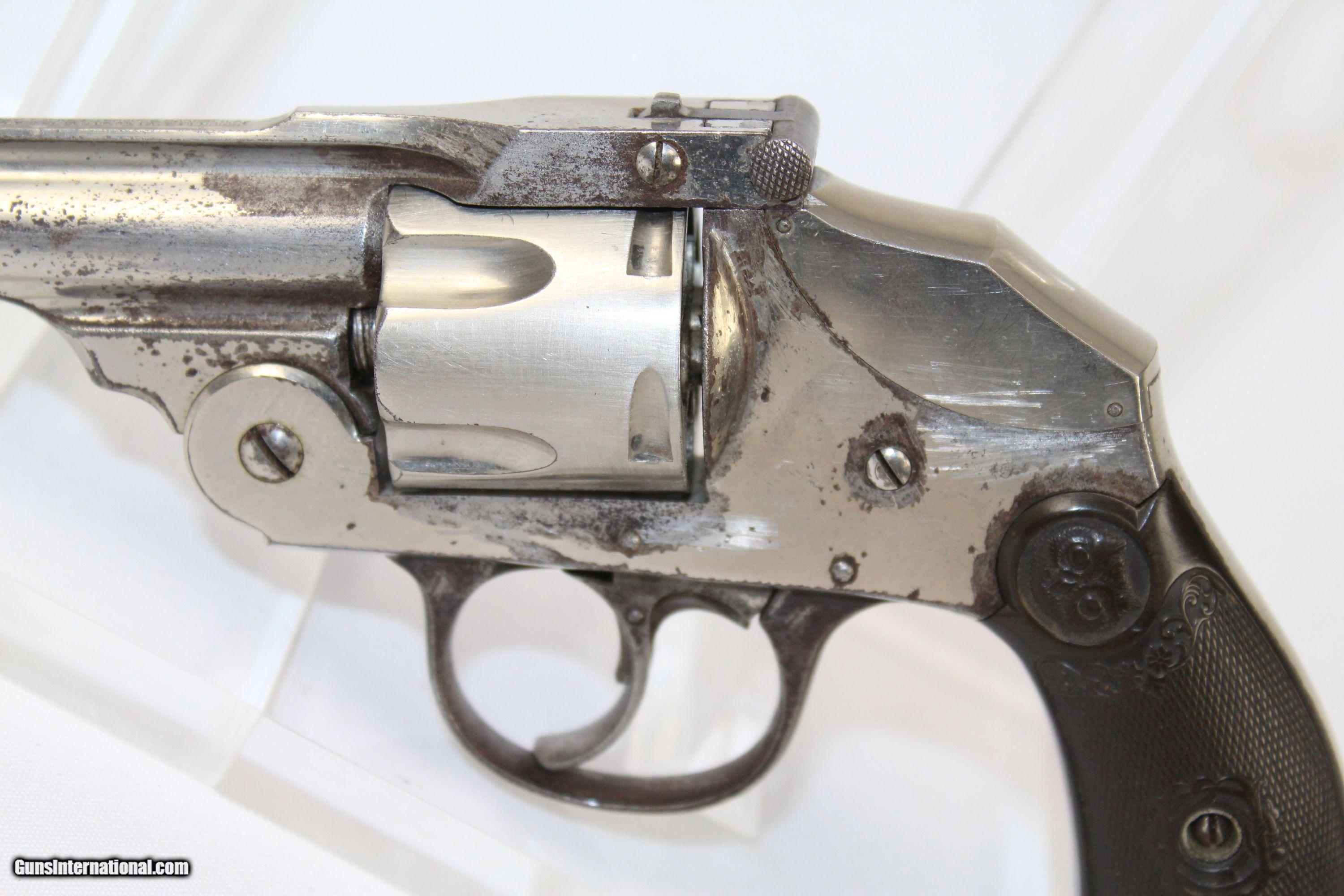 Description: C&R Iver Johnson Arms & Cycle Work Safety Revolver Small Early 20th Century Conceal & Carry Revolver Here we present an Iver Johnson Arms & Cycle Works Safety Hammerless Double-Action Top-Break Revolver, made circa the early 20th Century in Fitchburg, Massachusetts. Iver Johnson & Martin Bye both cut their teeth with Ethan Allen, then started their own company in 1871. The company continued to operate until 1993. This revolver was designed to be small and concealable for self-defense. This revolver is chambered for 5 shots of .38 S&W and features a trigger safety insert, somewhat like those in striker fired handguns today. The top of the barrel is marked “IVER JOHNSON ARMS & CYCLE WORKS/FITCHBURG, MASS. U.S.A.” followed by ’86, ’87, and ’93 patent dates. The overall condition is fine. The original nickel finish is 90%. The markings are clear. The original grips are in fine shape. The bore is sharp and clean. The action is strong. Here is a great little early-20th century revolver! This firearm is classified as a Curio & Relic. Barrel is 3-1/4 inches. Caliber: .38 S&W Overall condition as seen in photos. Very Fast. Very Safe. FREE SHIPPING. Will need to be sent to your local FFL or C&R licensee. This firearm is classified as a Curio & Relic. Guaranteed AUTHENTIC & Includes CERTIFICATE OF AUTHENTICITY. ancestryguns $450 #5188 SOLD Curio/Relic: Yes |