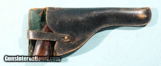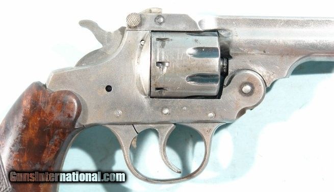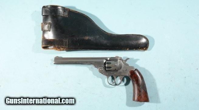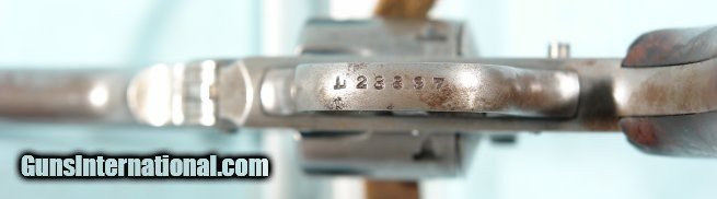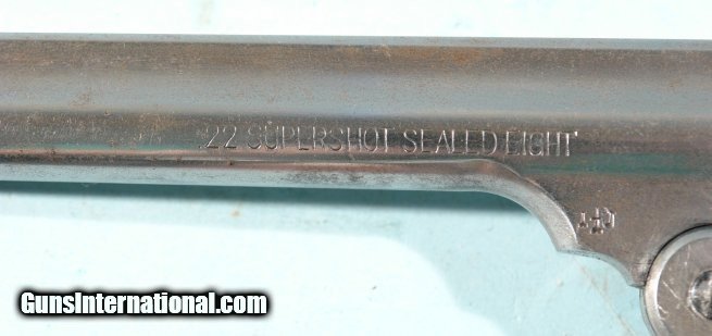Description: IVER JOHNSON .22 SUPERSHOT SEALED EIGHT 2ND MODEL 833 WITH 6" BARREL & HOLSTER, CIRCA POST WW2. All original condition with factory finish missing now(not refinished-just in the white) with traces of blue finish in recesses. Barrel rib with crisp "Iver Johnson's Arms & Cycle Works/ Fitchburg Mass. USA" address. Correct factory sights. Missing right side frame screw(does not affect proper function). Tight top break lockup. Eight shot cylinder cycles as it should with excellent chambers and bore is mirror bright with crisp rifling. Ejector works great. One piece factory burl walnut deluxe grain wood grips correct with diamond checkering on backstrap. Dbl action and single action. Although no finish it still has many more years of shooting left in it. Leather holster with felt lining fits it perfectly with stitching missing from one side but holes not stripped out so can be stitched again easily. SOLD Curio/Relic: Yes Handgun Caliber: .22 Long Rifle |