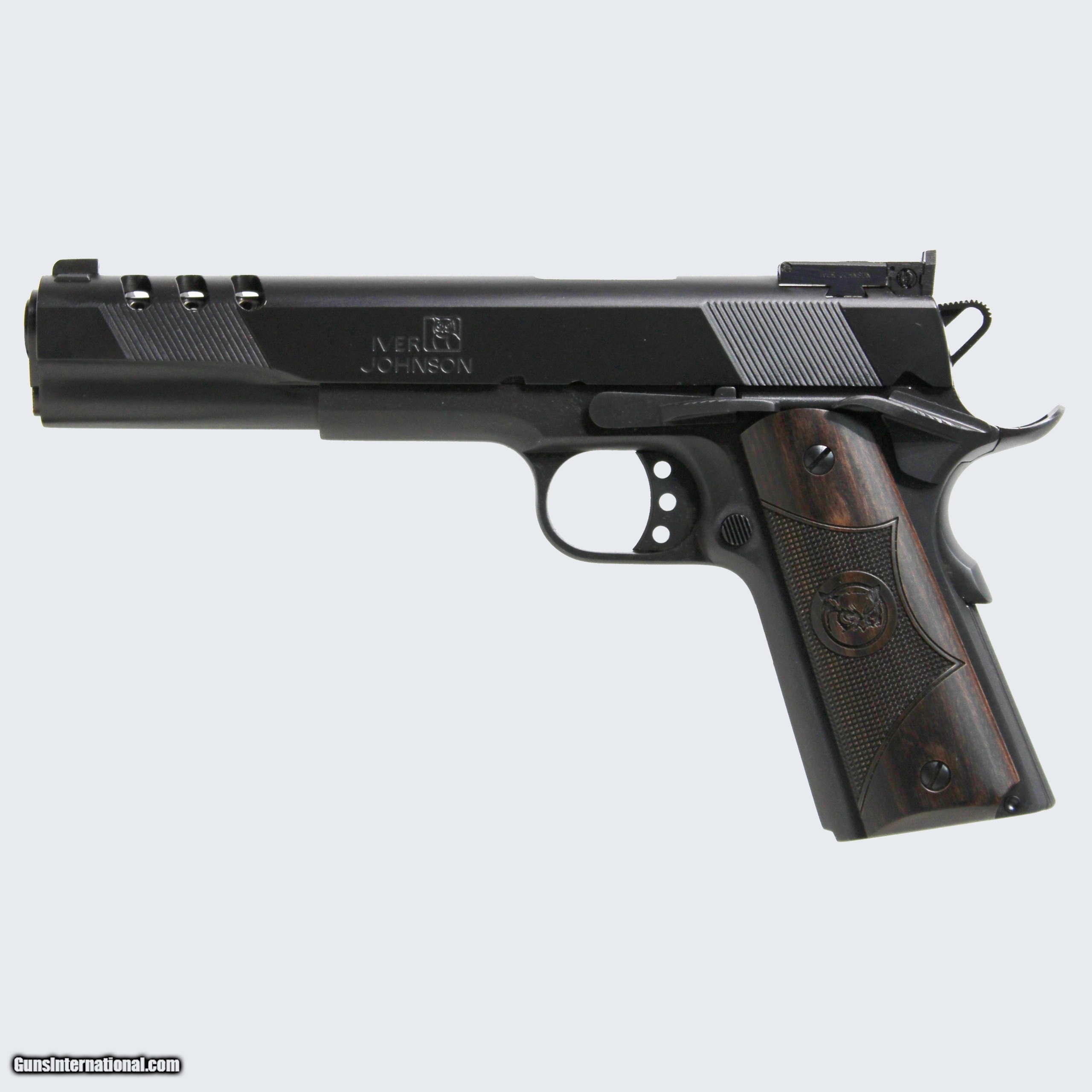 Description: BRAND NEW IN THE BOX AND READY TO SHIP! BUY IT NOW!! Manufacturer: Iver Johnson Model: Eagle XL-10 SKU: EAGLEXL-10PORTE Action: Single Caliber: 10mm Capacity: 8 Rounds Barrel: 6" Ported Frame: Matte Blued Slide: Black Cerakote, Ported Grips: Dymondwood Walnut with Logo Overall Length: 9.75" Sights: LPA "TRT" Fully Adjustable, White Dot Rear Sight w/ Dovetail Front Sight Weight: 40 oz The Eagle XL is a single-action, long-slide 1911 based on the classic John Browning Government model design. The ports in the slide and matching ported holes in the barrel help to reduce felt recoil when firing, which makes for quicker target acquisition between shots. The ports in the slide also reduce the overall weight of the pistol by 2 oz. The frame has the sleek lines of a traditional 1911 with its rounded dust cover (no accessory rail), rounded trigger guard and smooth front strap. The dual-texture walnut grips are engraved with the Iver Johnson owl's head logo. The magazine well has a slight bevel to aid in quicker reloads.