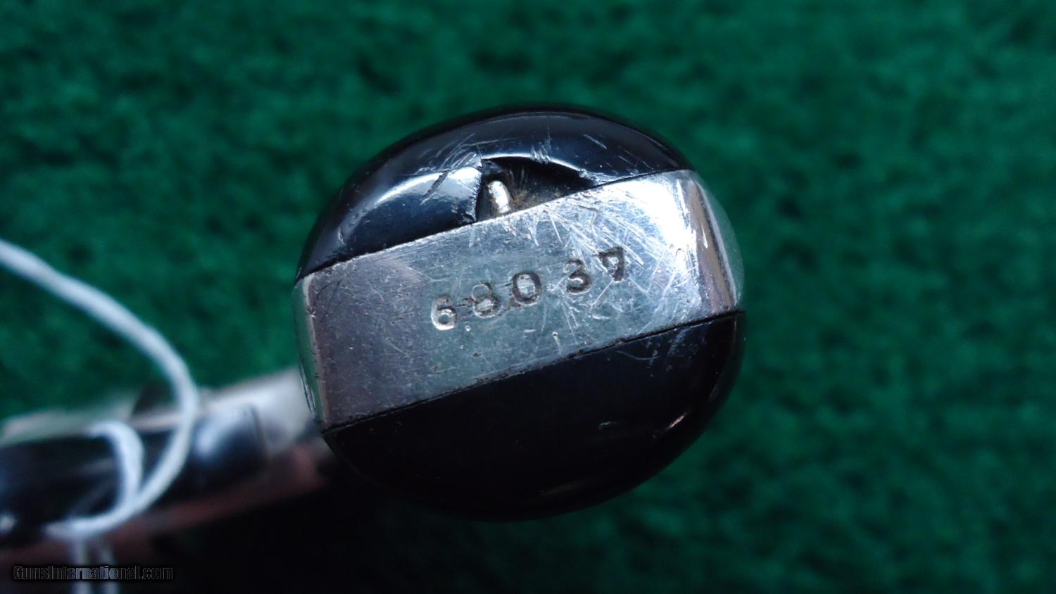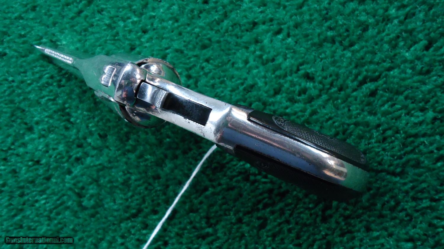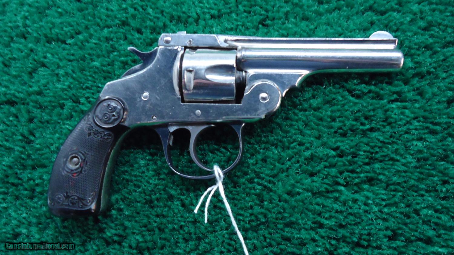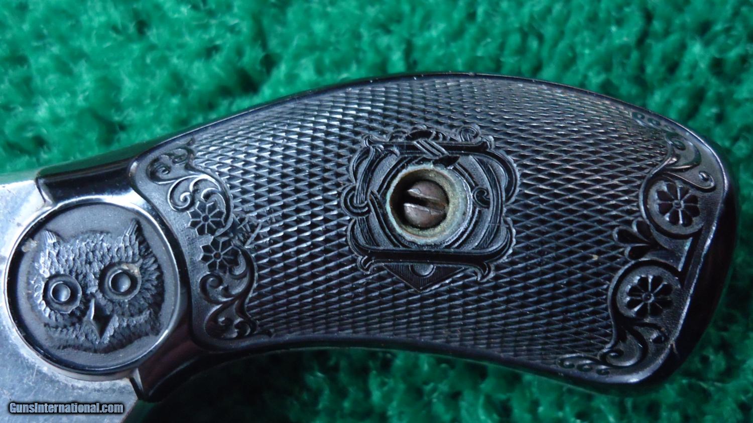 Description: .32 S&W Short caliber. 3 inch barrel. Shiny bore with light rifling. 5 shot. This 1894/1895 built revolver remains in excellent condition with 98% nickel on metal surfaces. Trigger guard has most blue remaining. Very faint case colors visible on trigger. The Owl's head hard rubber grips show light wear with a small chip on the bottom of the left grip. This is the first model safety automatic hammer first variation with the release lever mounted on the left side of the top strap. Iver Johnson's Arms & Cycle Works name on barrel. This is an inexpensive Antique revolver that doesn't take up a lot of room in your collection. Leroy Merz Antique Firearms specializes in antique and vintage Winchesters and other fine American firearms. Since 1965 Mr. Merz has taken part in the world of firearms and has been a contributor to many well known reference books. Just recently we mailed the 126th edition of our privately-published catalog. We have hundreds of additional guns in every price range at our home online. Search for Merz Antiques in google. SOLD Antique: Yes |