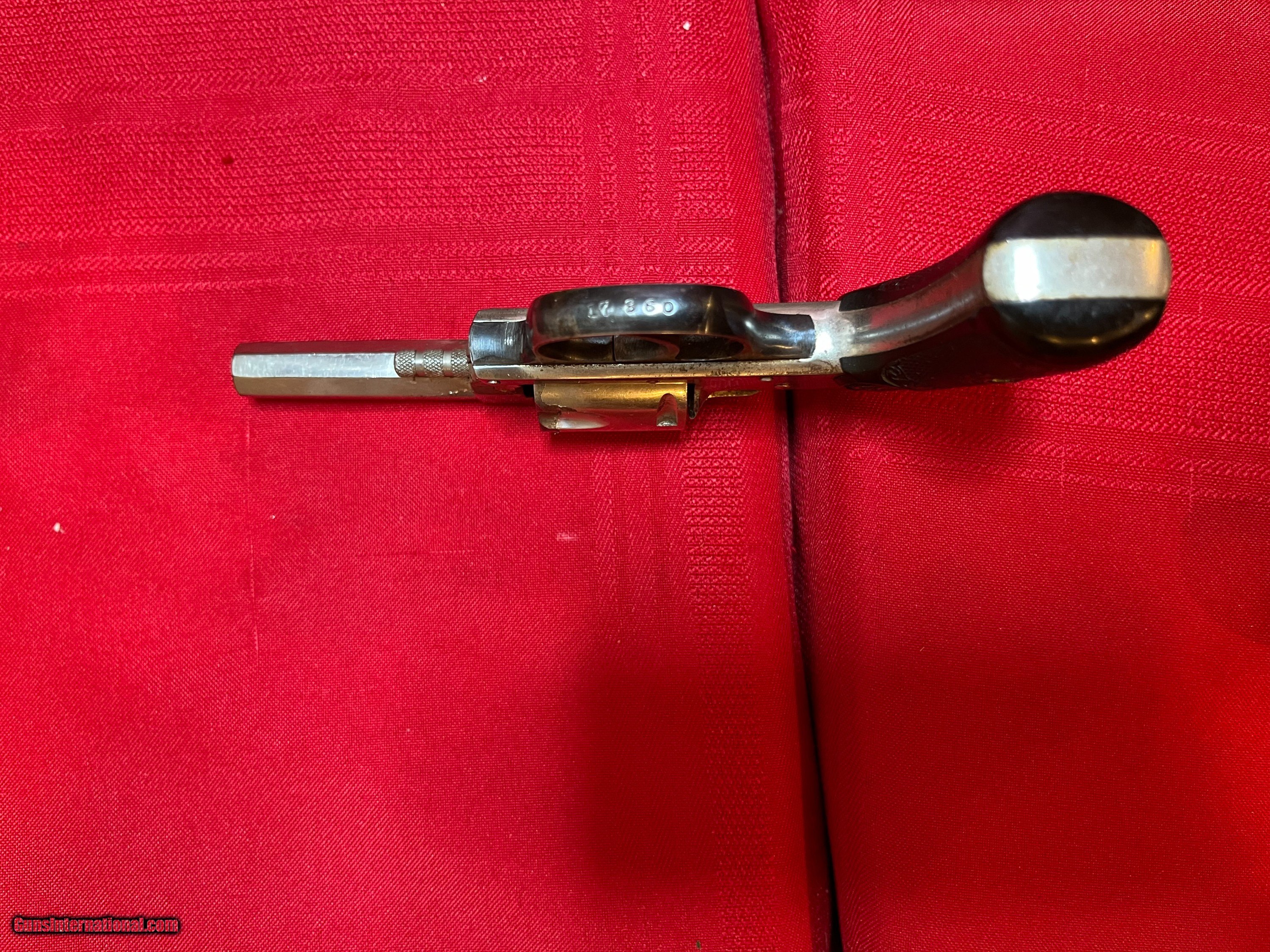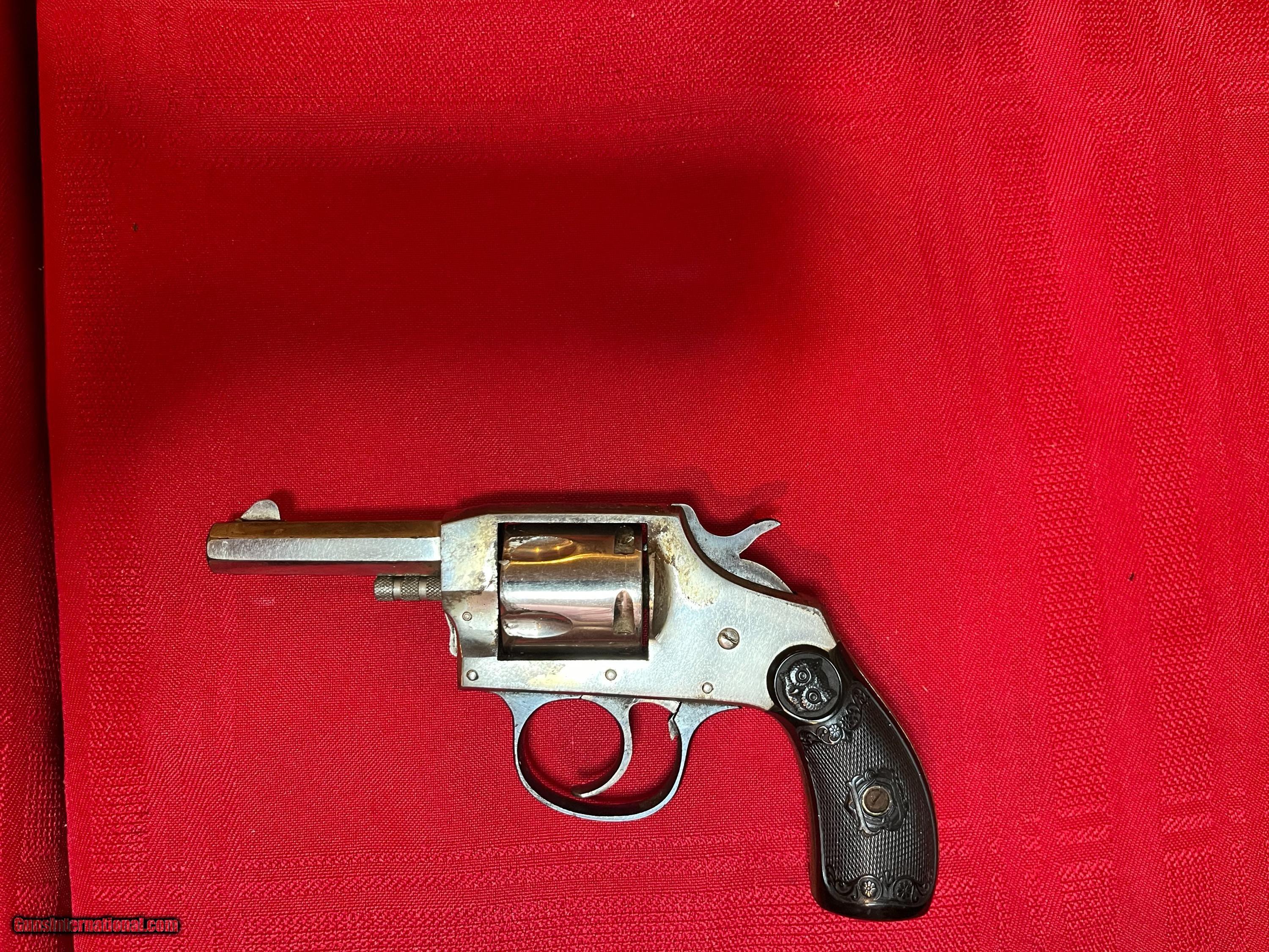 Description: Model 1900 Iver Johnson 32 caliber 5 shot revolver. Nickel finish. Perfect original grips. Octagon 2 1/2" barrel. Good mechanics. SOLD Curio/Relic: Yes Handgun Caliber: .32 S&W |