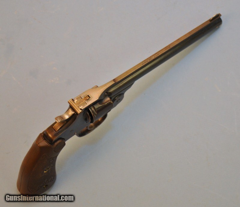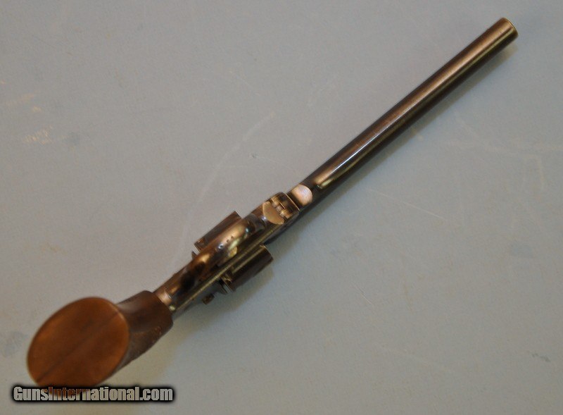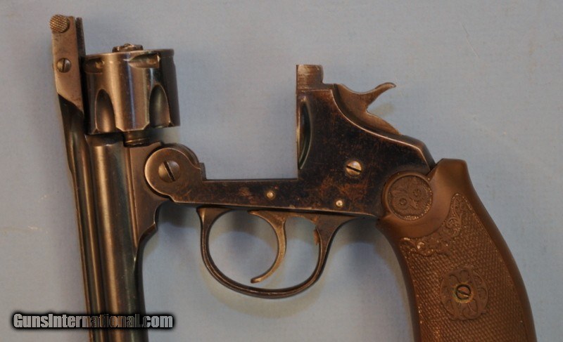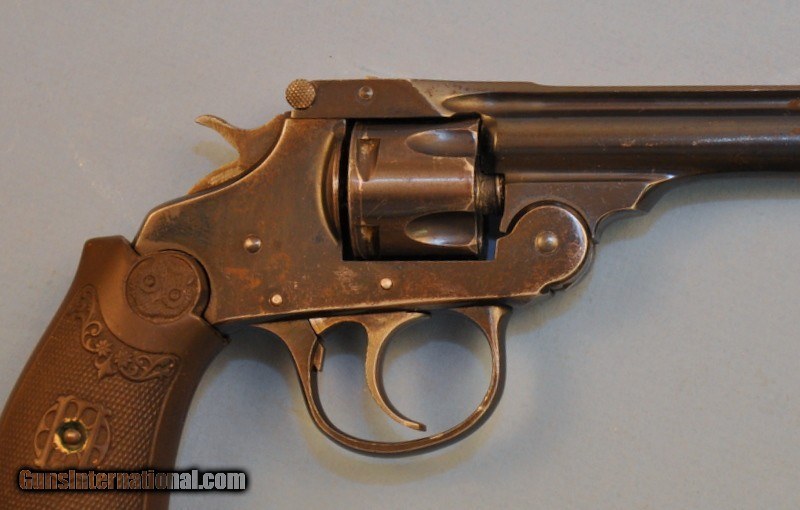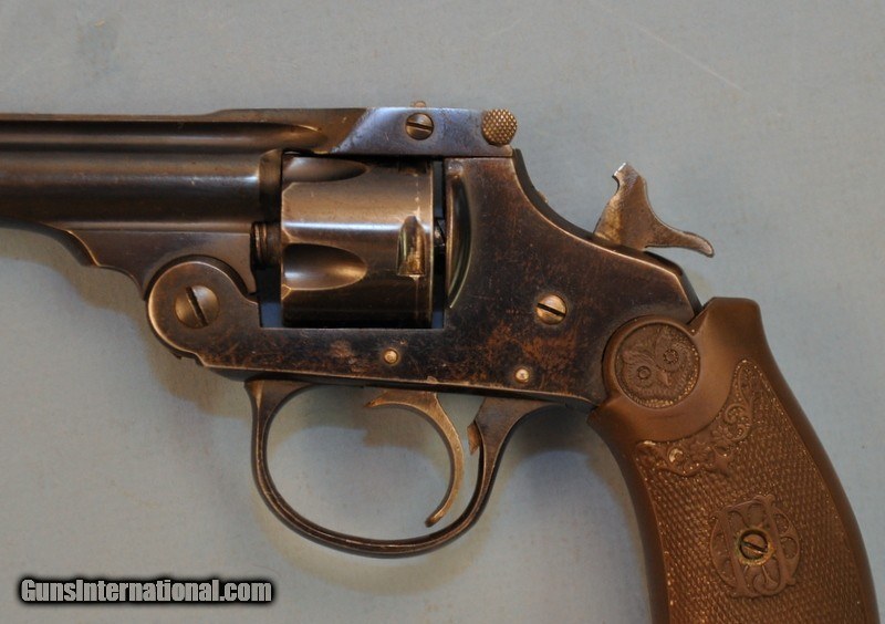 Description: Caliber .32 S&W. Serial number 53470. Small frame top break DA revolver with blue finish. 6" ribbed barrel with semi circular front sight. Fluted 5 shot cylinder. Owl's Head 2 piece bakelite grips. 80% lightly worn blue shows edge wear & freckling. Grips show light wear. Bore is generally bright with strong rifling. Sound mechanics. Shipping to FFL or C&R $15.00. SOLD Curio/Relic: Yes