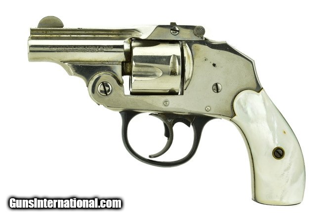 Description: Iver.Johnson Safety Hammerless .32 S&W Caliber Revolver. Pre-war pocket snub with nickel finish and pearl grips. Very similar to a Smith & Wesson Bicycle gun.