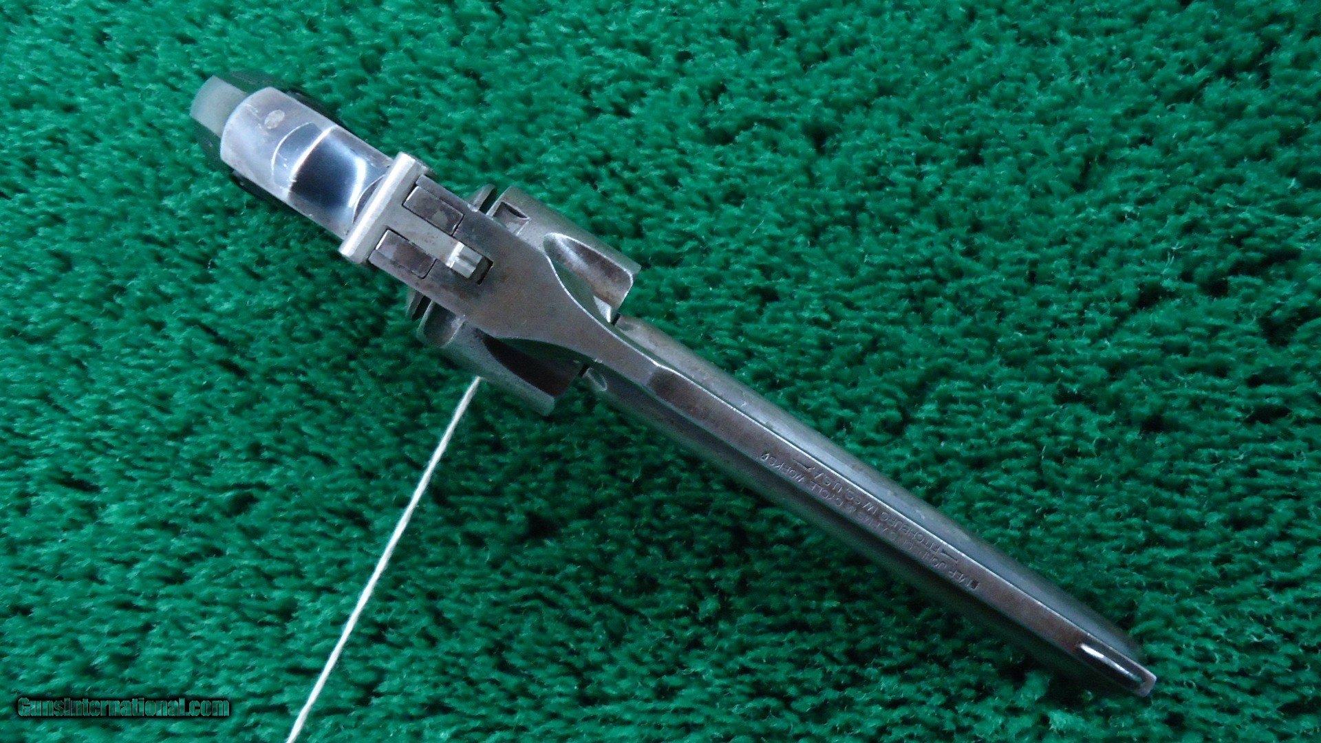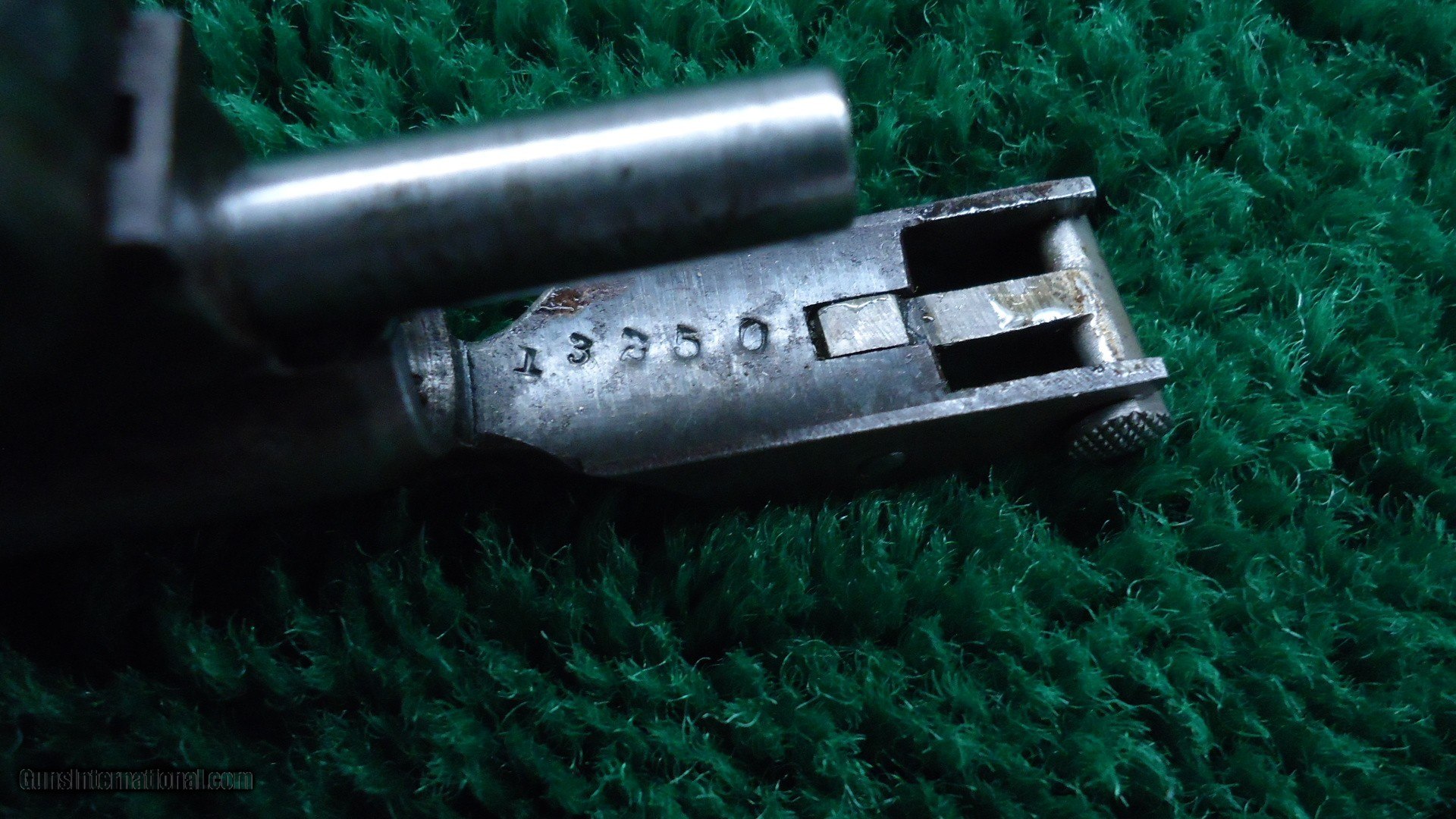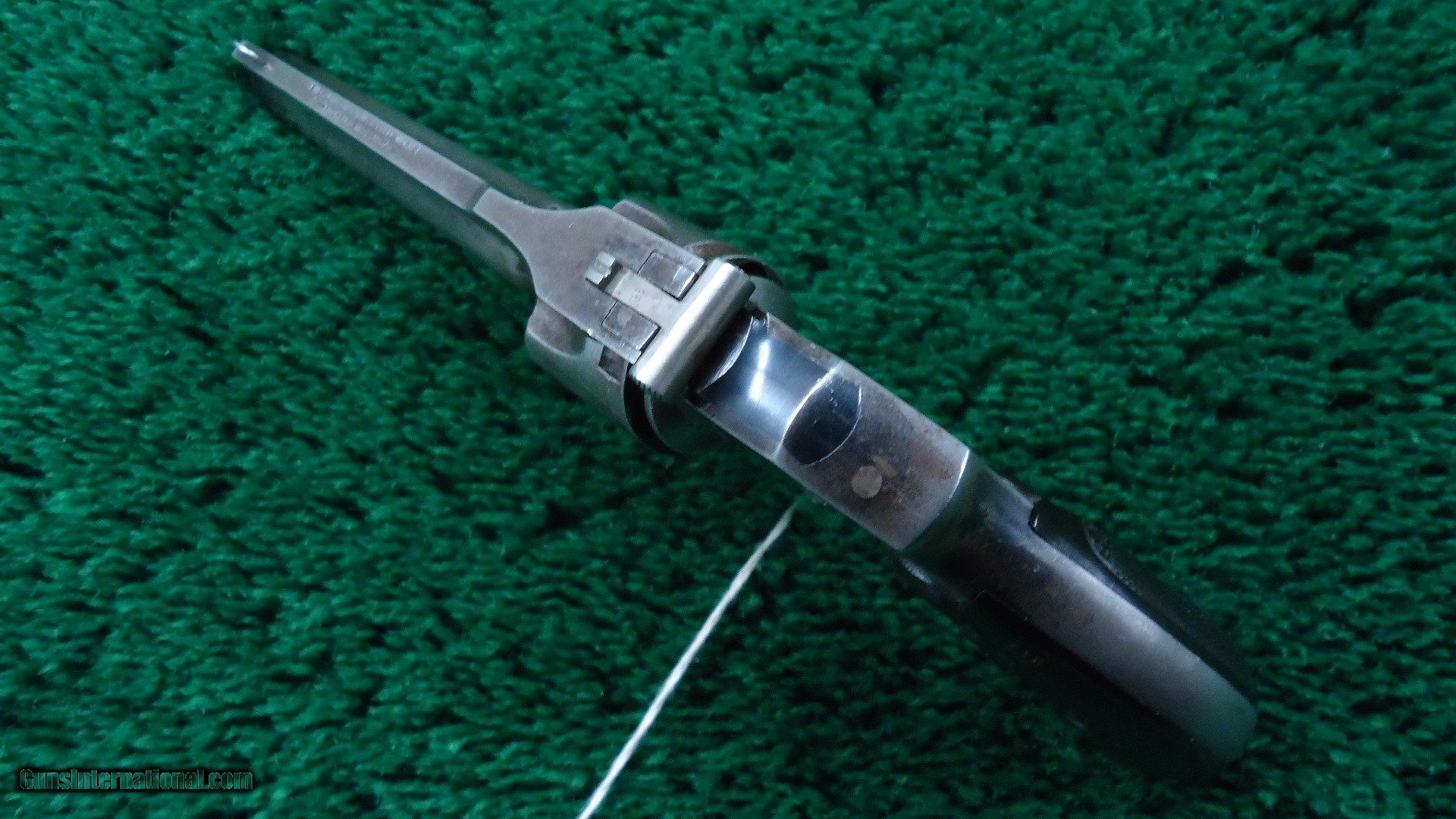 Description: 4 inch barrel, 5 Shot fluted cylinder. Finish on metal surfaces is thinning to a gray patina with traces of darker finish in protected areas. Bore is fairly bright with scattered light pitting and decent rifling. Action seems to work. Hard rubber checkered owl head grips. Leroy Merz Antique Firearms specializes in antique and vintage Winchesters and other fine American firearms. Since 1965 Mr. Merz has taken part in the world of firearms and has been a contributor to many well known reference books. We have hundreds of additional guns in every price range at our home online. Search for Merz Antiques in google. SOLD Curio/Relic: Yes |