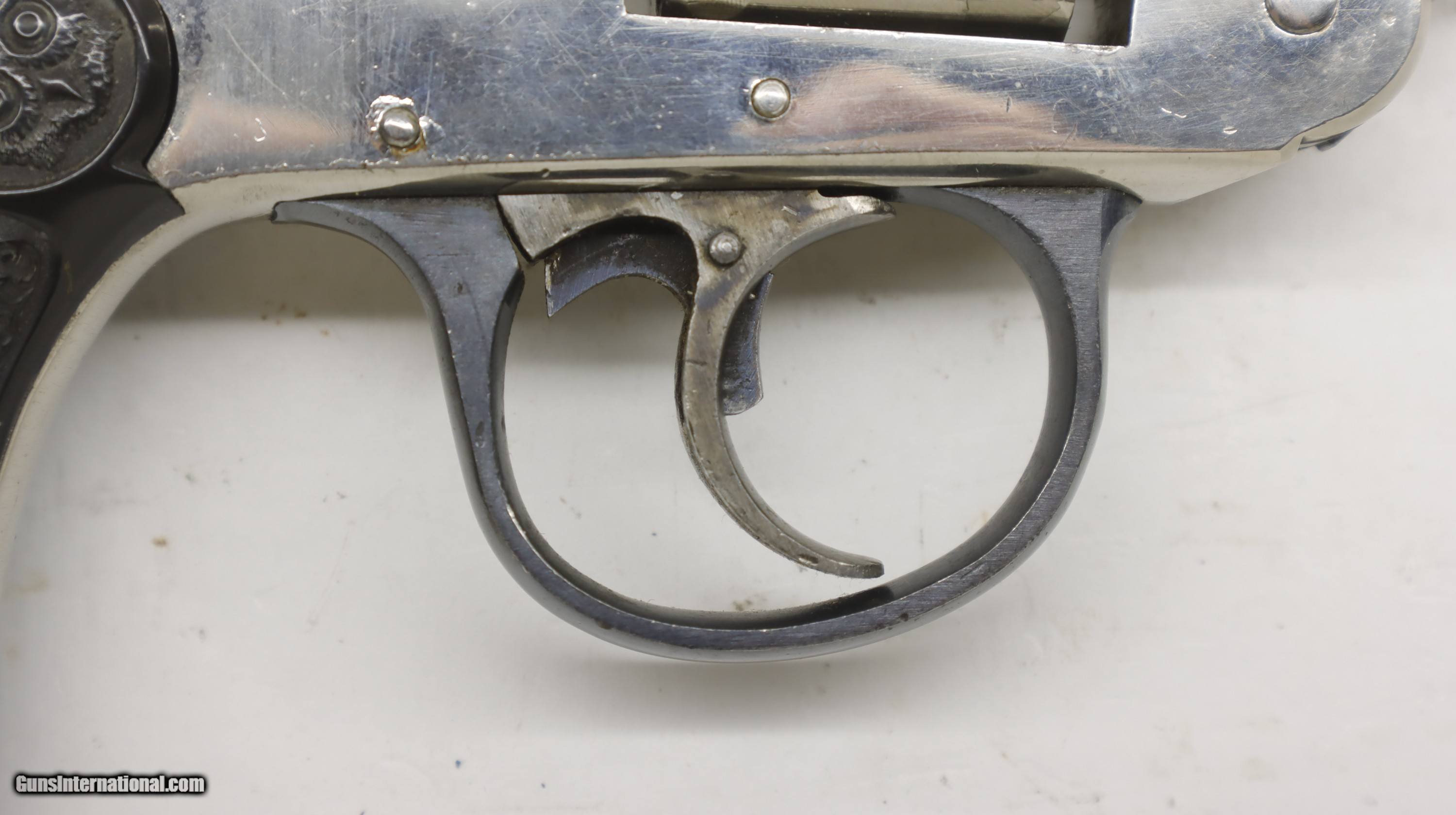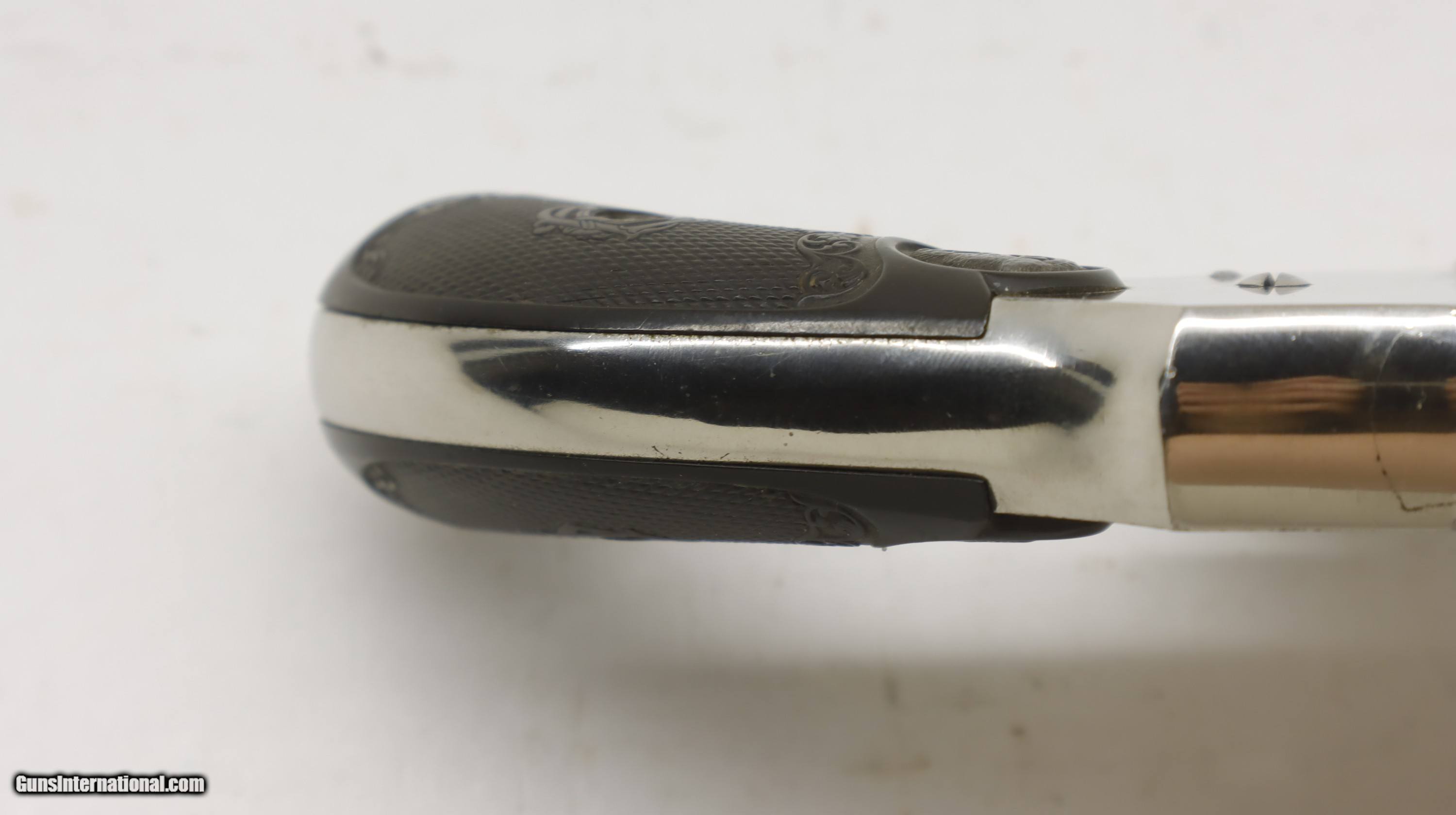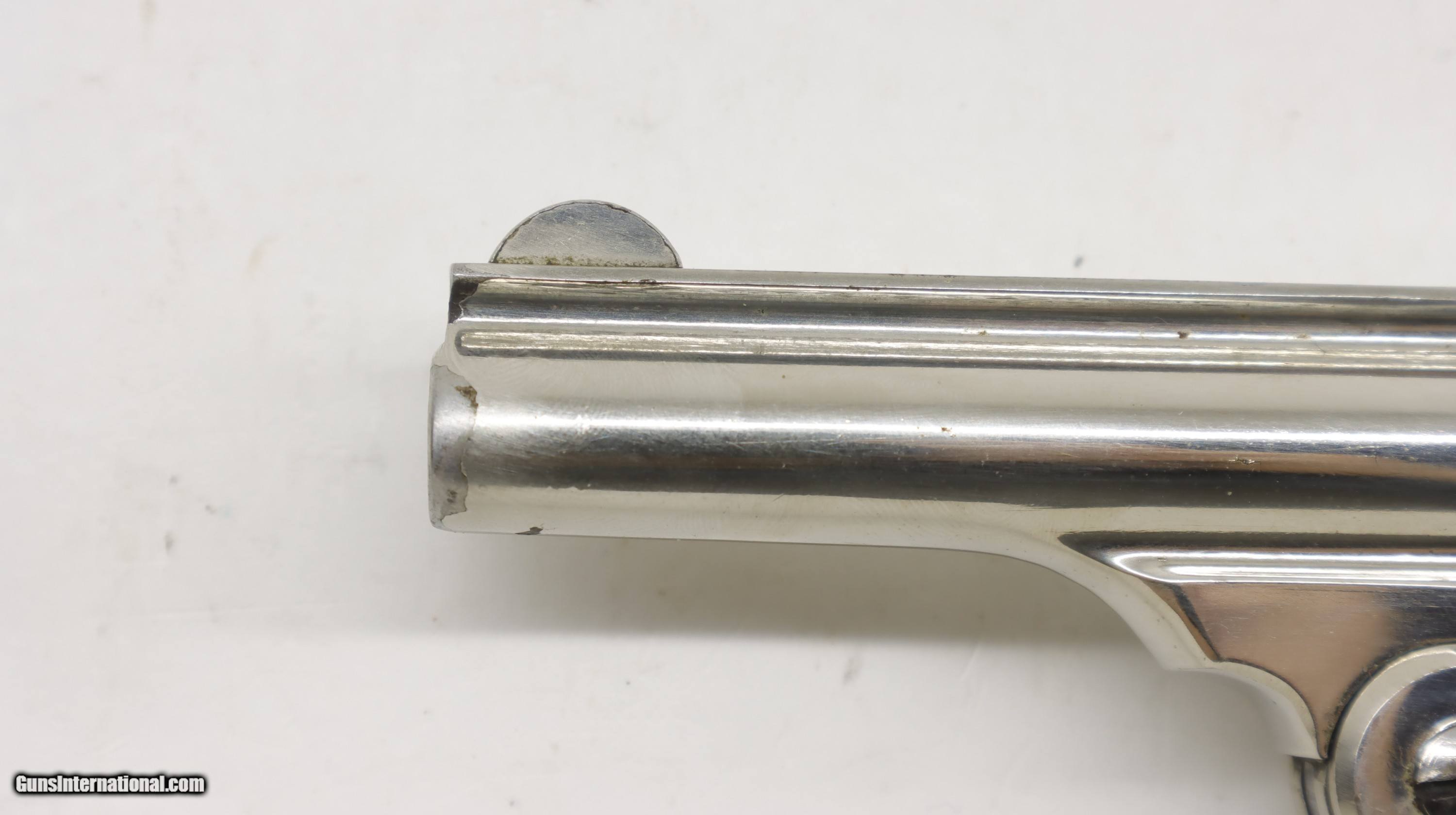 Description: Iver Johnson Top Break Nickel Hammerless 38 S&W 3" barrel. NSN. Looks to be all orignal. Trigger, hammer and ejector all work as they should, good bore, nice classic gun. We will trade for silver and gold coins and bars. We are an 07 dealer and deal in machine guns! Used guns might need a good cleaning to bring the gun up to your standards. We buy and trade for guns. All my guns (except layaway) come with a non-firing, 3 day unconditional return privilege, from the day UPS delivers to your dealer. Buyer pays shipping both ways if the gun comes back. Please make sure to make it to your FFL to inspect within the 3 days. We can hold until you know you can make to your dealer in your 3 day window. We accept personal check or any certified funds. We can also take your credit card, +3%. Email me if you would like these pictures sent to you, they will come through bigger and better than on the listing page here. We do offer Layaway. Our standard terms are 25% down, 90 days. Initial deposit is not refundable. Layaway guns do not have a return/inspection period. Email me with any questions. Please check your local laws to confirm it is legal to own in your state! Buyer pays $30 shipping and insurance to your FFL in the lower 48. AK, HI or PR is extra. I will ship to California, as long as it is legal, NO PROBLEM! I am a licensed FFL, and will include a copy of my FFL with the gun for your dealer’s records. I will ship to a C&R if the gun is eligible. I will ship to California, but you need to confirm the gun is legal where you are, California or other. WE BUY AND CONSIGN GUNS AND GUN COLLECTIONS! Will travel! We can do your machine guns! I am always looking for good clean, old original Winchesters to buy, consign, or trade, especially Pre '64's model 70's and model 54's. WE ALSO TRADE FOR CLASSIC CARS AND TRUCKS! We also trade for gold and silver. SOLD Handgun Caliber: .38 S&W (.38 Colt New Police, .38 Super Police) Manufacturer: Iver Johnson Model: Top Break Barrel Length: 3 Condition: Used |
