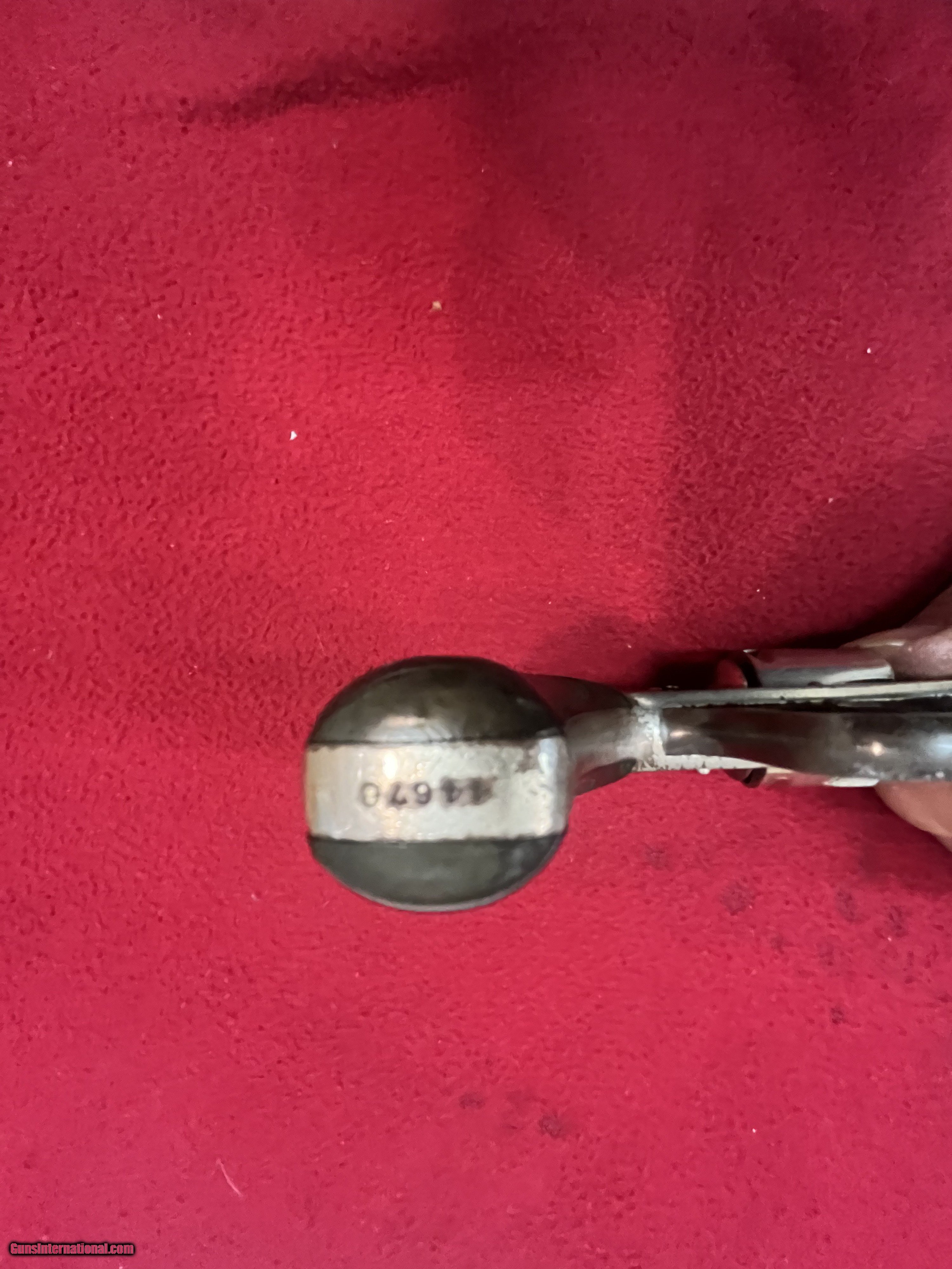 Description: This listing is for a Used Iver Johnson top-break revolver, chambered in .32 S&W. This classic 5-shot revolver features a 3" barrel, chrome finish, and original black plastic grips with the iconic owl imprint. The revolver remains in good condition for its age. It operates as desgined in 1906. Would make a good refinshing project. If the gun has a serial number with no letter prefix; it was made between 1909 and 1919. Serial number is 44670. If you need more information or more photos, please contact us. These are consignment firearms so check, or money orders is preferred, credit cards with 3%. We are an FFL Dealer so please be aware of your Federal & State laws before buying. Buyer pays the exact shipping & insurance cost for shipment of firearm to your FFL. Handgun Caliber: .32 S&W Manufacturer: Iver Johnson Model: Safety Automatic Serial Number: 44670 Barrel Length: 3 Condition: Good Metal Condition: Fair Price: $200.00 Buy Now Contact Seller |