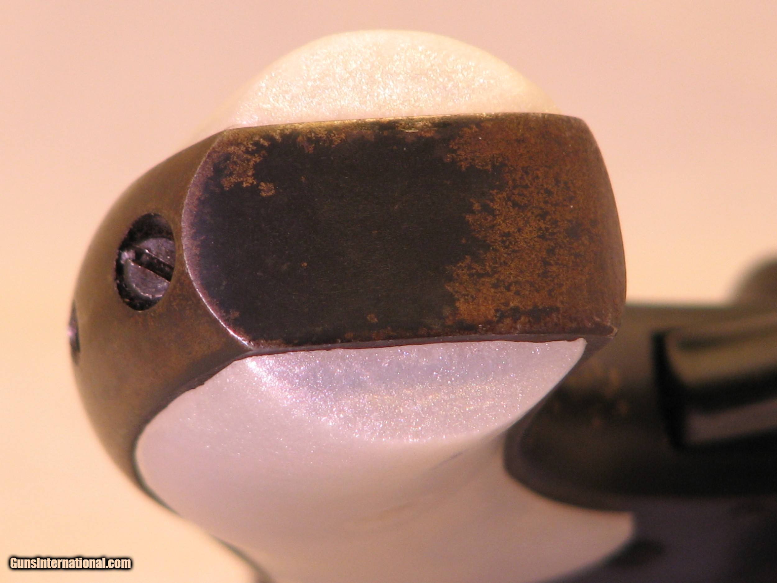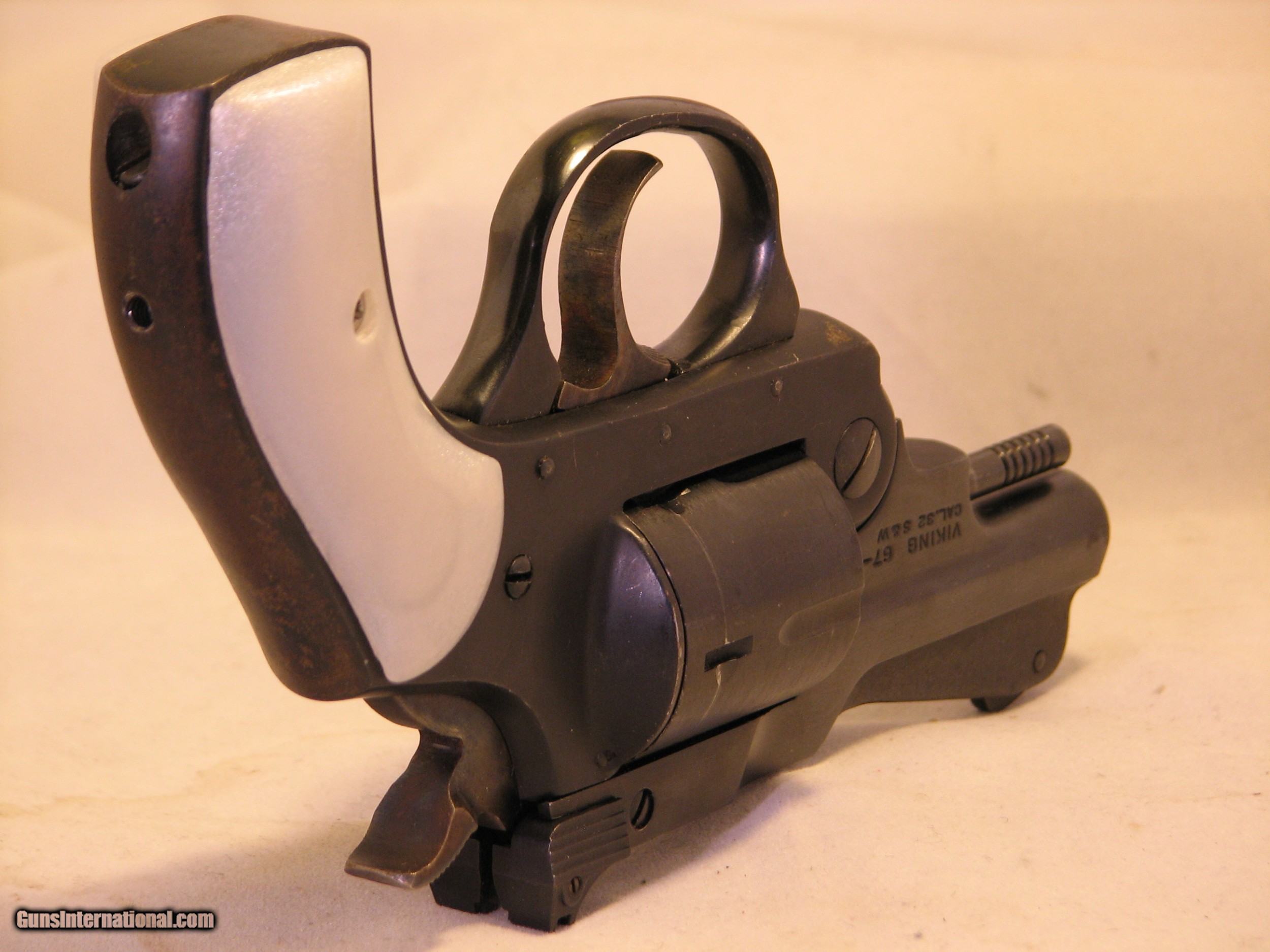 Description: Iver Johnson Viking 67s: Top Break 32 S&W, 2.5 inch barrel, 5 shot cylinder, Case hardened trigger and hammer. Custom Faux Pearl Grips, (This pistol can be ordered with other grips shown or, the other grips may be ordered in addition to the pearl grips, for $25.00 each ). This Revolver is in very good to excellent condition. Tight action, bright bore, few fine scratches on cylinder and some minor finish wear. The Viking was manufactured from 1964 to 1975. This top break firearm was built with modern day materials that will stand up to Smokeless Ammunition and will chamber safely, the 32 long cartridge, as well as the 32 short. In 1975, Iver Johnson was competing with Smith & Wesson and Colt among others, for a place in the Snub Nose firearm market. Their top break action and low pricing gave them a good advantage. This model is also considered a Safety Automatic. The safety Automatic allows the firing pin to be controlled by the trigger and a safety bar. When the trigger resets, the firing pin mechanically pulls back into the receiver, and the hammer moves away from the transfer bar. The Iver Johnson patent on the Safety Automatic was the first in history. It began in 1895 and lasted to 1905. Guns were also built with the Safety Automatic by the U.S. Revolver Company; U.S. Revolver is an 0ff-shoot of The Iver Johnson Corp. In modern times, (Now), the safety bar is used in most revolvers. “Thank you Iver Johnson.” The Safety Automatic design, allows the gunman to safely carry the piece fully loaded. He can also make use of smokeless ammo with this revolver. When Teddy Roosevelt took over as the New York City Police commissioner, he recalled all the Departments Firearms and issued every Policeman in NYC, a pistol chambered for Smokeless 32 S&W Long ammo. The future president was quite a gunman himself, and he was impressed with the power and accuracy of the 32 S&W Long Ammo. Today’s offering shows hardly any amount of carry wear, and not much actual shooting. The barrel is shiny, with lands and groves very visible. We place the remaining blue finish at 99%. This is a beautiful firearm. We have cleaned and oiled this piece as we do with all firearms that we put up for resale. The action on this firearm is surely range ready. The mechanical works of this revolver were designed very close to the platform of Smith & Wesson, Colt, and most other top firearms of the day. The Revolver’s cylinder locks up, nicely, when the hammer is cocked or at rest. However, (“Once again, as with all our acquisitions),” we used Snap Caps, (dummy rounds), to check this pistols indexing, We found that indexing is like new. This firearm is still more than fifty years since manufacture, and should be checked out by a qualified gunsmith before taking it to the range. We recommend a gunsmith that has owned or successfully worked on Iver Johnson Top Break Revolvers. The buyer is responsible for the initial shipping charges, ($35.00). We ship through our FFL provider. We will try to accommodate the buyer’s method of shipping as we can. We cannot ship until all checks are cashed and the FFL is in hand. The firearm will be shipped to your FFL provider for identification and registration. We allow a three day inspection period. Any return shipping is the buyer’s responsibility. Ammo and Speed Strips are not included in the sale. Thanks for monitoring our . SOLD Handgun Caliber: .32 S&W Manufacturer: Iver Johnson Model: Viking Barrel Length: 2.5-Inch Chambers: Excellent Ejectors: Excellent Condition: VG to E Metal Condition: VG Wood Condition: Plastic-New Bore Condition: Excellent Barrels: excellent |