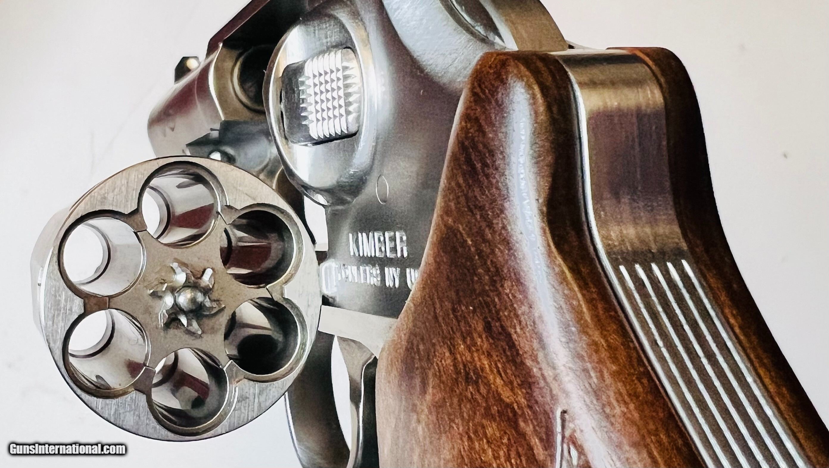 Description: Like-new Kimber K6s double-action revolver chambered in .357 Magnum. Premium stainless-steel construction with Kimber’s smooth trigger and excellent fit and finish. Fired only once and includes original box and holster. Details / Specs