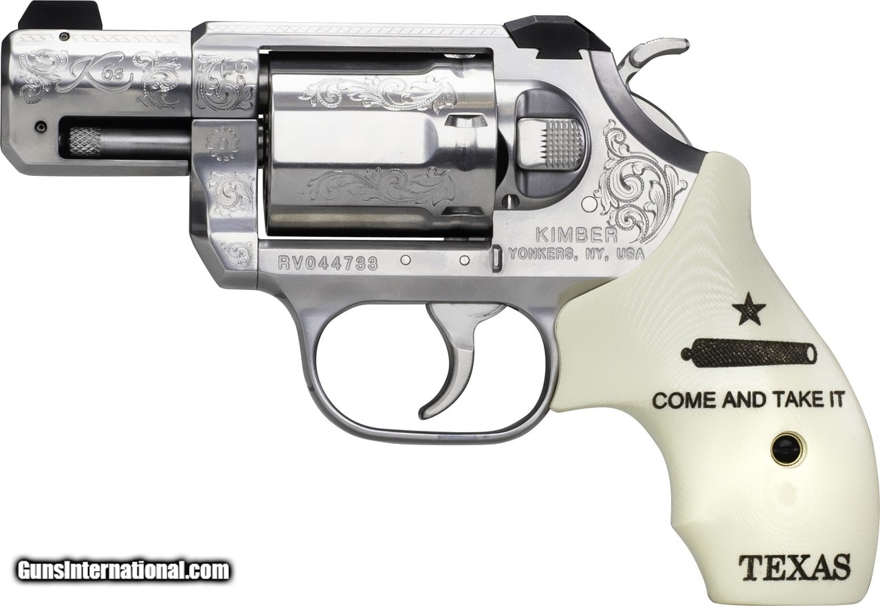 Description: Guns Listing ID: 708948 Limited edition model with western leaf and scroll engraving with saw tooth border on slide, bonded ivory grips with the Battle of Gonzales motto “Come and Take It” on left panel and State of Texas with state flag insert on right panel. - CALIBER .357 MAG - FRAME & BARREL Engraved over Brushed Stainless - SIGHTS White 3-Dot - GRIPS Bonded ivory grips with 1835 motto “Come and Take It” on left panel and State of Texas with state flag insert on right panel SOLD Manufacturer: KIMBER Model: K6S DASA TEXAS EDITION Caliber Info: .38 SPECIAL/.357 MAGNUM Condition: new Barrels: 2 BARREL Finish: STAINLESS |