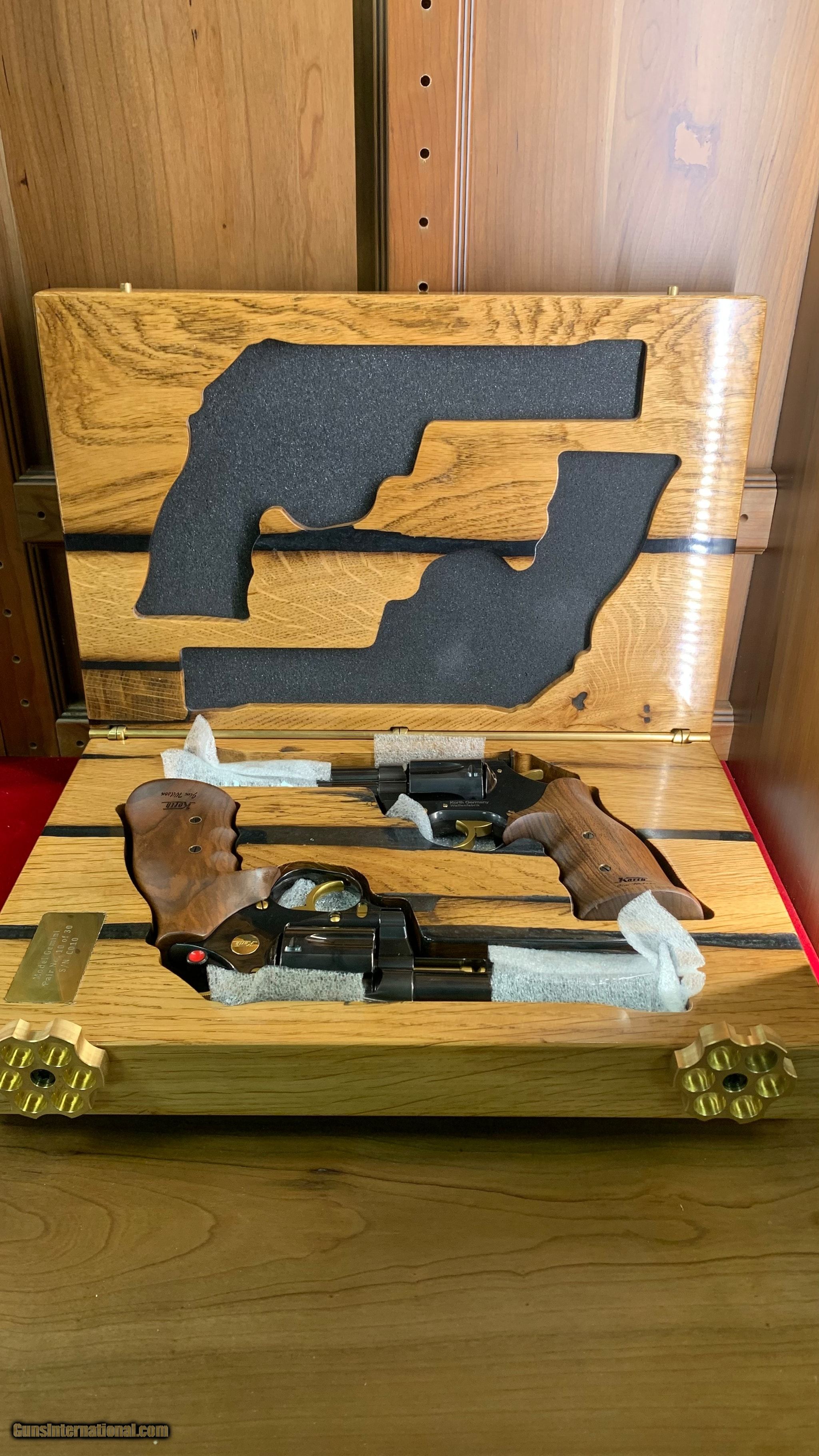 Description: Guns Listing ID: 397087 **New** Korth Germany/ Nighthawk Customs Gemini 2 revolver set in wooden case #10 of 30 SOLD Manufacturer: KORTH Model: GEMINI 2 GUN SET Caliber Info: .357 MAG Condition: Used - Non-Certified Barrels: 5 BARREL Finish: BLACK AND GOLD |