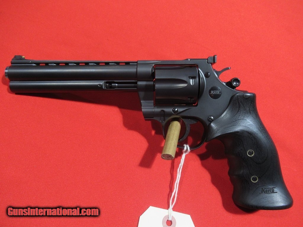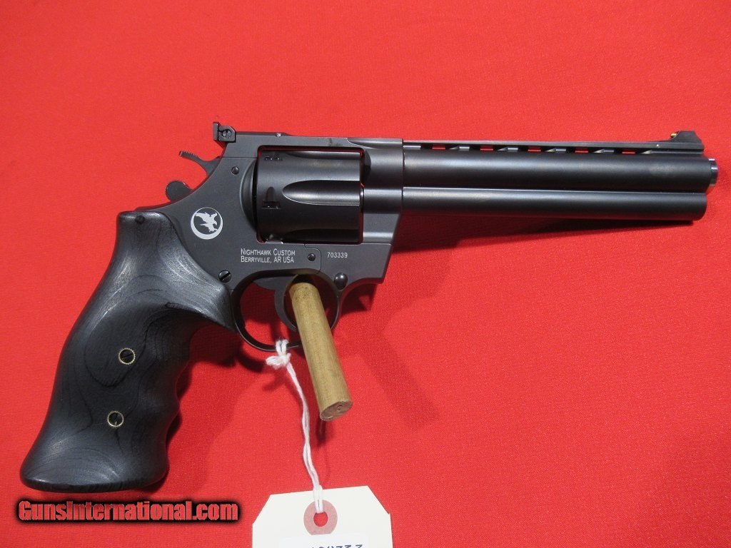 Description: Nighthawk Custom/Korth Mongoose full black out NIGHT FINISH: This revolver frame and internal parts are machined from the finest billet steel before being hand polished and fit to ensure unequaled performance. The finish is a sleek looking black DLC (Diamond Like Carbon) coating that is extremely thin and ultra durable, four way adjustable rear sight, gold bead front sight, skeletonized hammer, easy access cylinder release to make cleaning simple and fast, contoured smooth wood grips. Includes owner's manual, wrench for sight adjustment, and wrench for disassembly. This revolver has a ventilated top rib. SOLD |