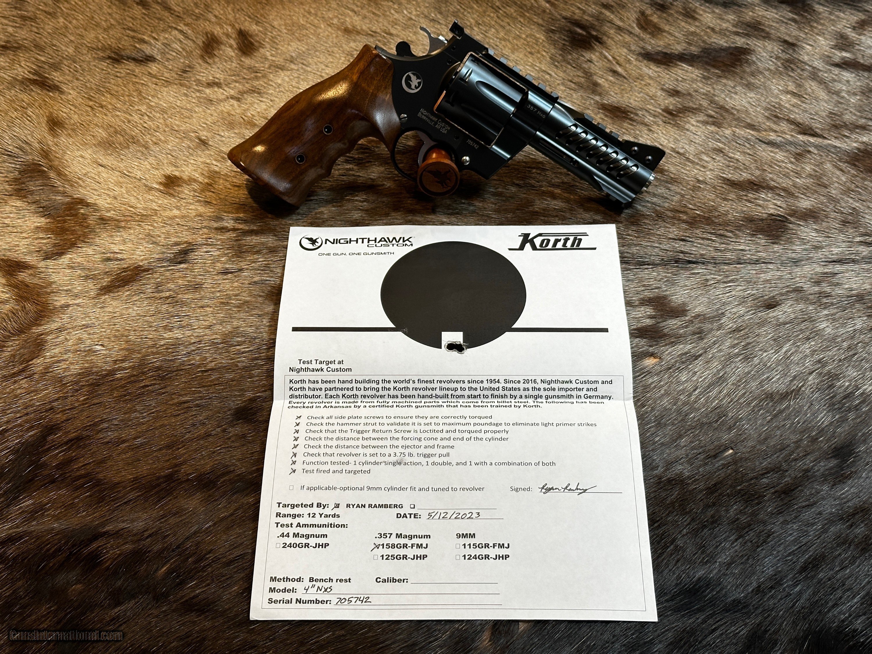 LNIB UNFIRED KORTH NXS 8-SHOT 357 MAGNUM 4" BARREL w/ COMPENSATOR NIGHTHAWK - LAYAWAY AVAILABLE