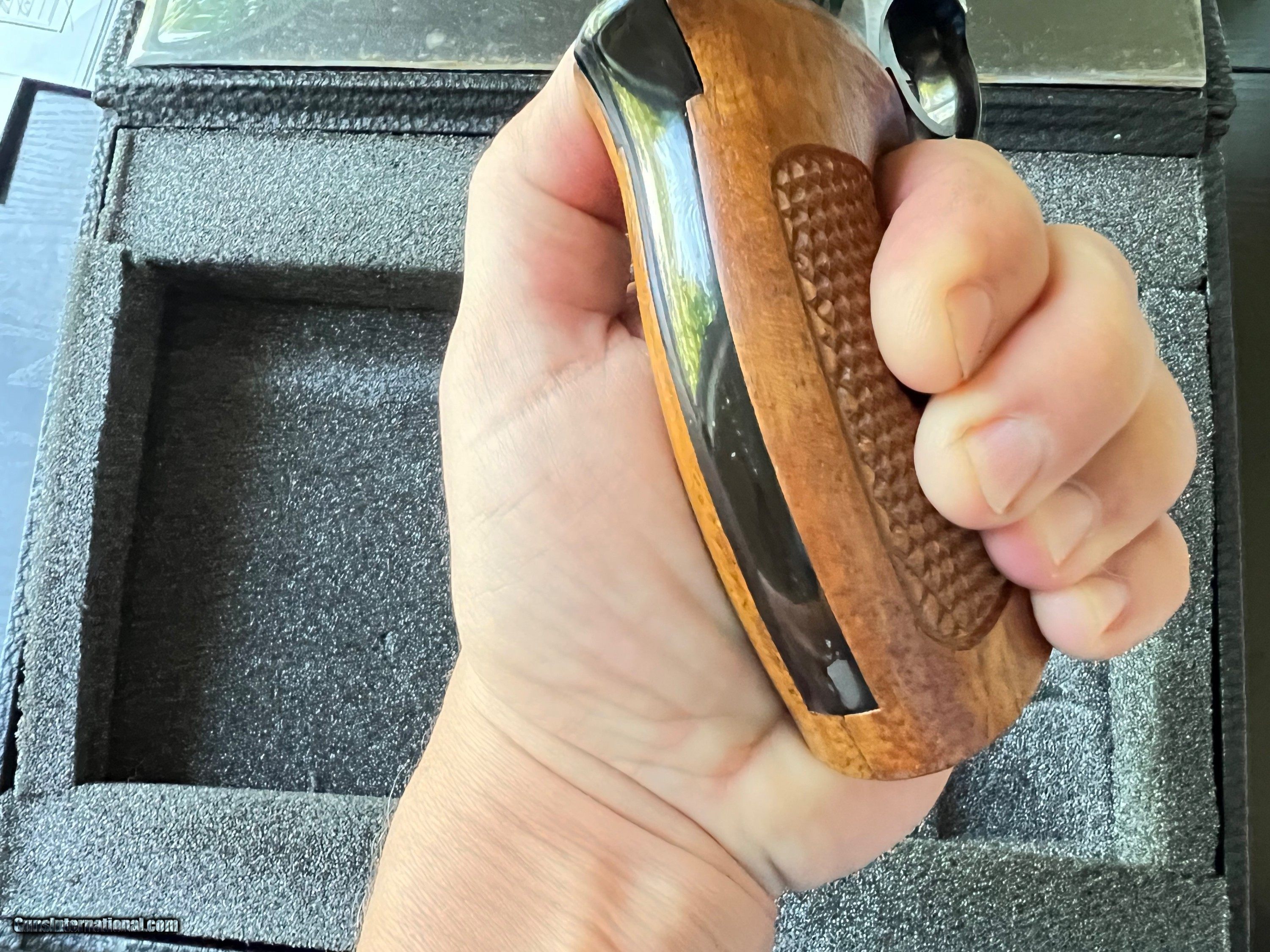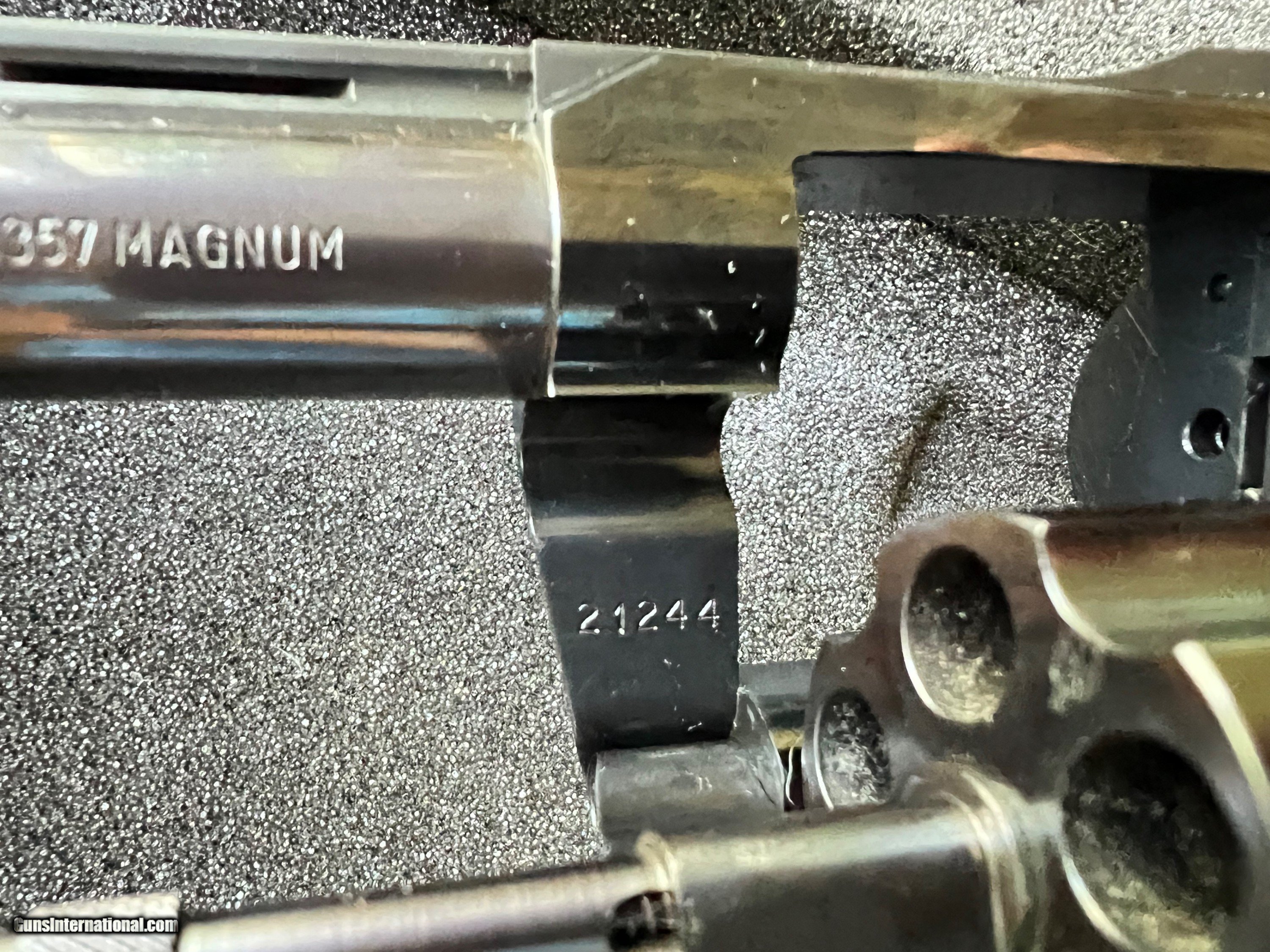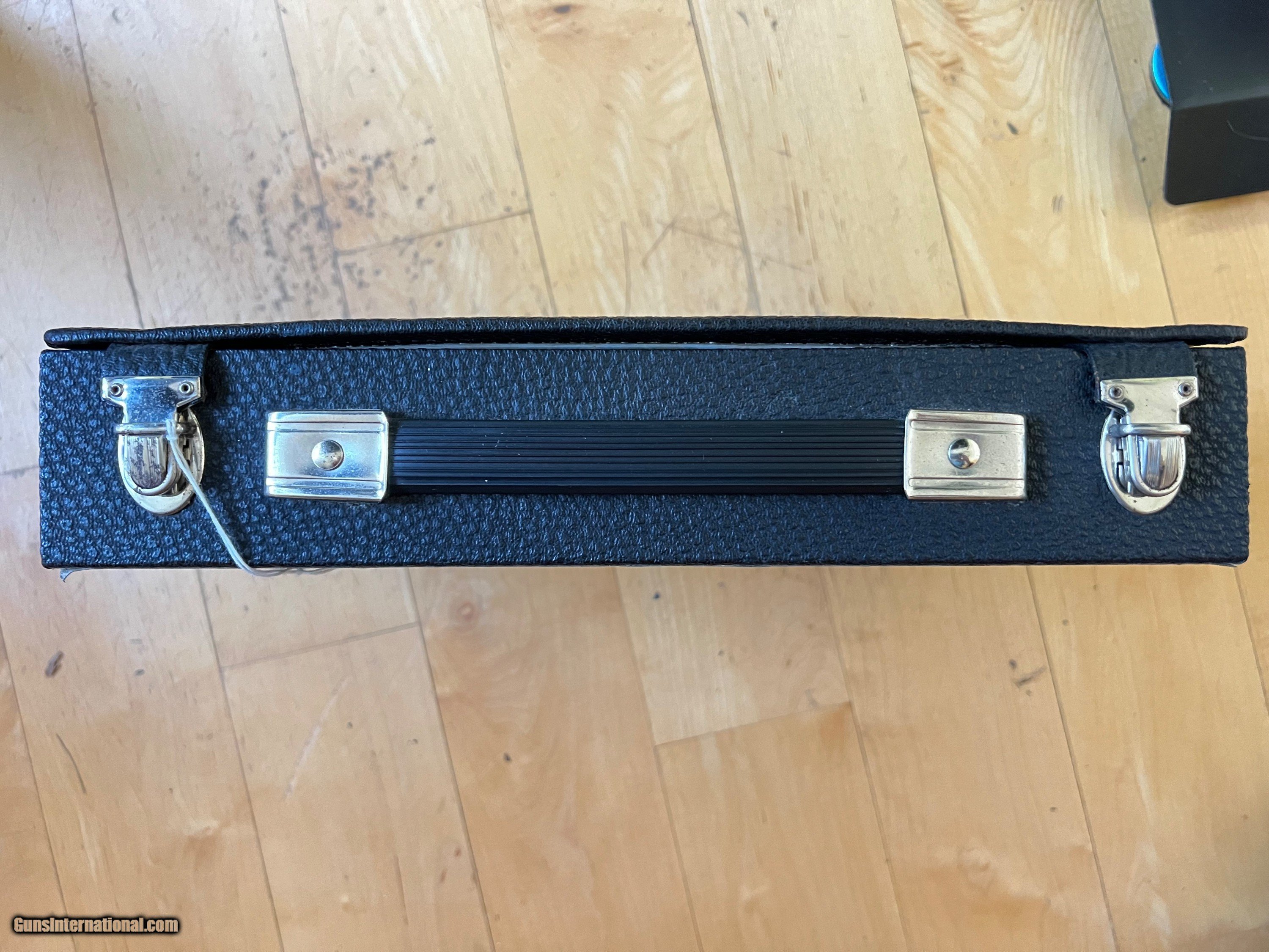 Description: This is a mint example of an early Korth .357 magnum revolver, made in 1966. It is in near new condition, with mint bore, with just a hint of turn line on the cylinder, a tiny spot of wear on the rear strap towards the bottom and a tiny nick on the front lower corner of one grip. The gun is NOT import marked and has a mint bore and a superb deep blueing throughout. It has an adjustable rear sight and unbelievably smooth action. It is West German proofed and dated 1966 on the right side of the barrel. Revolves made by Willie Korth in 1960s and 1970s were unmatched in quality by any other contemporary manufacturer. The guns were made from a solid steel forging and had a patented cylinder release. They are considered to be a pinnacle of modem revolver design. Any wear that you might see on the finish is just light reflection and oil. There is no wear other than whta was mentioned in the description. Enclosed in a period (factory?)leatherette carry case, this gun would be impossible to upgrade. 3-day inspection. FFL or C&R(where allowed) $75 insured shipping in CONUS. SOLD Curio/Relic: Yes |