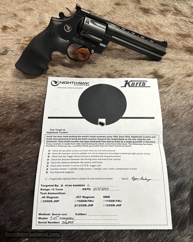 NEW KORTH MONGOOSE 357 MAGNUM 5.25" BARREL NIGHTHAWK CUSTOM - LAYAWAY AVAILABLE
