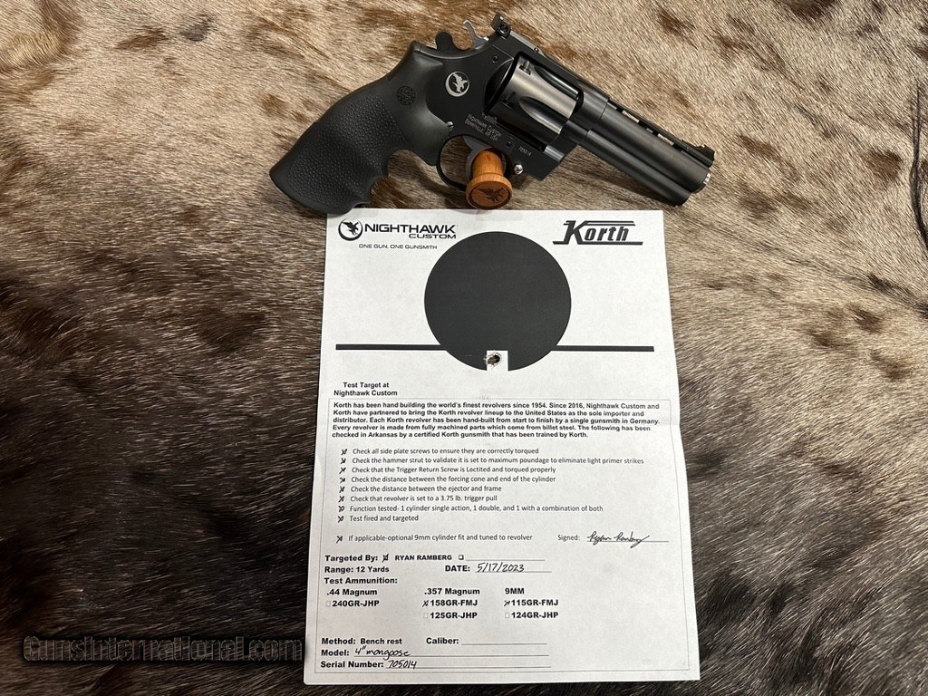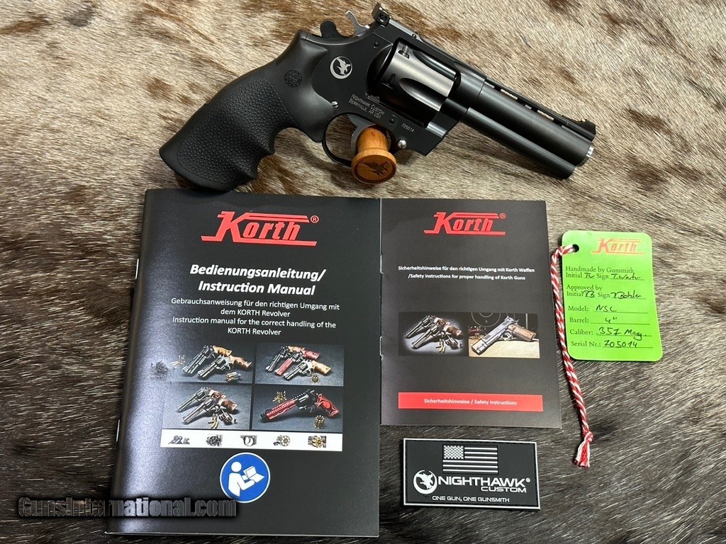 NEW KORTH MONGOOSE 4" 357 MAG W/ 9MM LUGER CYLINDER NIGHTHAWK CUSTOM - LAYAWAY AVAILABLE