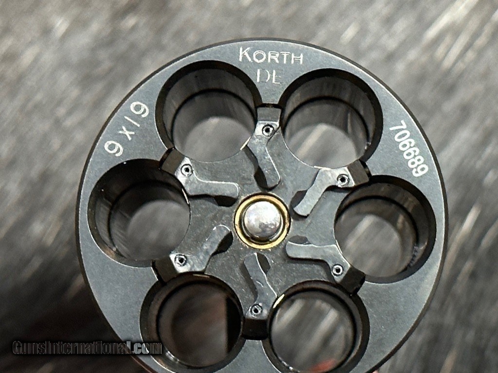 Description: NEW KORTH MONGOOSE 4" 6-SHOT 357 MAGNUM WITH FACTORY FITTED 9MM LUGER CYLINDER - LAYAWAY AVAILABLE The Korth Mongoose is a classic revolver with this specific revolver having a 4” barrel configuration. Chambered in .357 Magnum/ .38 Special, the cylinder holds six rounds of ammunition. This revolver also comes with Korth’s unique and famous factory fitted interchangeable cylinder system in 9mm Luger. This cylinder system allows you to switch from your .357 Magnum/.38 Special cylinder to your 9mm cylinder in a flash. The Mongoose provides a level of versatility not seen in any other revolver on the market. This is a revolver that harkens back to the days when a revolver was a hand-built piece of functioning art. The frame and all parts are fully machined from the finest billet steel available. The Mongoose's smooth action is something that will make a lasting impression to even the most experienced shooter. The Blackout Edition comes standard with a ventilated rib, black DLC finish, black Korth medallion, black grips and a 14k gold bead, the superior features and craftsmanship are clearly evident. FEATURES OF THIS GREAT CUSTOM REVOLVER INCLUDE: