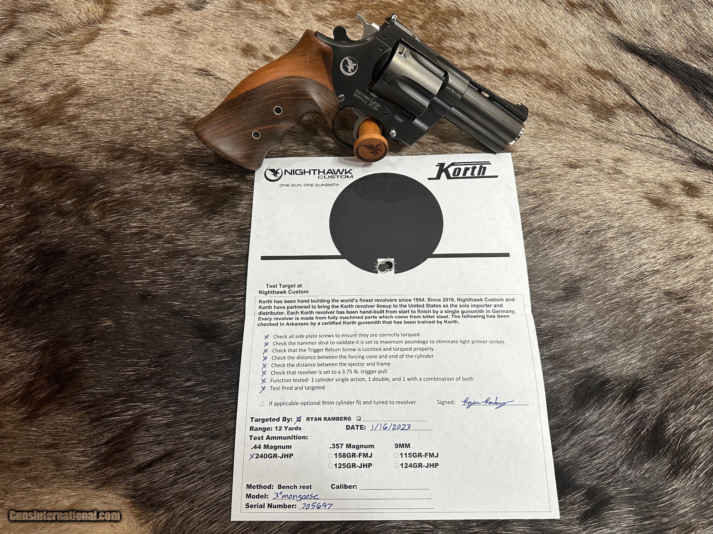 NEW KORTH MONGOOSE 44 REMINGTON MAGNUM 3" BEAUTIFUL WOOD GRIPS NIGHTHAWK - LAYAWAY AVAILABLE