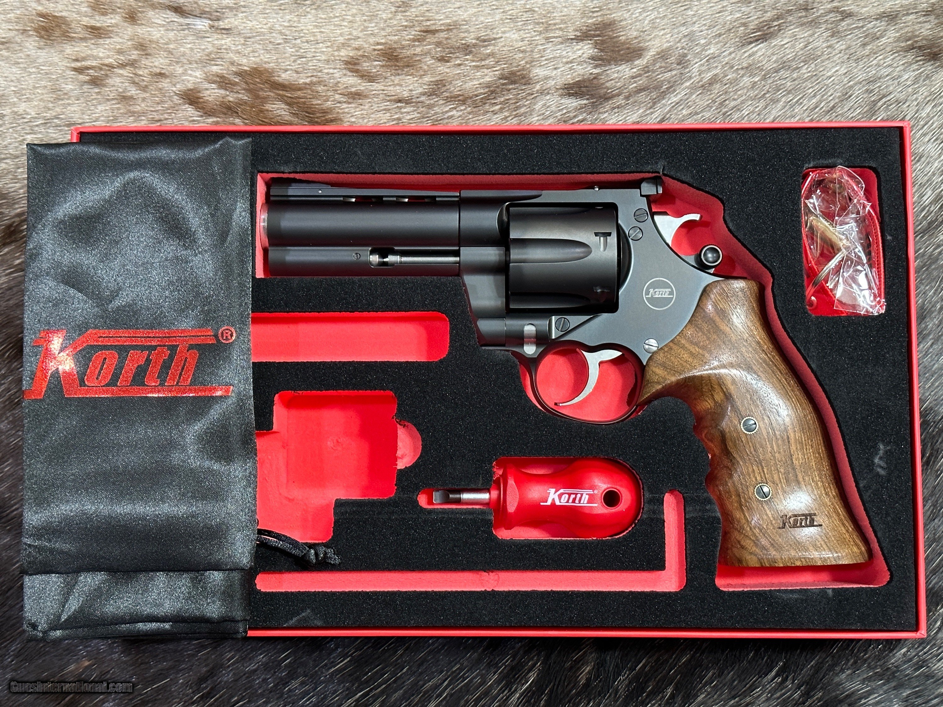 Description: NEW KORTH MONGOOSE 4" 6-SHOT 44 REMINGTON MAGNUM REVOLVER - LAYAWAY AVAILABLE If you have always loved the look of the Mongoose, but craved the power of the .44 Magnum, this is the revolver for you. The Mongoose .44 Magnum is a classically designed revolver. Chambered in .44 Magnum, the cylinder holds six rounds of ammunition. The trigger face has been high polished, and the incredibly smooth action is truly something to behold whether shooting single or double action. The rear sight is fully adjustable with a gold bead front sight. This revolver comes standard with a ventilated rib, DLC finish and a Turkish Walnut grip. The frame and all parts are fully machined from the finest billet steel available. FEATURES OF THIS GREAT CUSTOM REVOLVER INCLUDE: