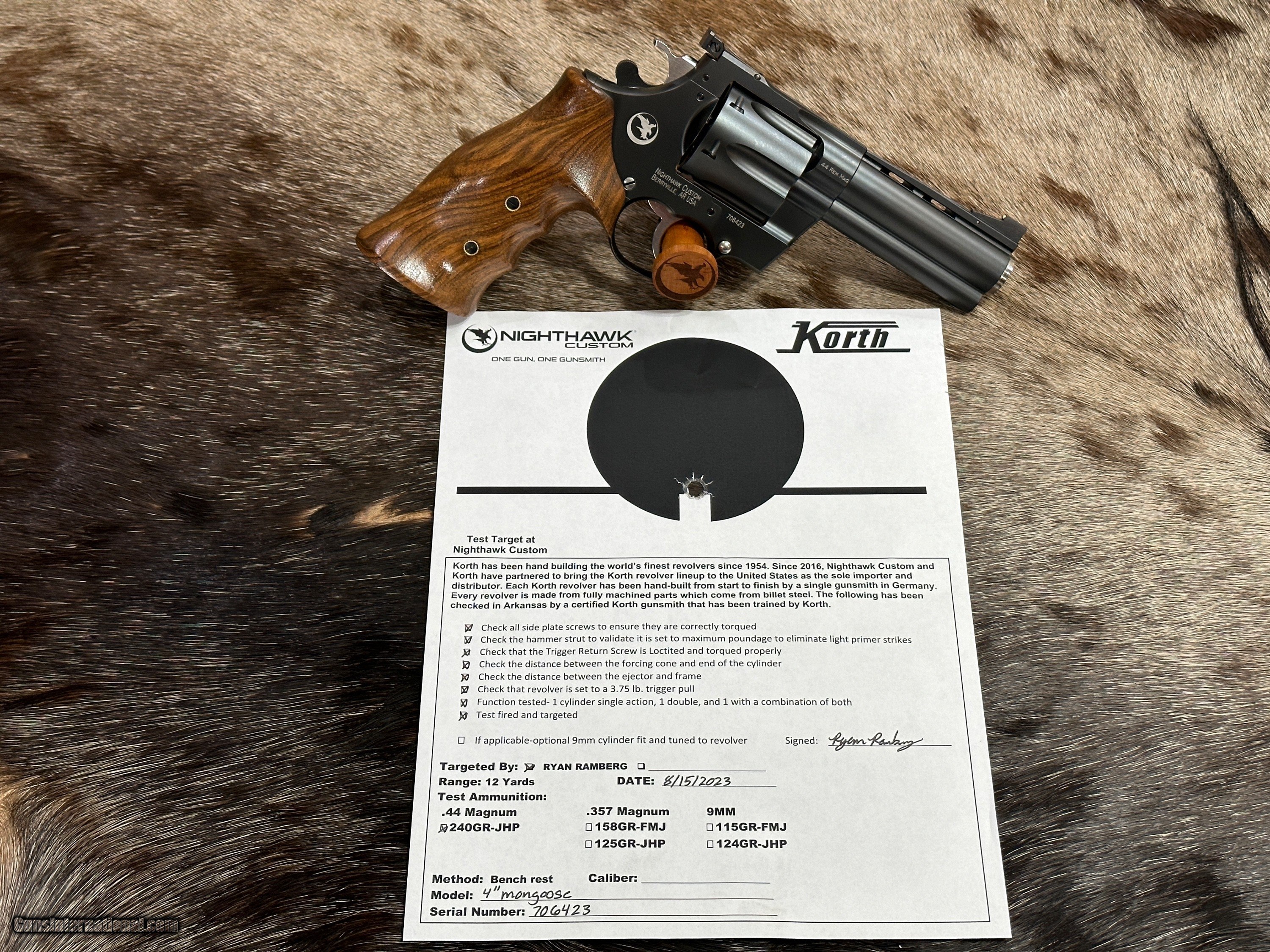 NEW KORTH MONGOOSE 44 REMINGTON MAGNUM 4" NIGHTHAWK CUSTOM - LAYAWAY AVAILABLE