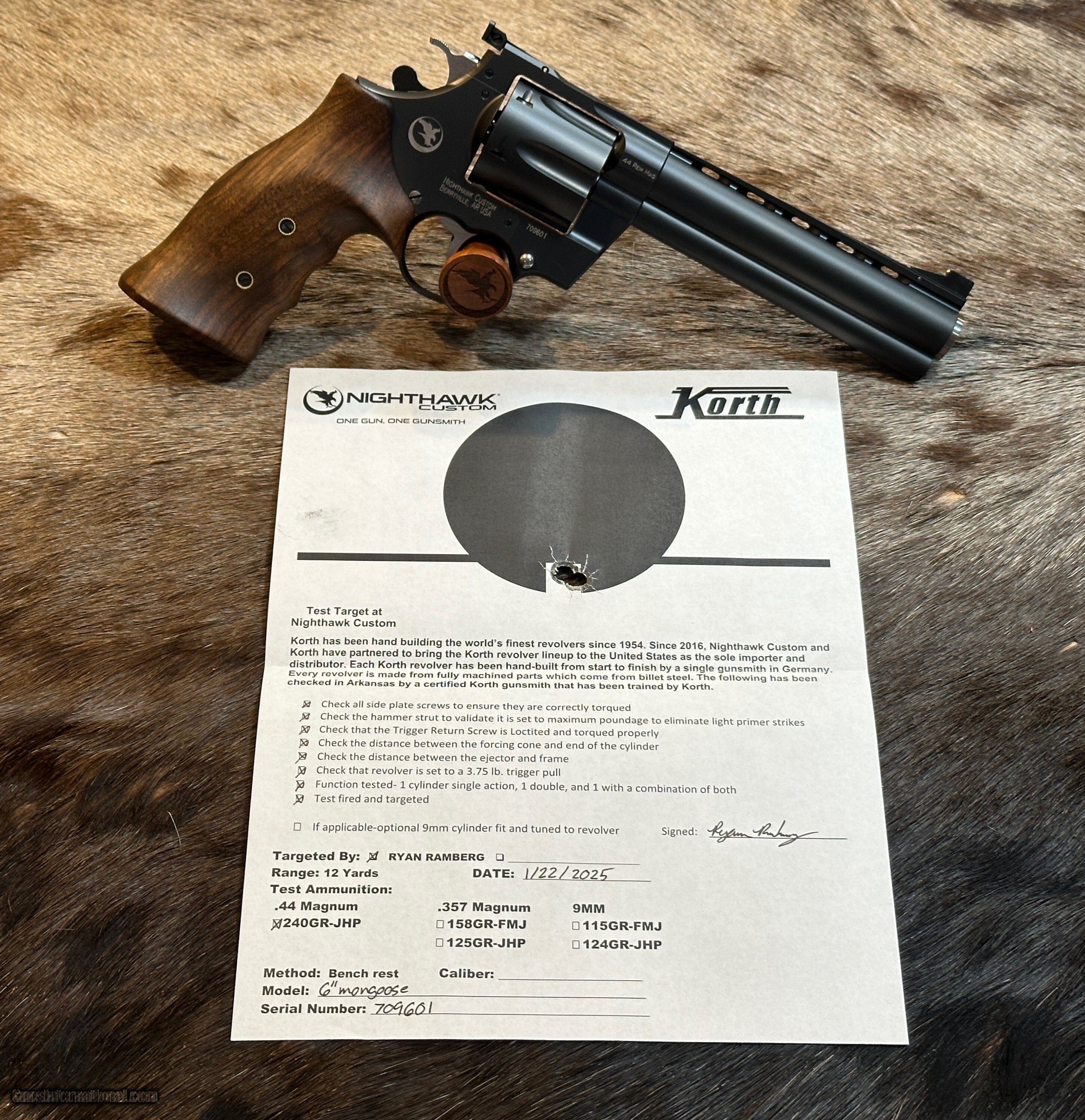 NEW KORTH MONGOOSE 44 REMINGTON MAGNUM 6" NIGHTHAWK CUSTOM TURKISH WALNUT - LAYAWAY AVAILABLE