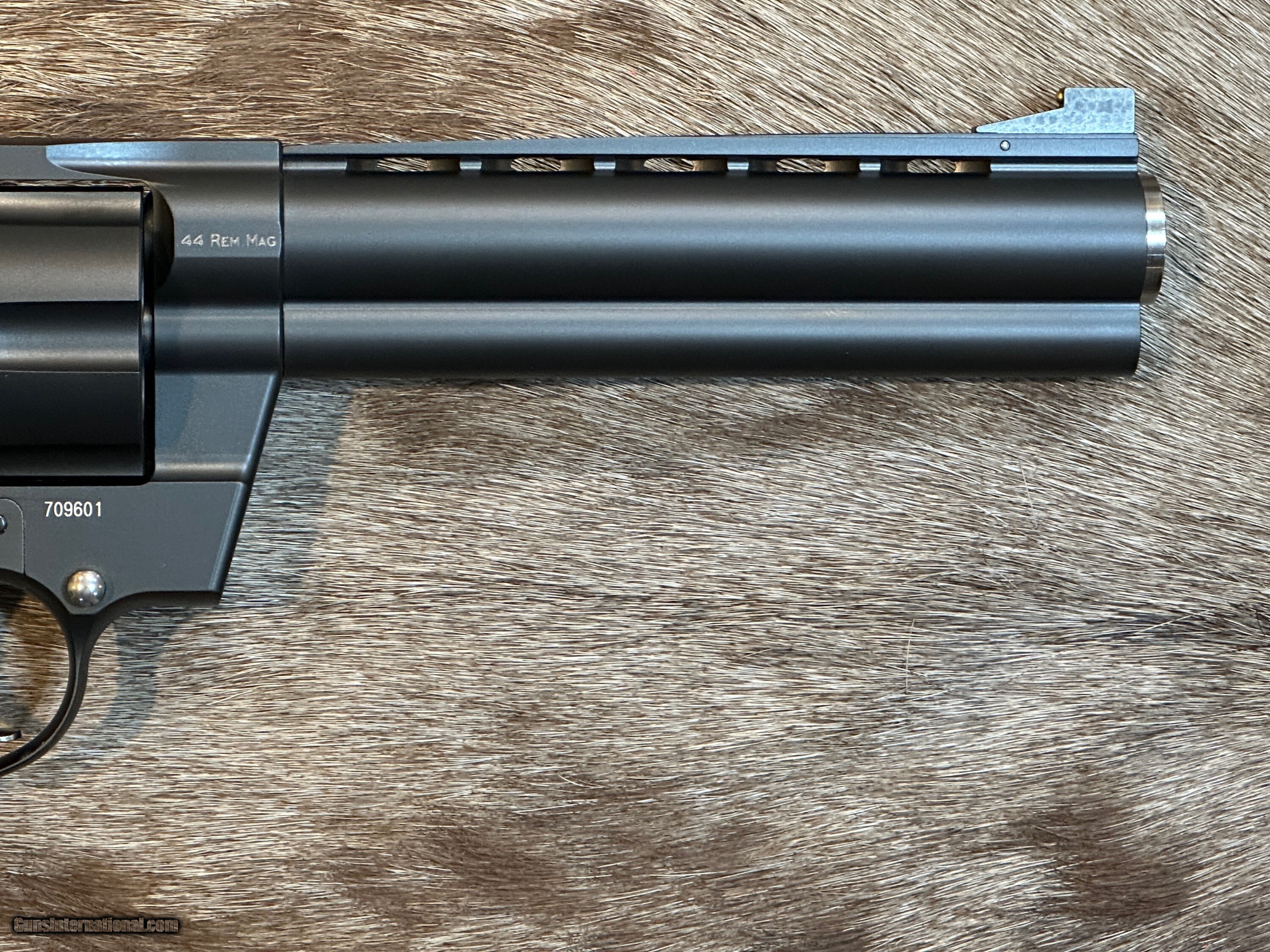 Description: NEW KORTH MONGOOSE 6" 6-SHOT 44 REMINGTON MAGNUM REVOLVER LAYAWAY: $1,000 DOWN AND 6-MONTHS TO PAY OUT - TO BEGIN THE LAYAWAY, CONTACT JD AT 405/822.1564. If you have always loved the look of the Mongoose, but craved the power of the .44 Magnum, this is the revolver for you. The Mongoose .44 Magnum is a classically designed revolver. Chambered in .44 Magnum, the cylinder holds six rounds of ammunition. The trigger face has been high polished, and the incredibly smooth action is truly something to behold whether shooting single or double action. The rear sight is fully adjustable with a gold bead front sight. This revolver comes standard with a ventilated rib, DLC finish and a Turkish Walnut grip. The frame and all parts are fully machined from the finest billet steel available. FEATURES OF THIS GREAT CUSTOM REVOLVER INCLUDE: