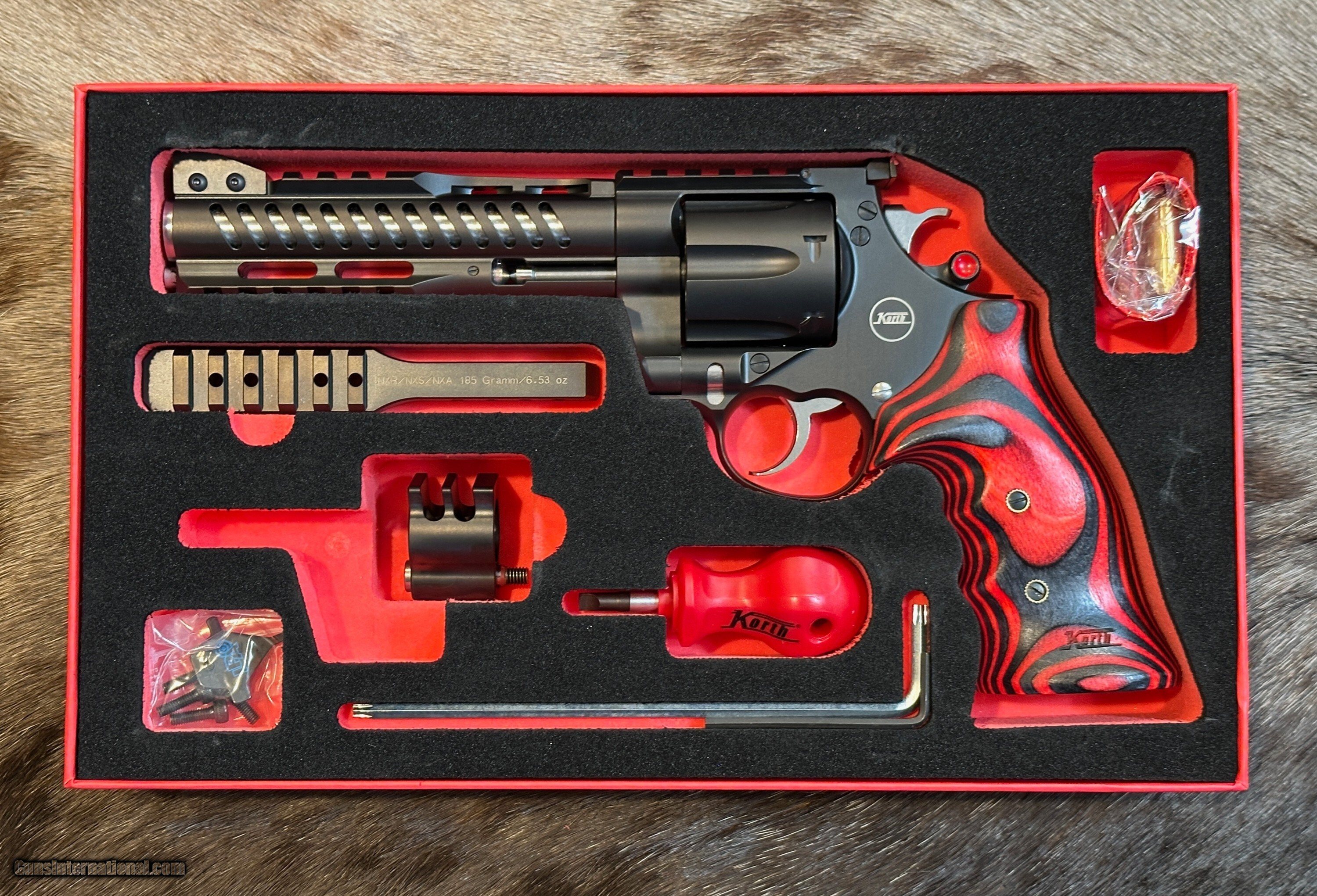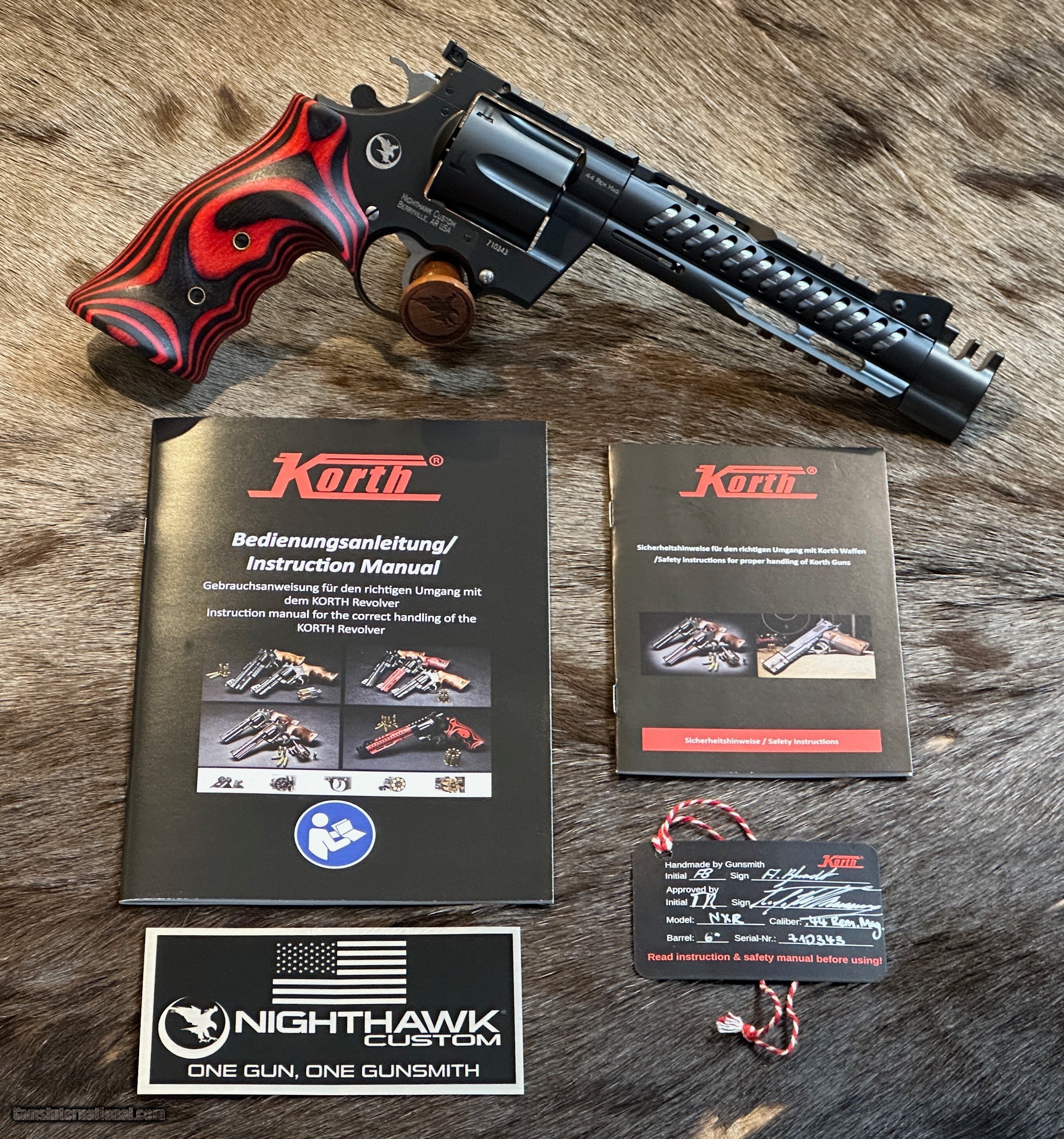 Description: NEW KORTH NXS 4" 6-SHOT 44 REMINGTON MAGNUM REVOLVER W/ COMPENSATOR & WOOD GRIPS LAYAWAY AVAILABLE: $1,000 DOWN AND 6-MONTHS TO PAY OUT - TO BEGIN THE LAYAWAY, CONTACT JD AT 405/822.1564. The Korth NXR brings a powerful six-shot .44 Magnum into Korth’s legendary lineup of precision revolvers. This model comes with a 6" hammer-forged precision barrel and compensator. The NXR delivers exceptional performance and versatility in a package built to handle the most demanding shooting conditions. The NXR’s frame features an integrated Picatinny rail for mounting optics, while the ventilated barrel housing promotes faster cooling during extended firing sessions. Finished in a rugged black Diamond-Like Carbon (DLC) coating, the NXR offers both striking aesthetics and exceptional durability. A second Picatinny rail mounted below the barrel provides even more options for customization, allowing shooters to configure the NXR for their specific needs. Designed with precision in mind, the NXR comes equipped with an adjustable rear sight and front sight side panels that can be easily removed and replaced, making it adaptable across various shooting disciplines. The revolver is finished off with a beautifully crafted Turkish Walnut grip, blending timeless elegance with hard-hitting performance. The Korth NXR stands as a testament to world-class German craftsmanship — offering a .44 Magnum revolver that combines cutting-edge design, unrivaled precision, and the legendary Korth quality that serious shooters and collectors demand. FEATURES OF THIS GREAT CUSTOM REVOLVER INCLUDE: