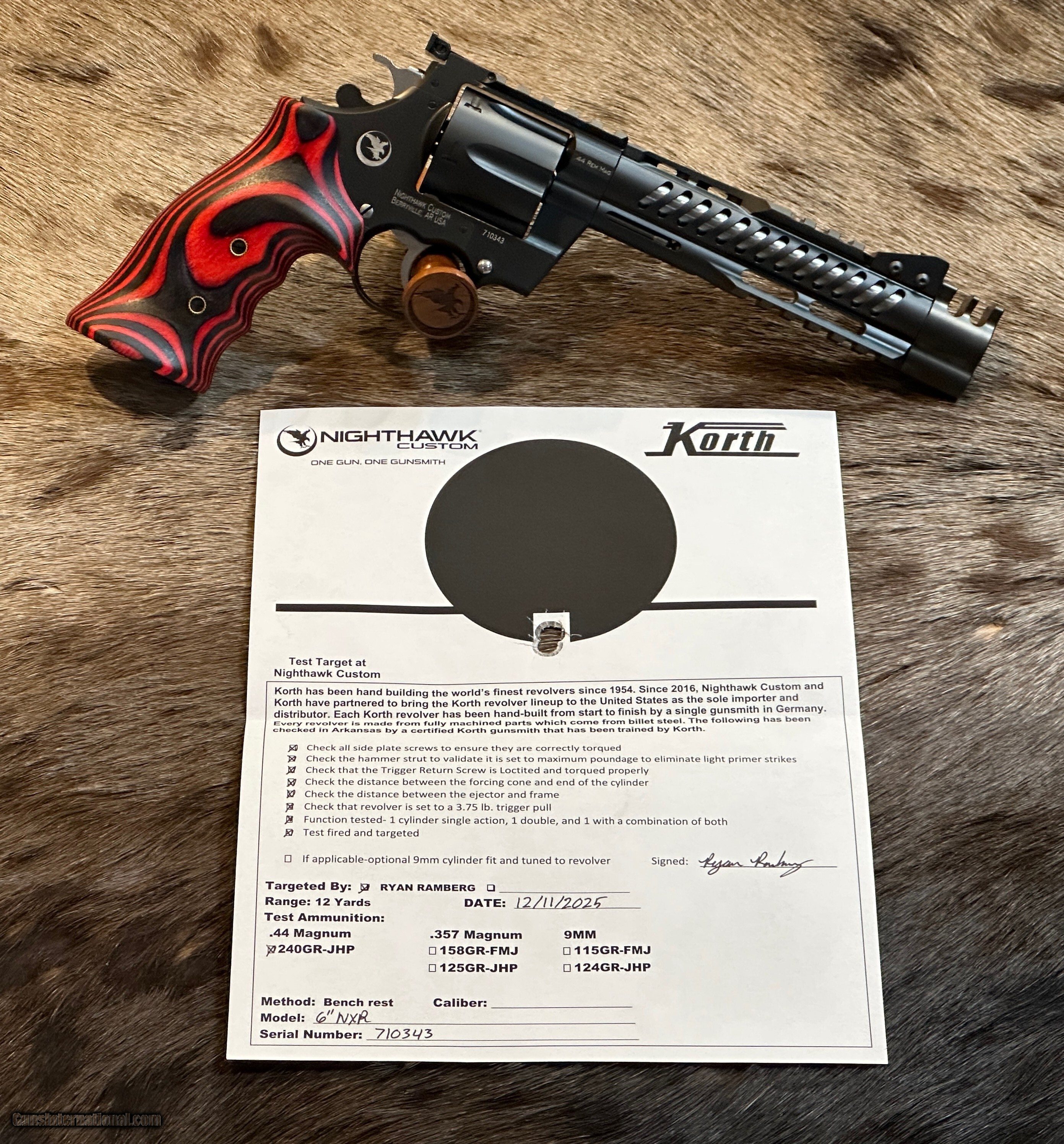 NEW KORTH NXR 6-SHOT 44 REMINGTON MAGNUM 6" BARREL, COMPENSATOR, WOOD GRIP, DLC, ADJUSTABLE SIGHTS - LAYAWAY AVAILABLE