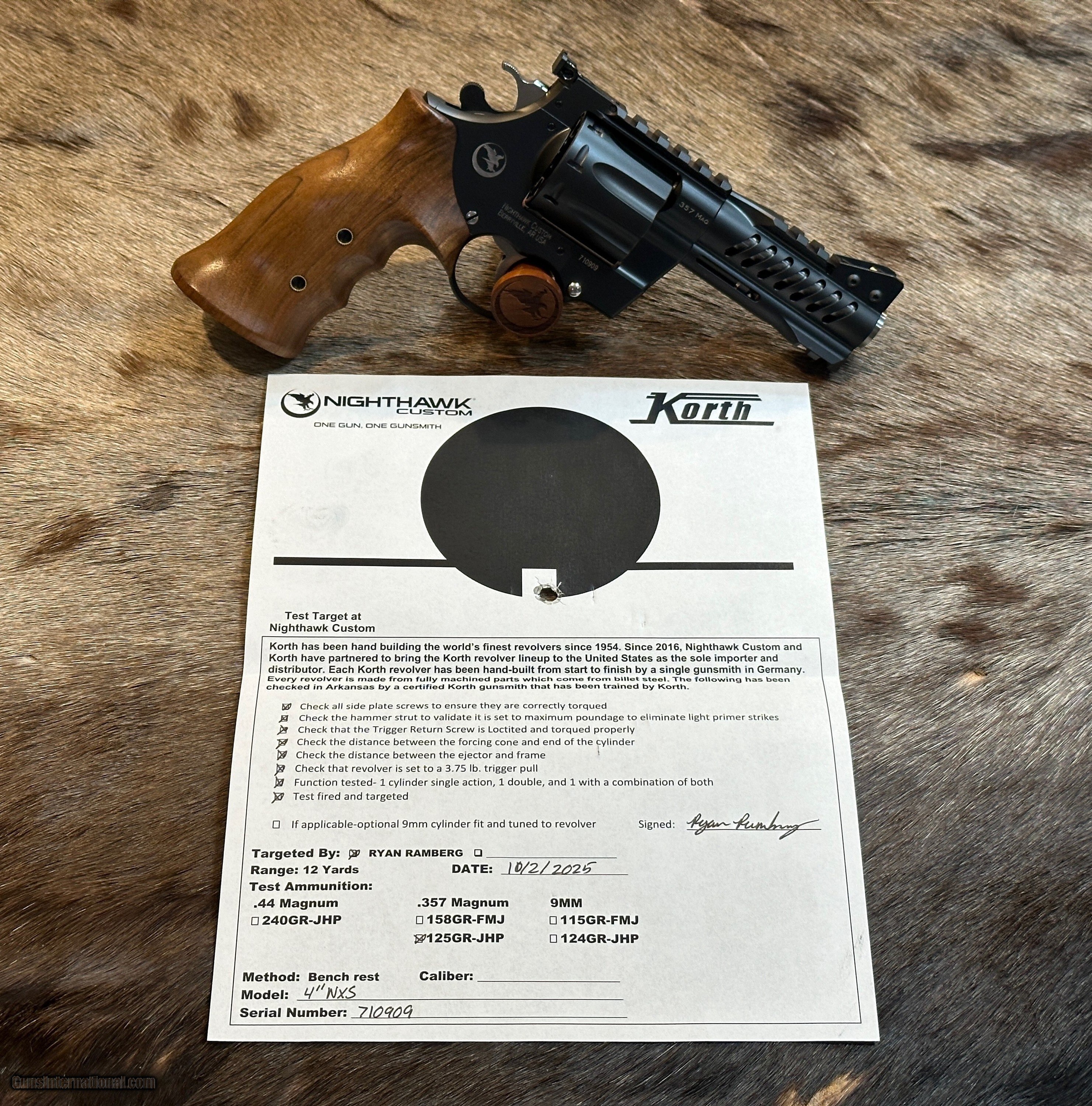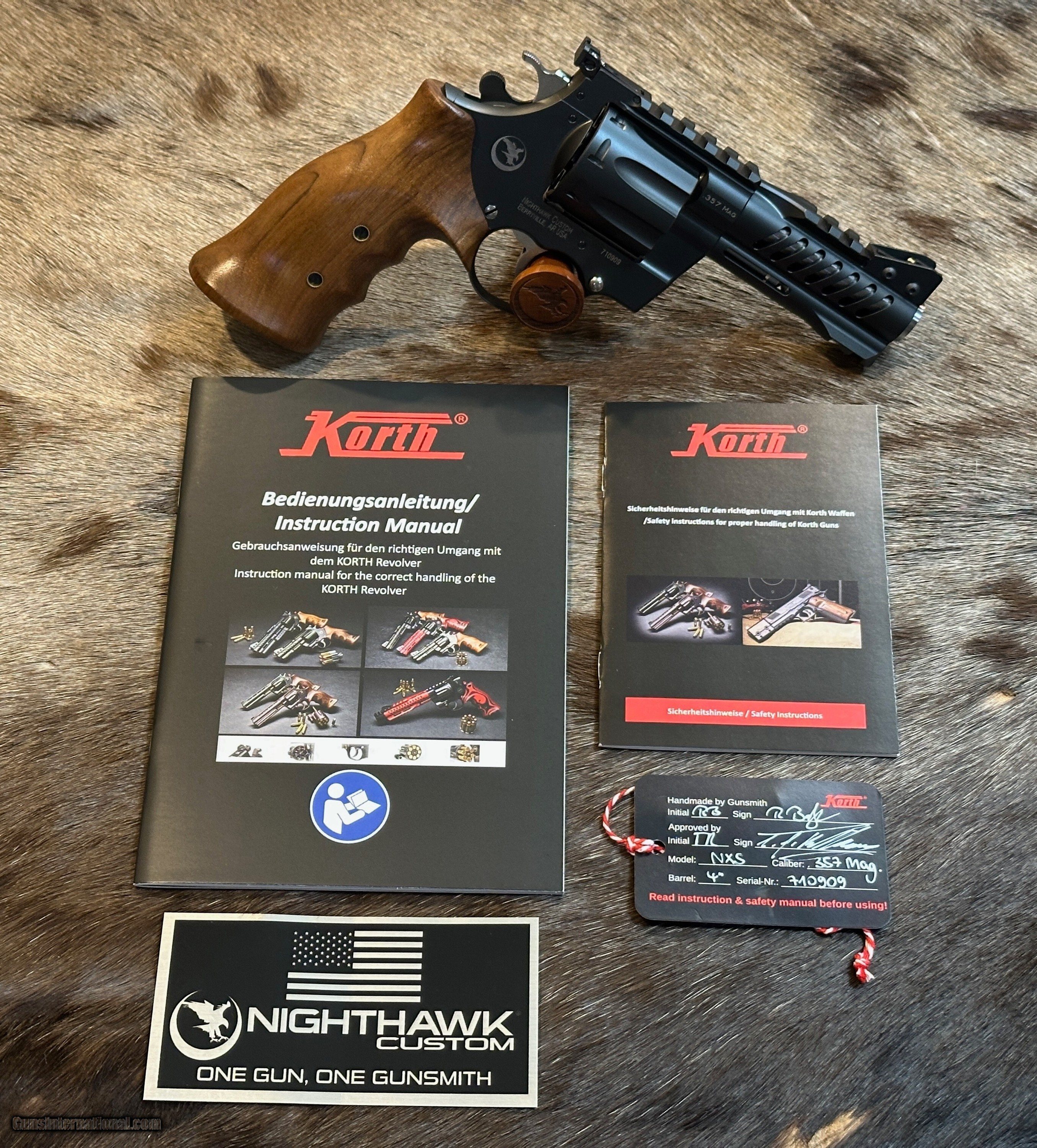NEW KORTH NXS 8-SHOT CYLINDER 357 MAGNUM 4" BARREL, WOOD GRIP, NIGHTHAWK CUSTOM - LAYAWAY AVAILABLE
