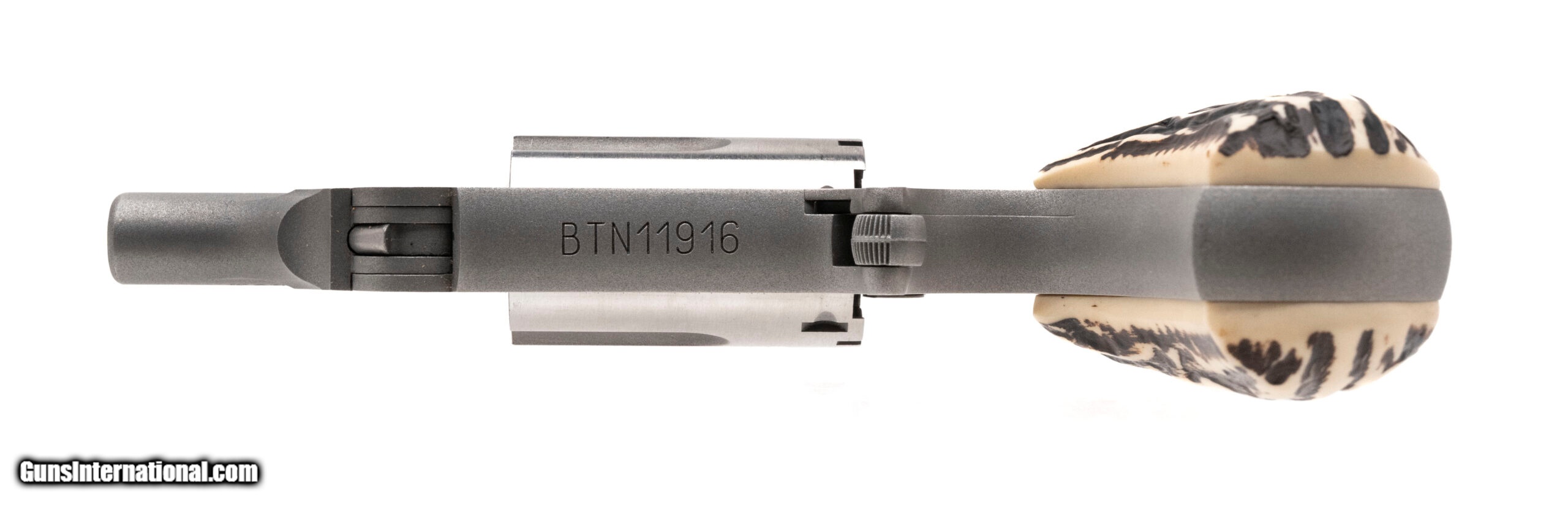 Description: "SN: BTN11916. Modern production .22 Mag with a 1.625"" barrel. Top break pocket revolver with fancy faux stag grips. Comes with a custom holster made for it. Excellent condition. SOLD |