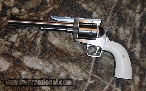 Description: Magnum Research BFR 7.5" stainless steel revolver with Adj rear sight, fiber optic front sight, Scope mount attached in picture, 6 shots, Bisley grip. Old stock never been fired. Cash price shown CC fee add 3% SOLD Handgun Caliber: .44 Remington Magnum Manufacturer: Magnum Research Model: BFR Barrel Length: 7.5 Condition: Exellent Metal Condition: Excellent Bore Condition: Excellent Action: Single Sights: Adjustable |