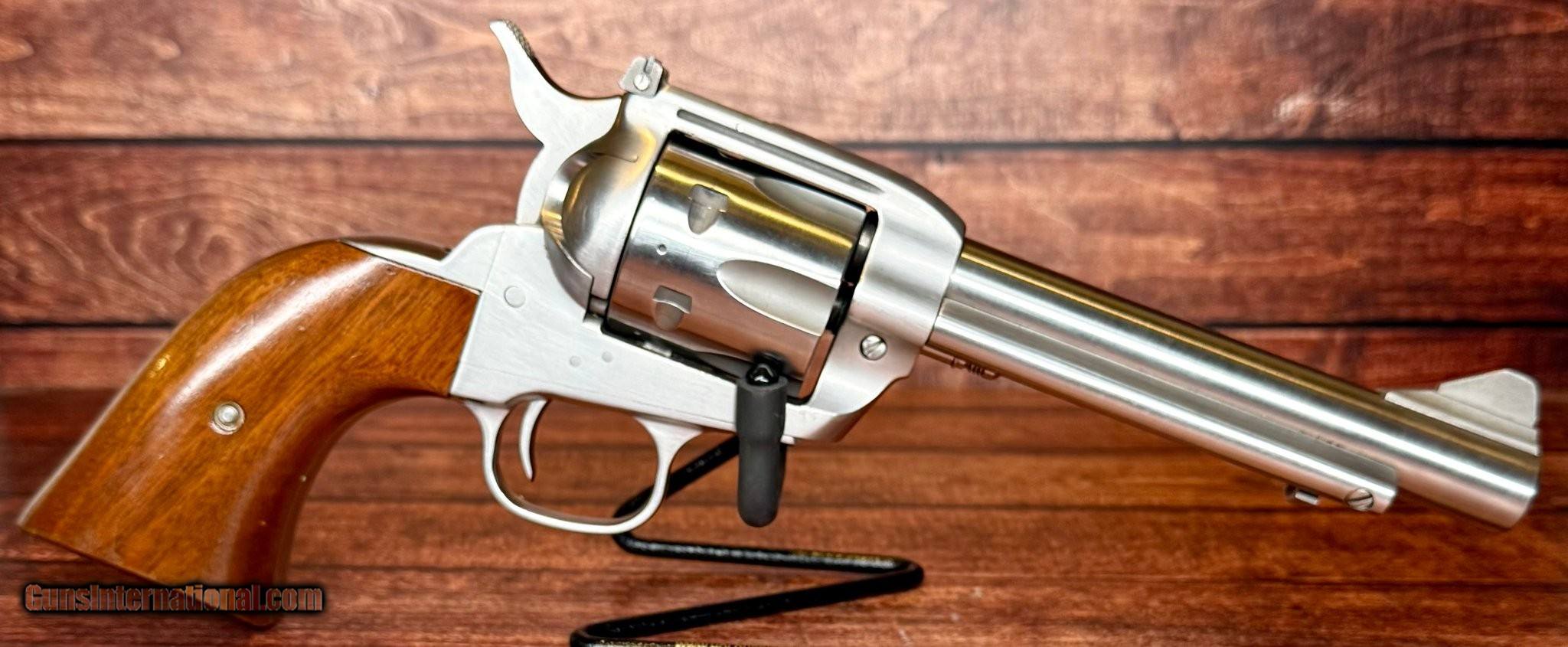 Description: Guns Listing ID: 583978 The Interarms Virginian Dragoon is a large-frame single-action revolver that was built to compete directly with the iconic Colt Single Action Army and Ruger Blackhawk. Produced primarily in the late 1970s through the mid-1980s, this revolver was manufactured by Interarms in Alexandria, Virginia, and later with significant contributions from Hammerli in Switzerland and in the United States. Chambered in heavy-hitting calibers such as .44 Magnum, .45 Colt, and .357 Magnum, the Virginian Dragoon was designed as a robust, full-sized revolver for hunting, sport shooting, and collectors who wanted a powerful wheelgun with classic Old West styling. Its construction emphasized strength, with a larger and heavier frame than many of its contemporaries, allowing it to handle stout magnum loads with confidence. The revolver also featured a six-shot capacity, transfer bar safety, and adjustable or fixed sights depending on the variant, providing both protection and versatility in the field. What set the Virginian Dragoon apart was its combination of rugged build quality, unique aesthetics, and patriotic flair. The revolvers often came with deeply blued or stainless-steel finishes paired with handsome walnut or stag-style grips, giving them a commanding presence. Notably, this particular revolver was engraved with \"Yorktown 1781-1981\" on the frame, a nod to the American spirit and independence. The oversized frame, long barrel options, and strong lockwork made it an excellent hunting sidearm capable of taking medium to large game, while its heft and balance gave shooters control over heavy recoil. Although Interarms ceased production by the mid-1980s, the Virginian Dragoon has since earned a loyal following among revolver enthusiasts and collectors, who appreciate its durability, distinctive style, and place in the history of American single-action revolvers. Today, it stands as both a practical shooting tool and a collectible reminder of Interarms’ contribution to the revolver market during the golden era of magnum handguns. Firearm comes with all original paperwork/manual and original box. Manufacturer: Interarms Model: Virginian Dragoon Caliber: .44 Magnum Finish: Stainless Barrel Length: 6\" Optics/Sights: Fixed Blade with Serrated Ramp and White Dot Front with Adjustable White Outline Rear Action: Single-Action Revolver Markings: Standard / The butt of the revolver is marked \"Yorktown 1781-1981\". SOLD Manufacturer: INTERARMS Model: Virginian Dragoon Stainless Caliber Info: .44 MAGNUM Condition: Used - Non-Certified Barrels: 6" BARREL Action: REVOLVER Finish: stainless |