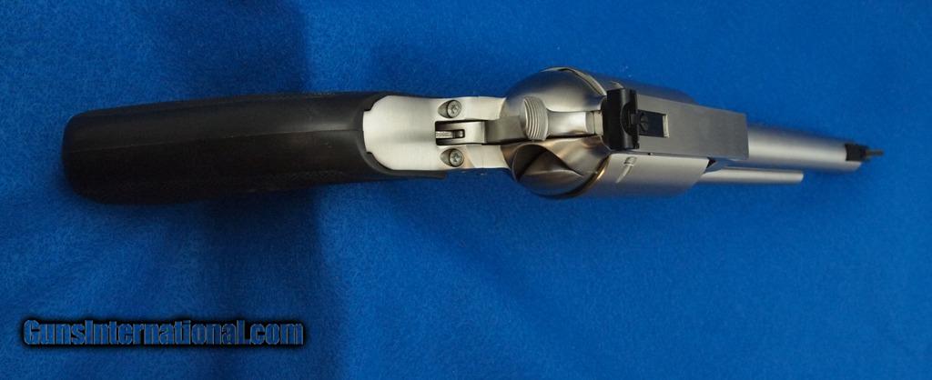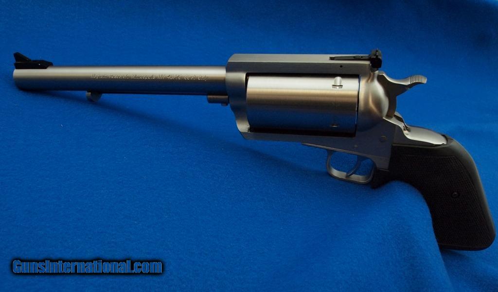 Description: Magnum Research BFR .45/70, 8" bbl, bright shiny bore, strong rifling, Stainless Steel finish, adjustable rear horseshoe sight, blade front sight, and textured black grips, This pistol is in excellent condition. Add 3% for Credit Card Shipping $25.00 SOLD |