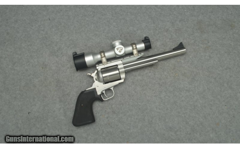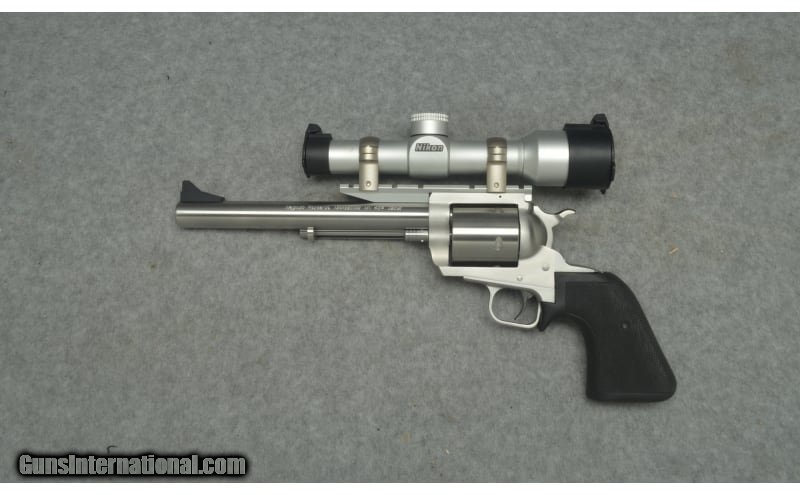 Description: Magnum Research BFR, chambered in .454 Casull. Overall condition is excellent. Come with Nikon scope. Looking for a rabbit gun? 1 shot will kill, clean and debone all at the same time. .454 Casull SOLD Chambers: 5 Metal Condition: Excellent Wood Condition: Excellent Bore Condition: Excellent Barrels: 8 Triggers: Single Action Weight: 5 lb Sights: Nikon scope Item Location: Sun Prairie, WI |