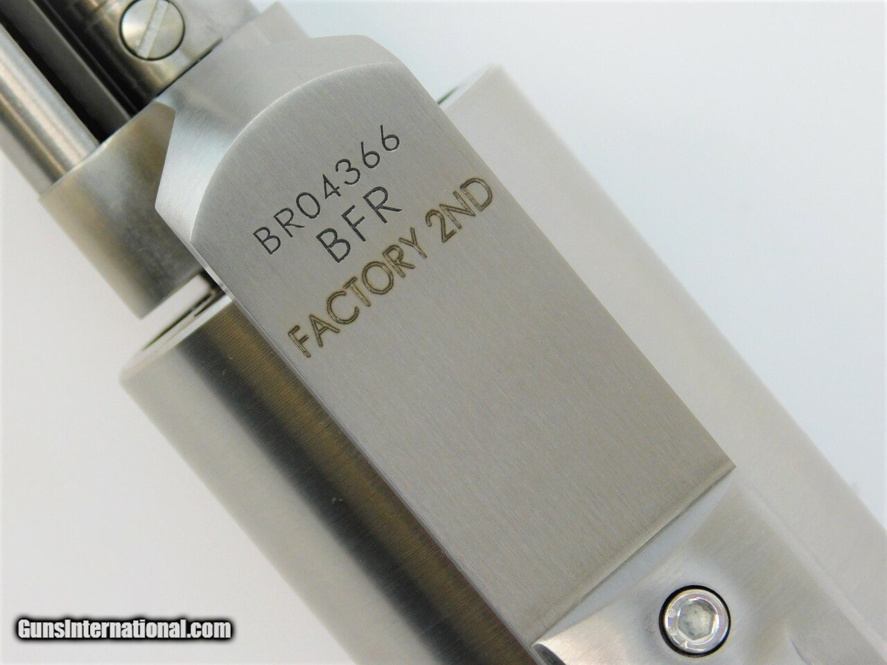 Description: Manufacturer: Magnum Research Model: BFR Serial Number: BR04366 SKU: ZBFR460SW10 Caliber: .460 S&W Magnum Capacity: 5 Round Cylinder Sights: Fixed Front / Rear Adjustable Barrel Length: 10" Frame: Steel Overall Length: 17.5" Finish: Brushed Stainless Steel Grips: Black Rubber Weight: 4.7 lbs Includes MRI (Weaver®-style) Scope Mount This firearm is being sold as a factory blem or second. There are extremely minor cosmetic imperfections from the manufacturing or assembly process. Most of these imperfections are so minor that they are extremely difficult to locate. There are a couple dark spots on the top of the frame that most likely occurred during the forging process. These firearms still carry a full factory warranty, however the warranty does not include any sort of cosmetic issues. The pictures are of the exact firearm you will receive! All items are factory new in box unless otherwise stated. Based on the information available to us, the above specifications describe this item to the best of our knowledge. For further information, please contact or visit the manufacturer's . SOLD |