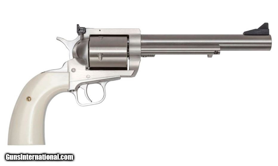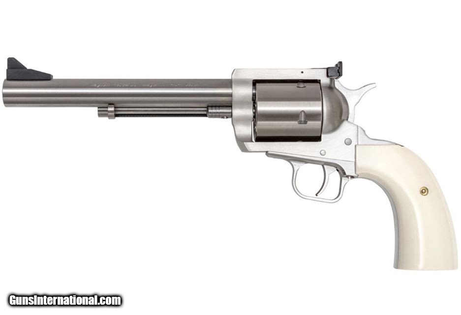 Description: Manufacturer: Magnum Research Model: BFR (Big Frame Revolver) SKU: BFR454C6B-6 Caliber: .454 Casull Capacity: 6 Round Cylinder Sights: Fixed Front / Rear Adjustable Barrel Length: 6.5" Overall Length: 12.75" Finish: Brushed Stainless Steel Grips: White Polymer Bisley Weight: 3.7 lbs All items are factory new in box unless otherwise stated. Based on the information available to us, the above specifications describe this item to the best of our knowledge. For further information, please contact or visit the manufacturer's . SOLD |